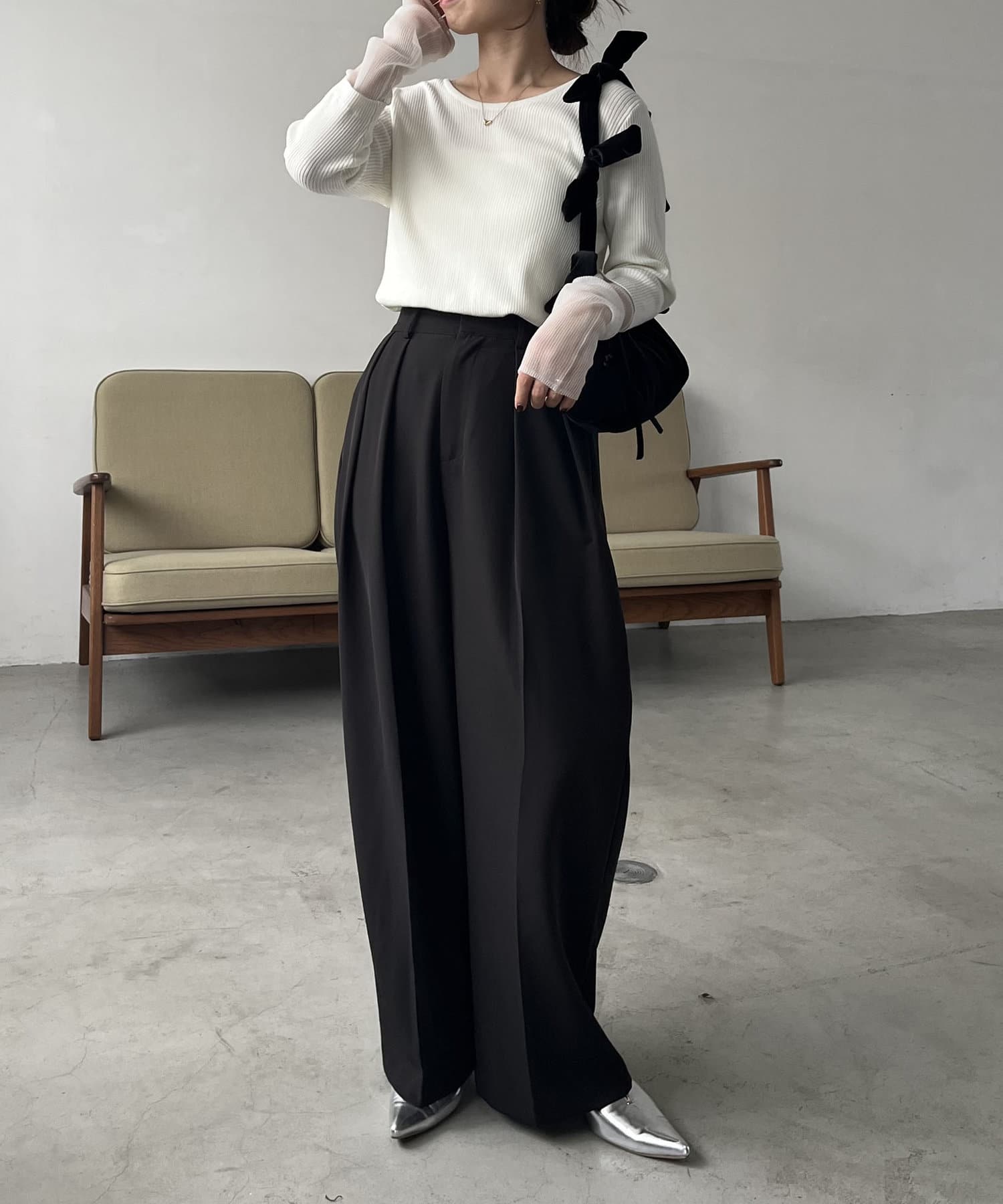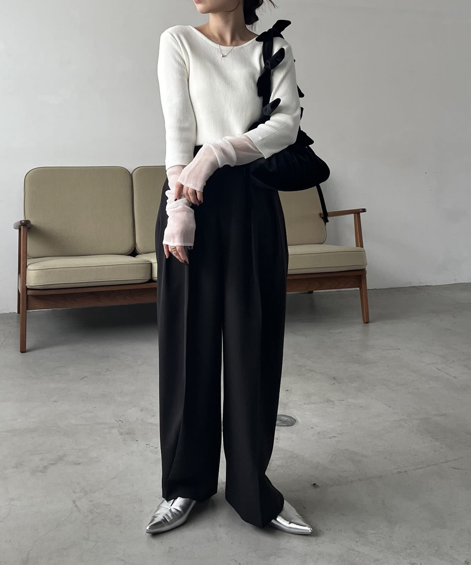 ・袖は長めでクシュっとなるのがポイント