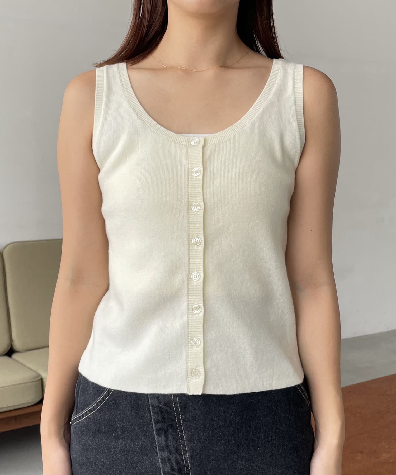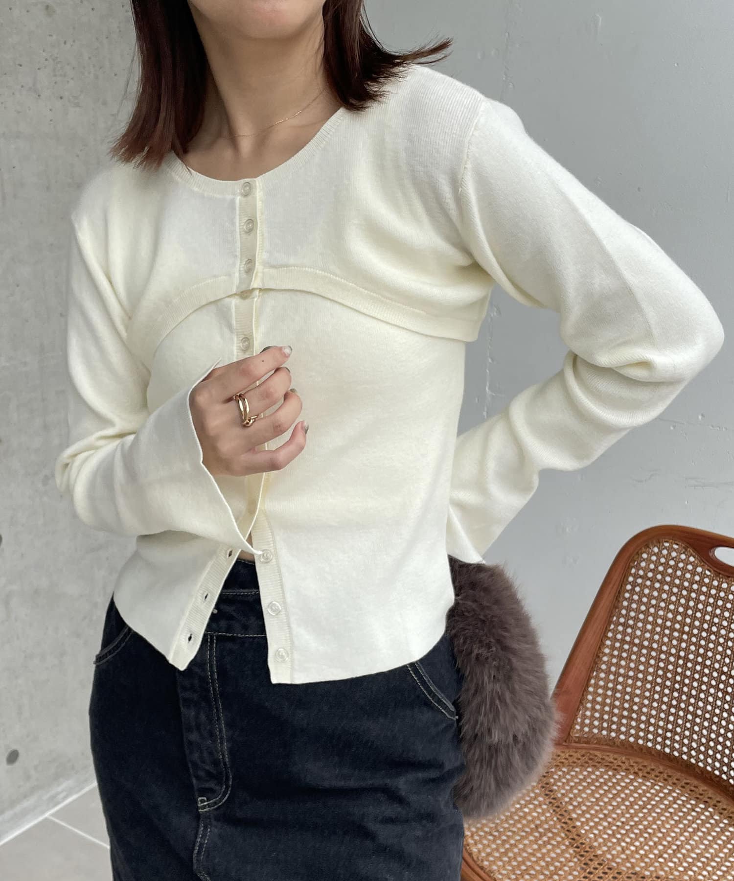 ・Uネックのニットタンクにクロップ丈の長袖ニットがセットになったアイテム