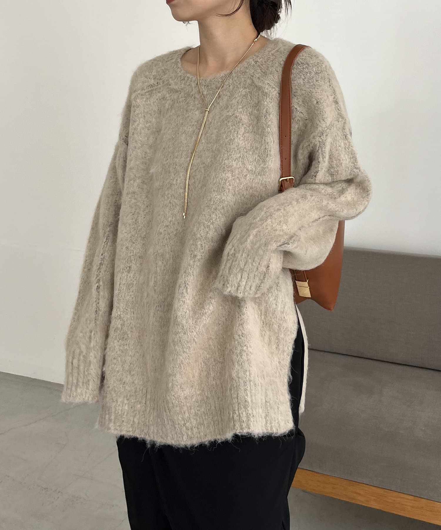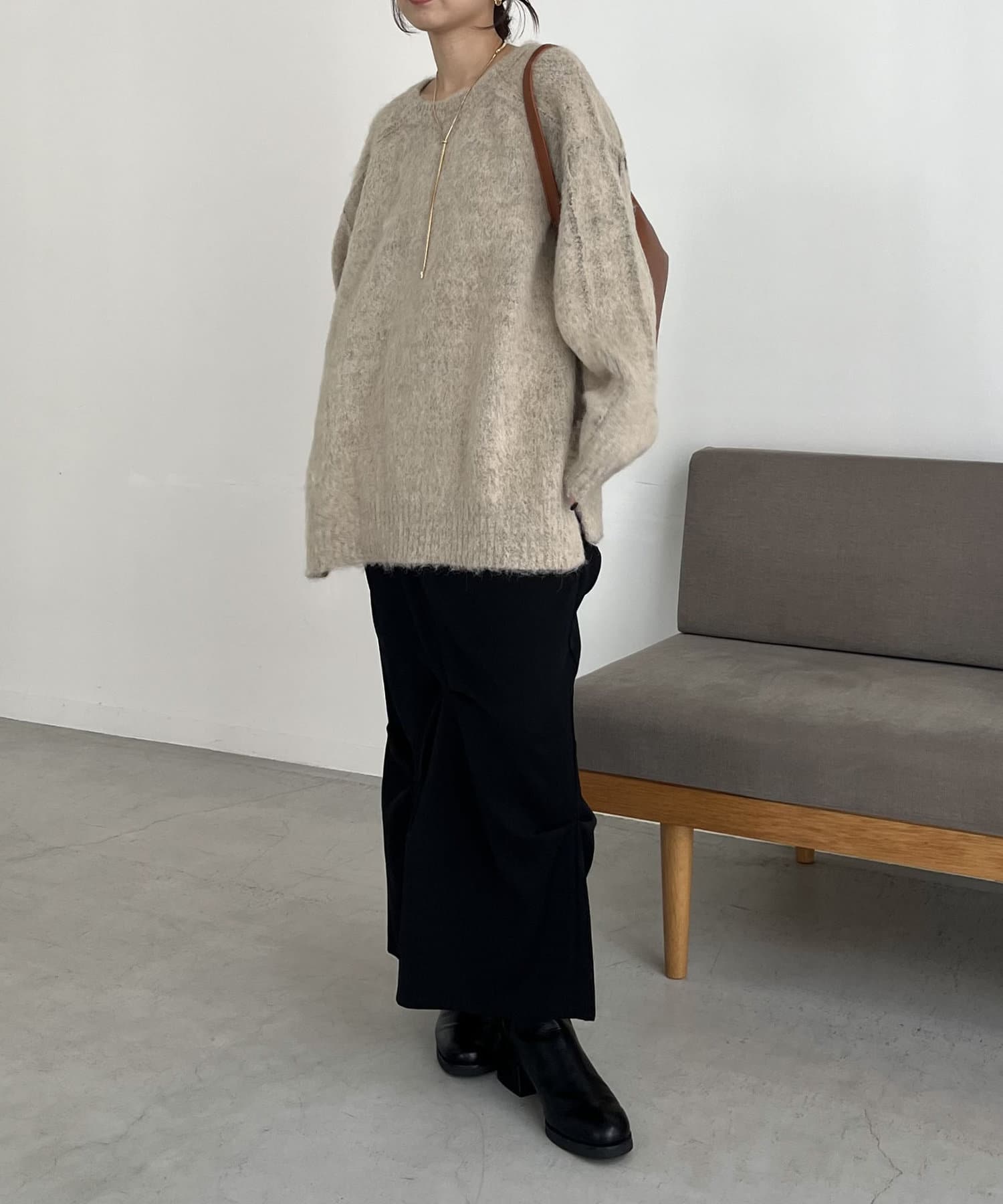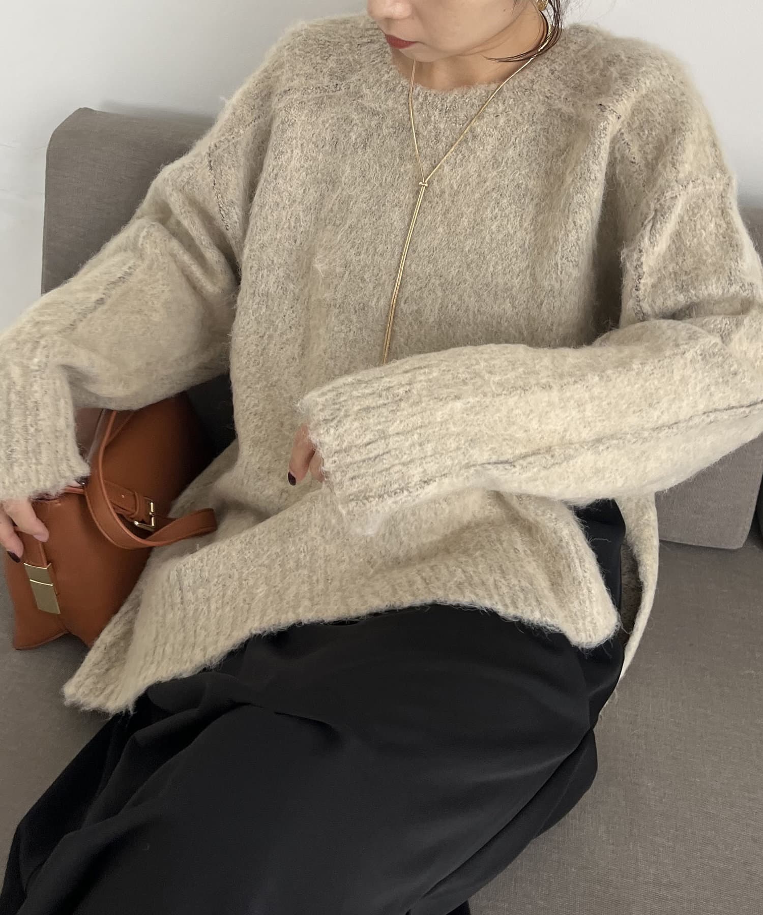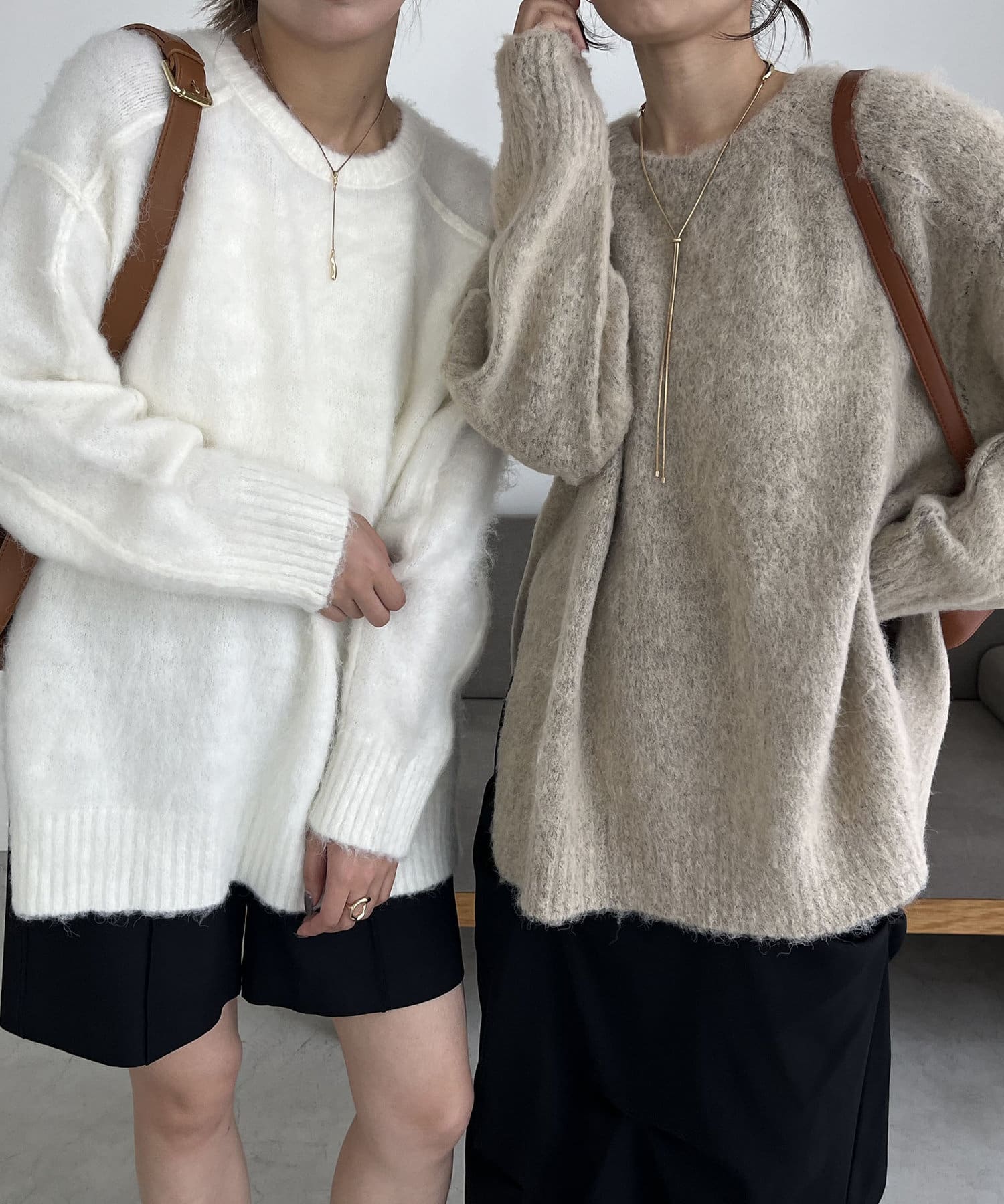抜け感漂うゆるっとしたシルエットのシャギーニット