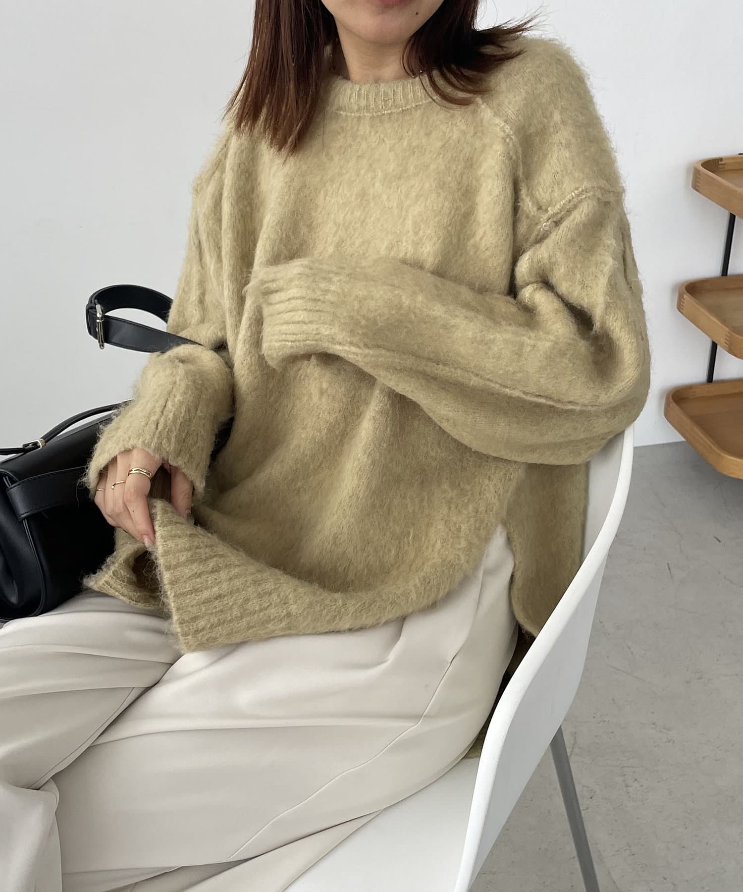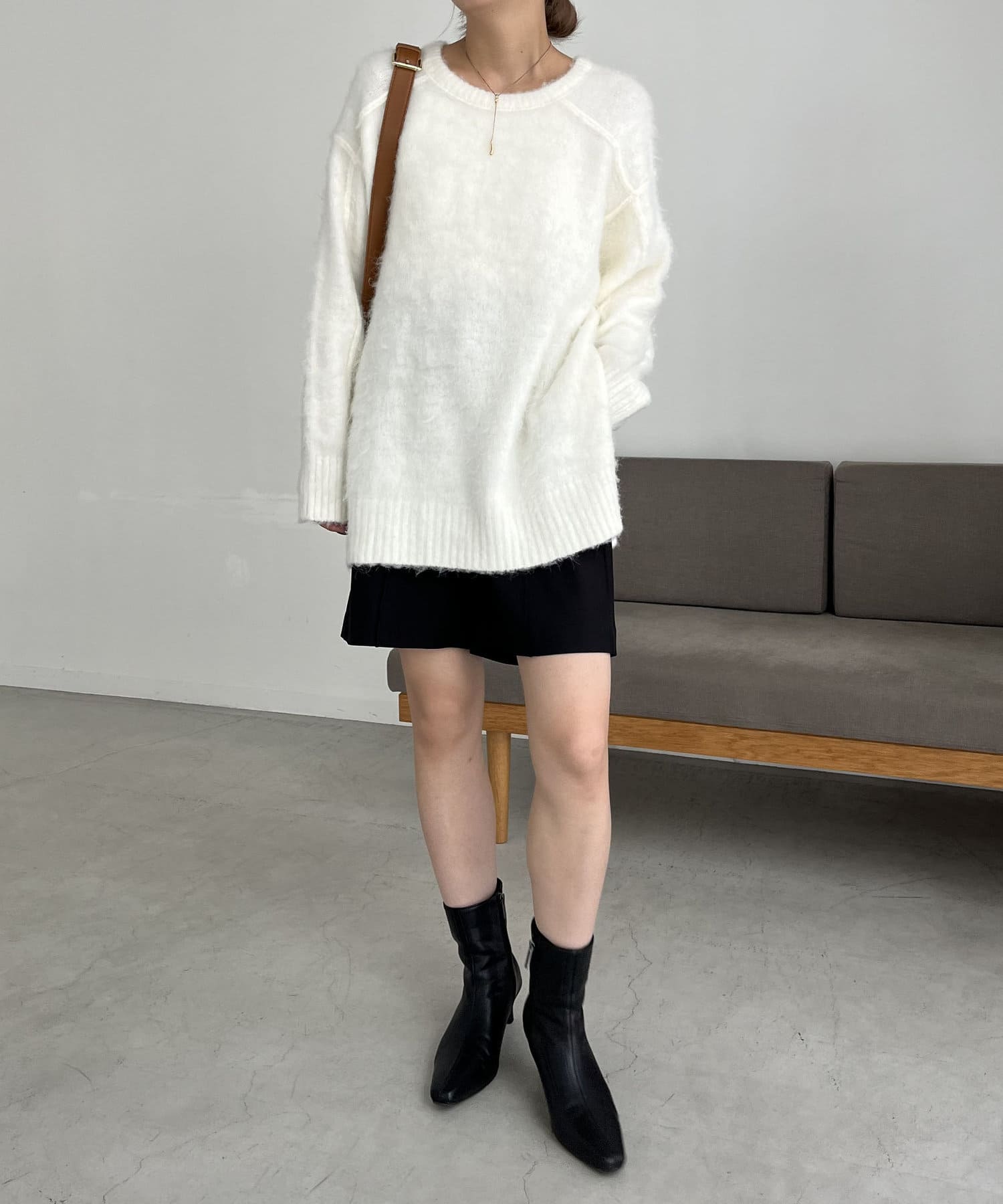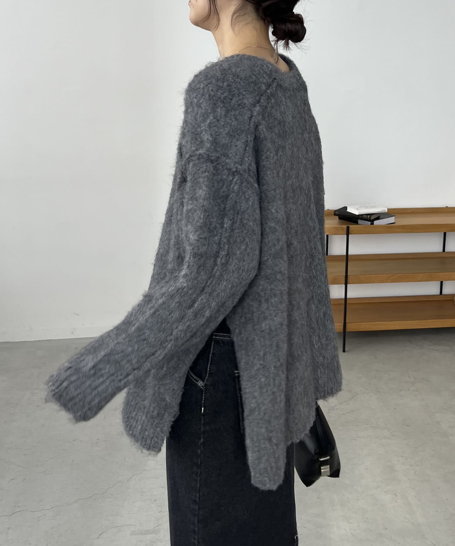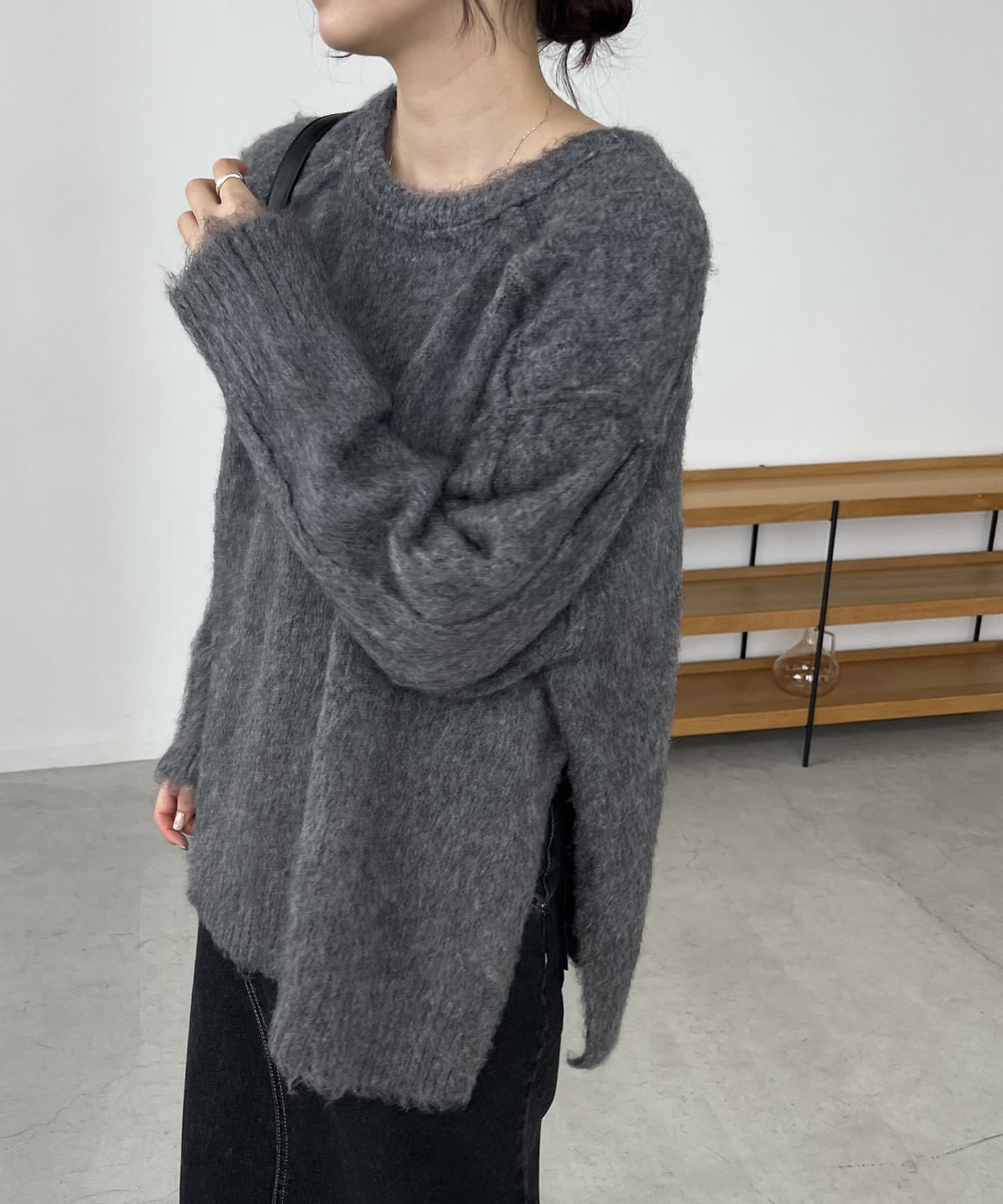 抜け感漂うゆるっとしたシルエットのシャギーニット