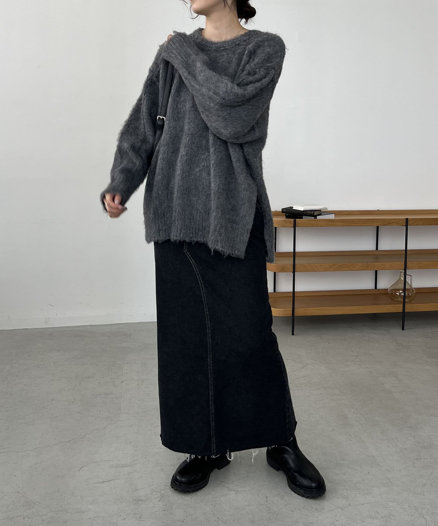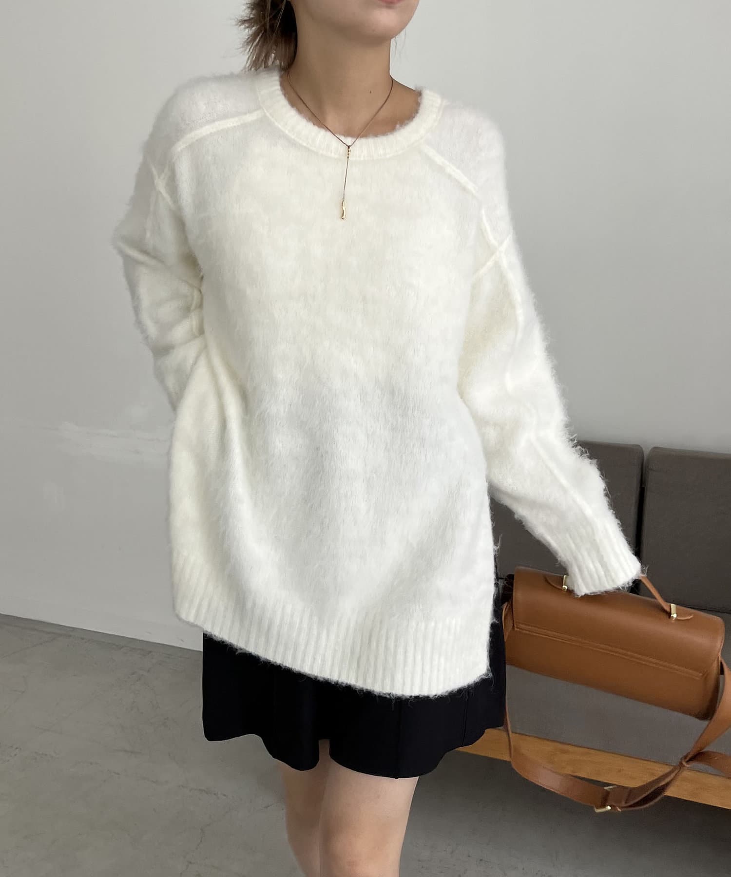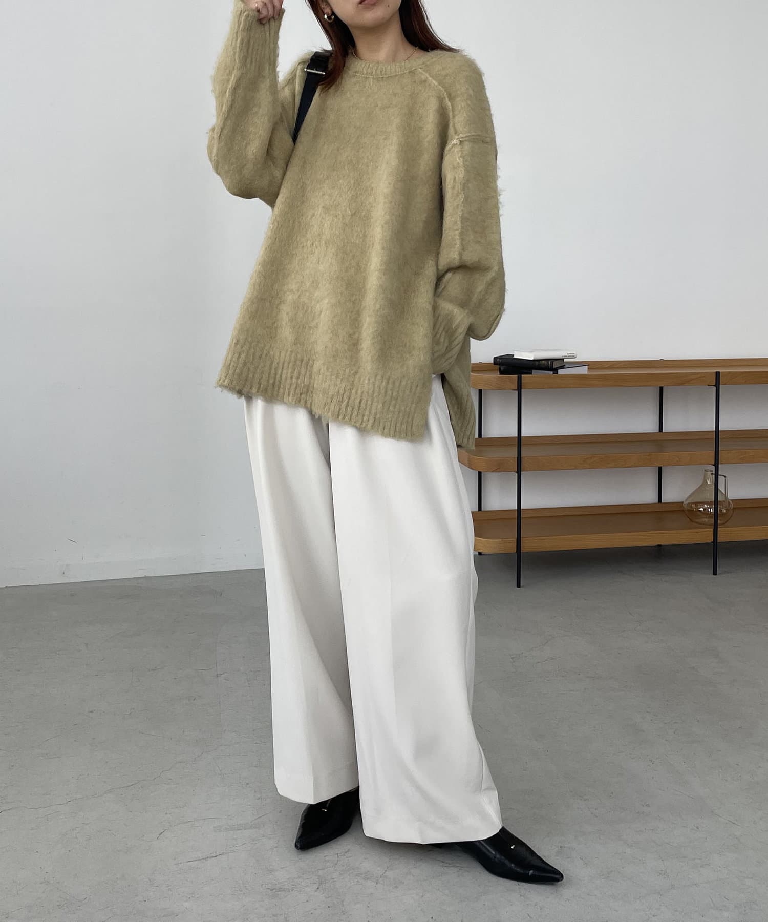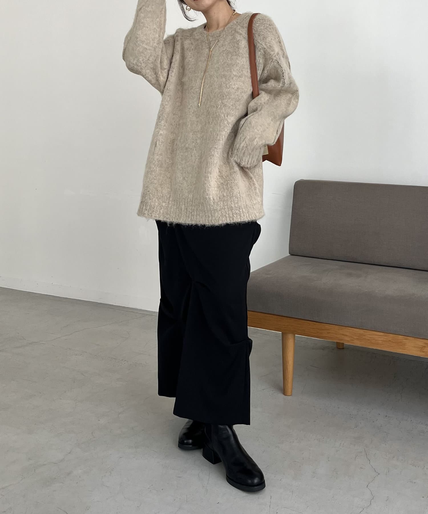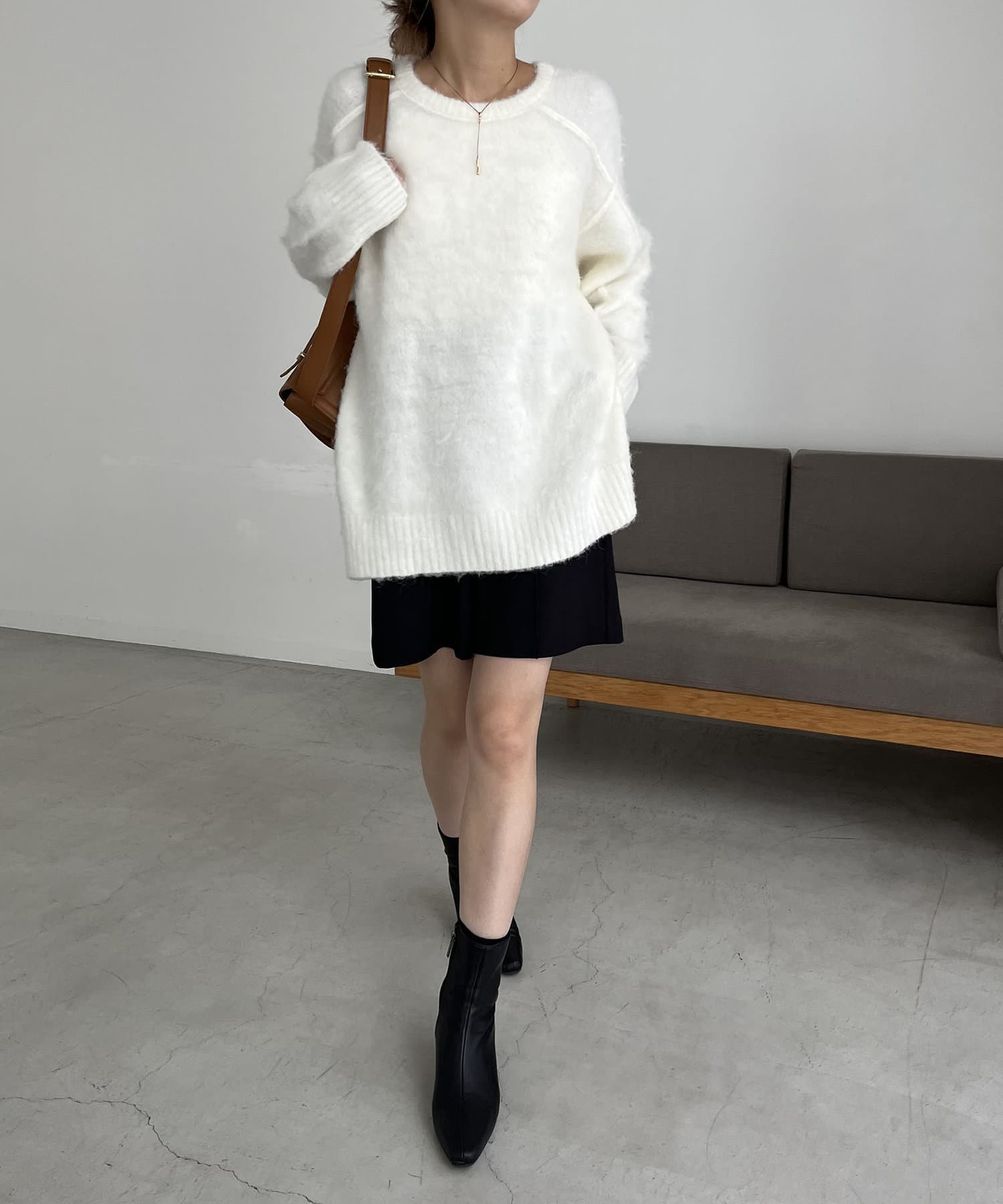 抜け感漂うゆるっとしたシルエットのシャギーニット