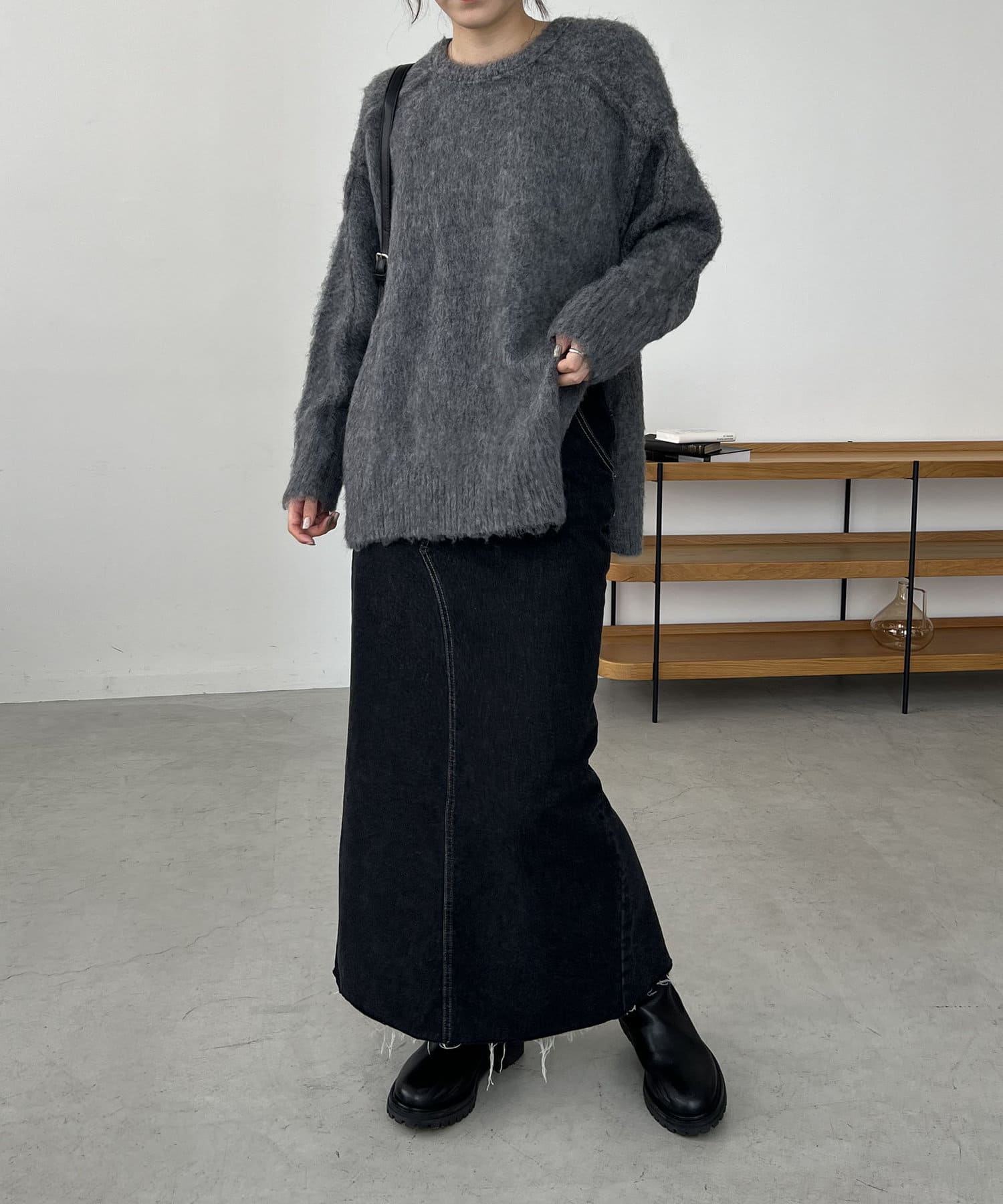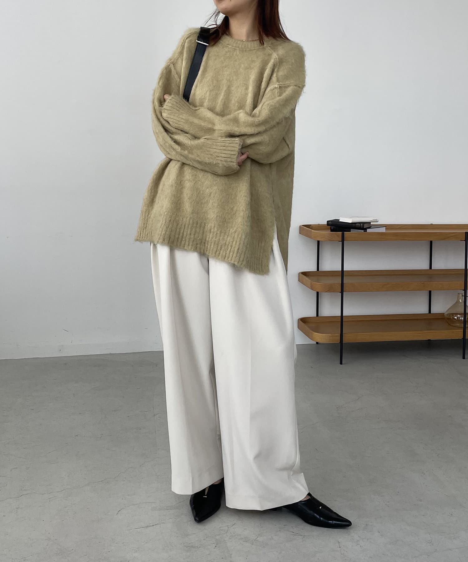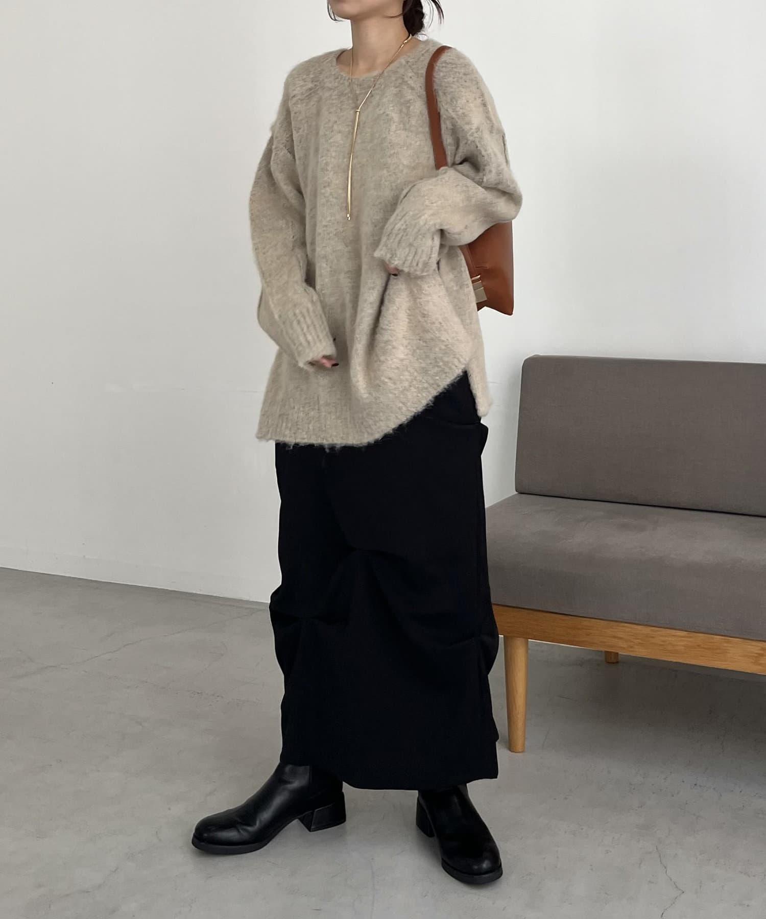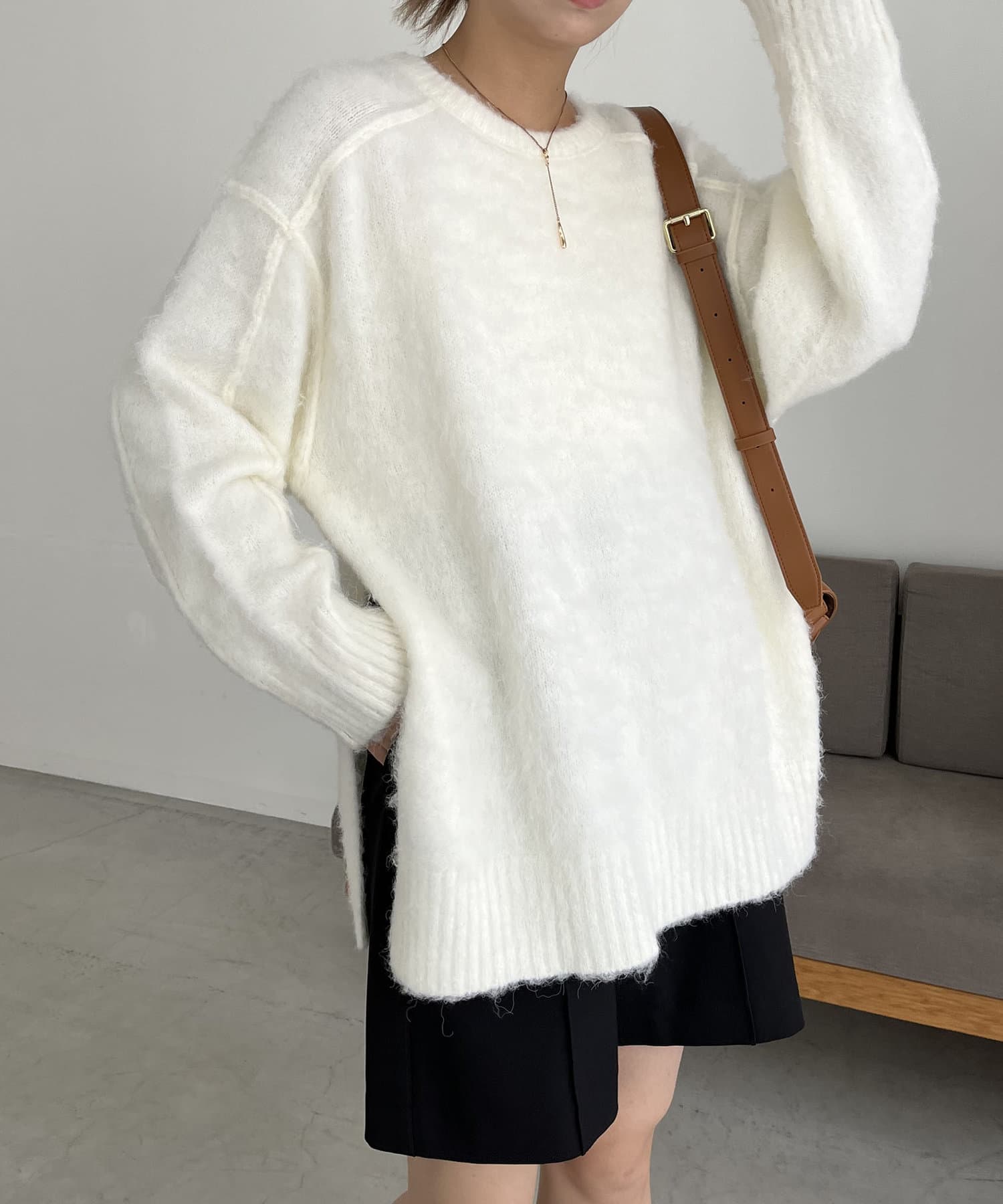 抜け感漂うゆるっとしたシルエットのシャギーニット