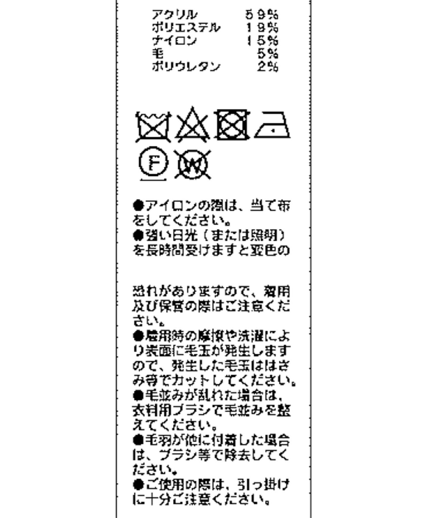 素材 アクリル59% ポリエステル19% ナイロン15% 毛5% ポリウレタン2%