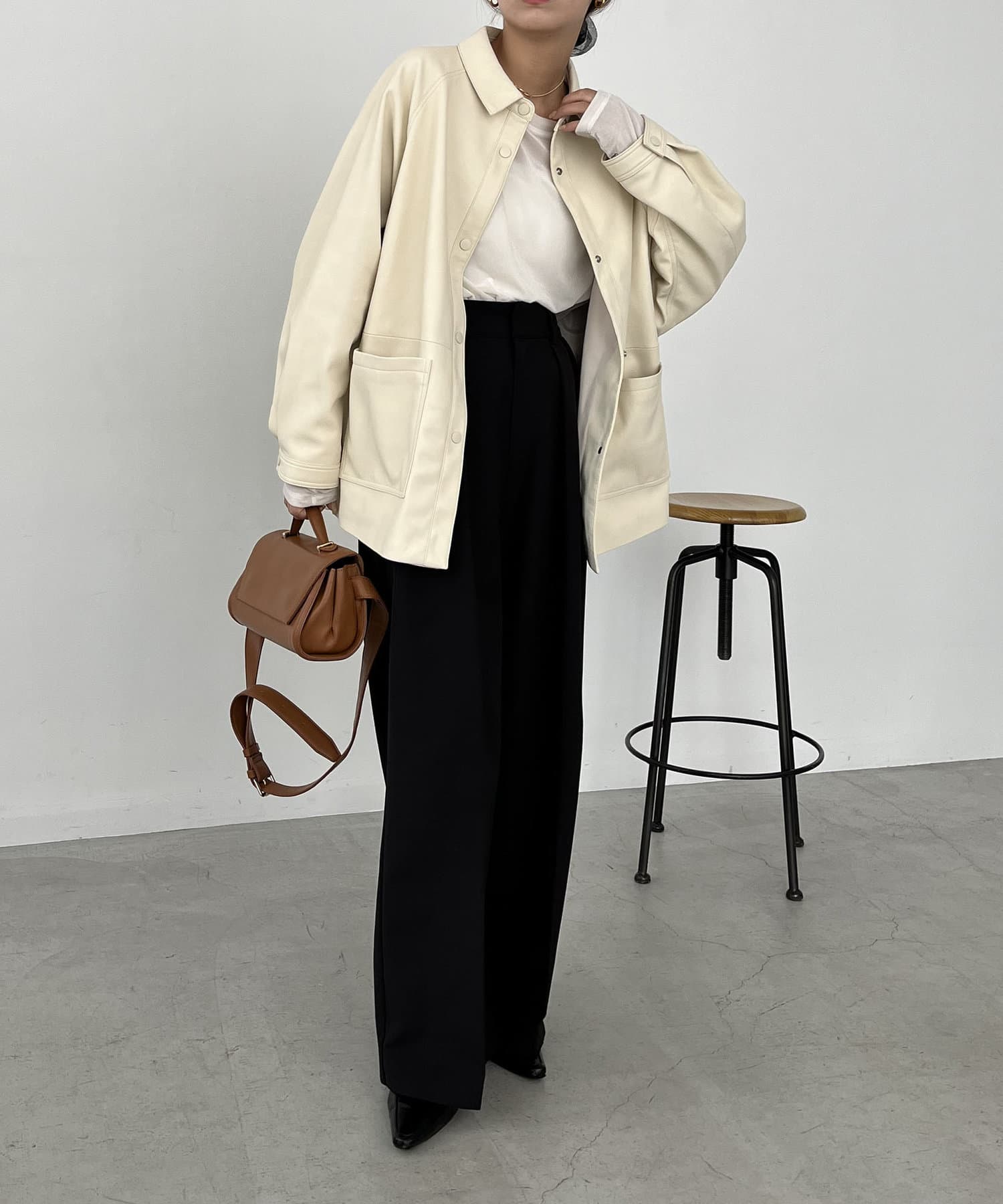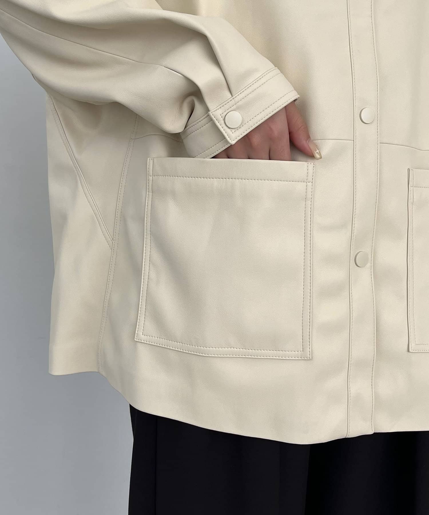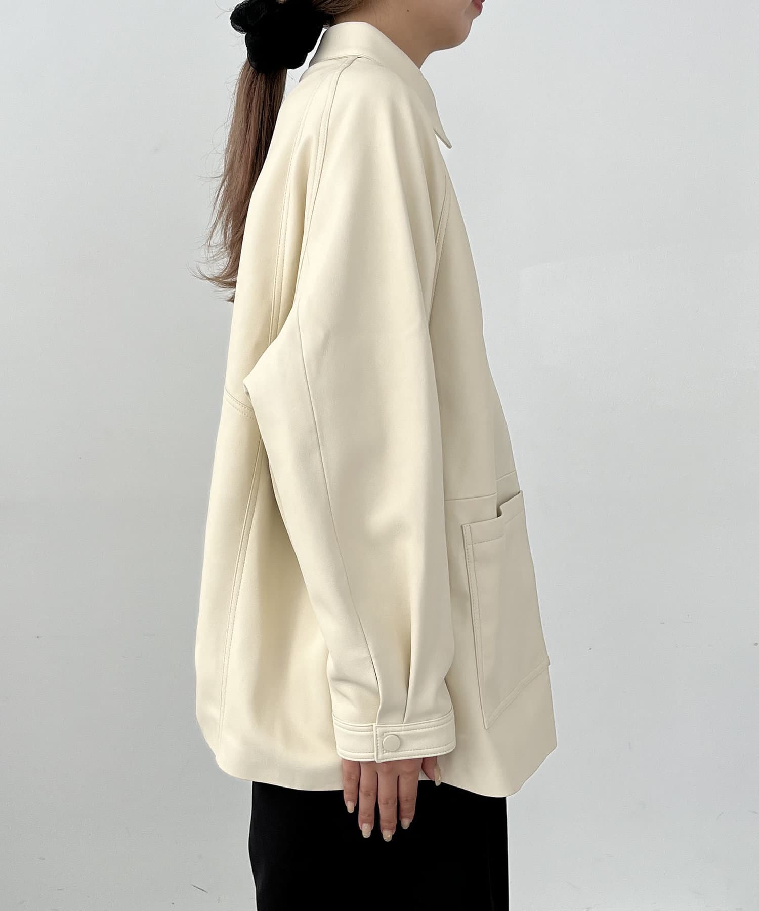 ・柔らかく滑らかな合皮素材でオーバーサイズだけど落ち感があるレザージャケット