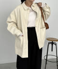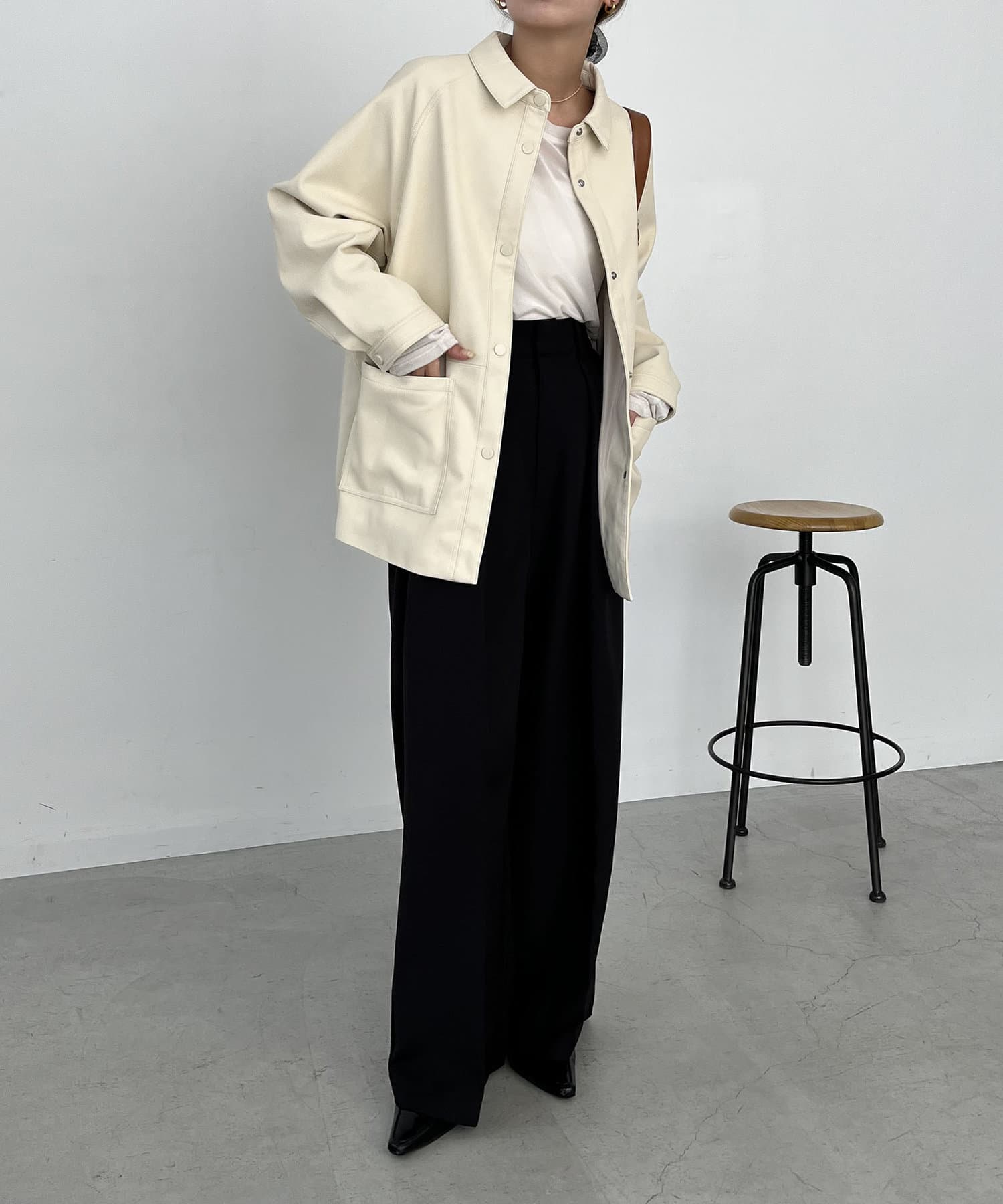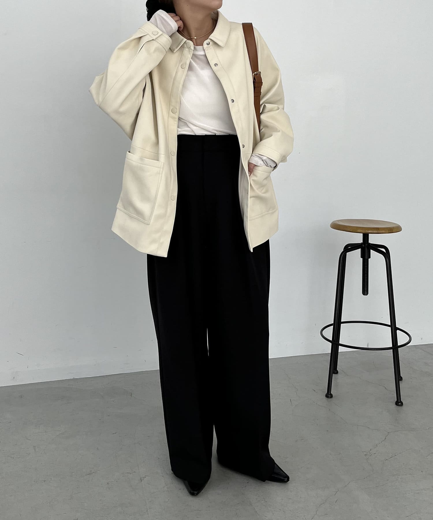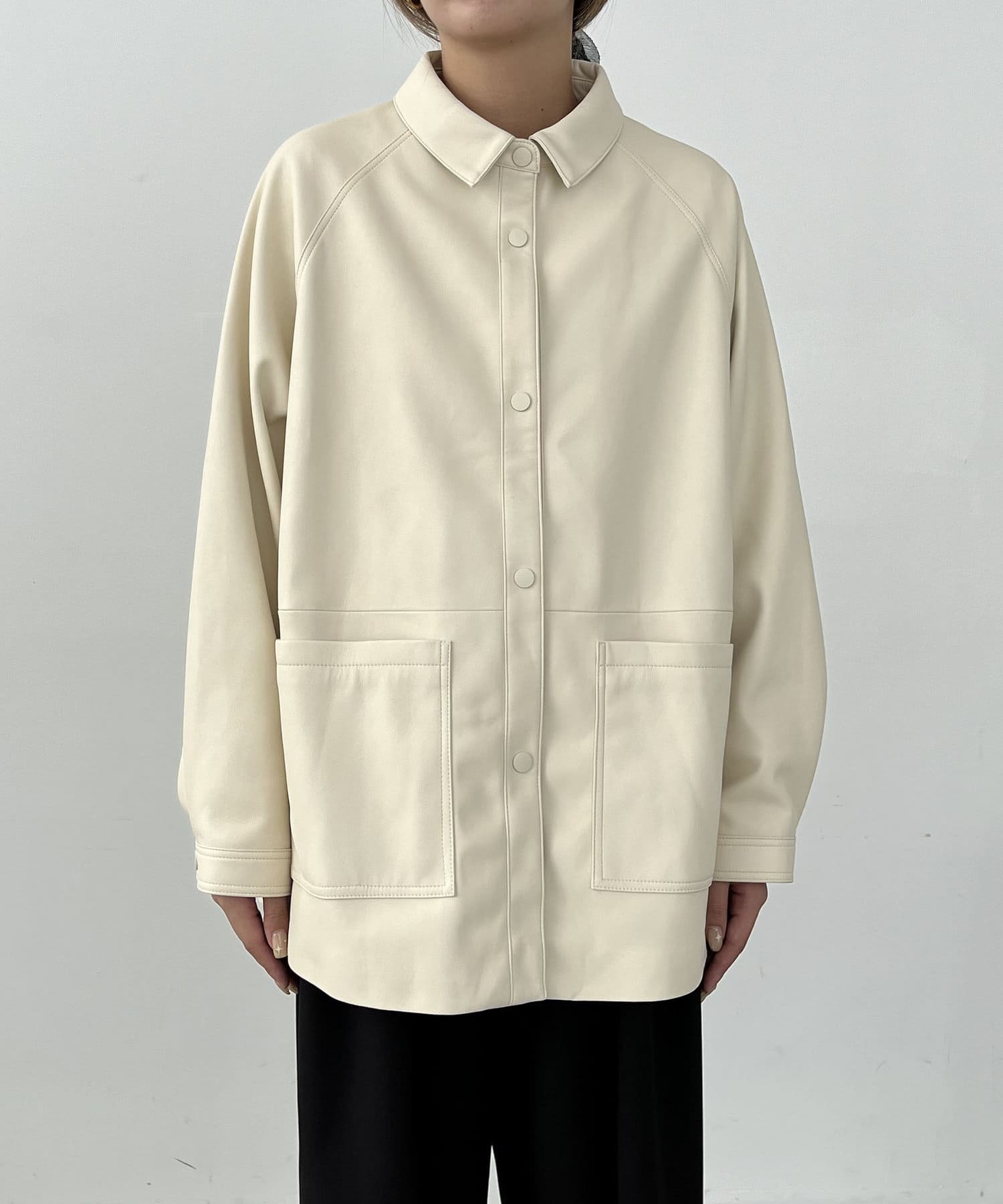 ・柔らかく滑らかな合皮素材でオーバーサイズだけど落ち感があるレザージャケット
