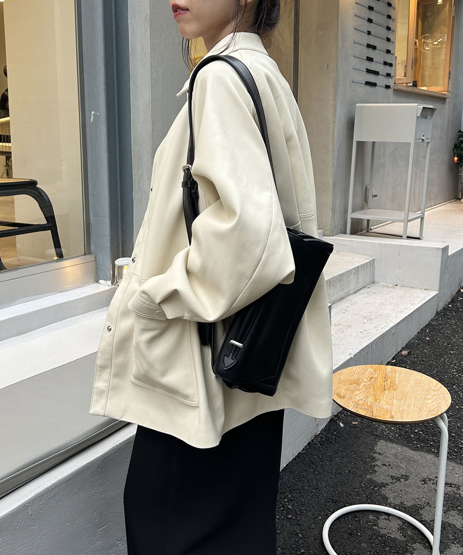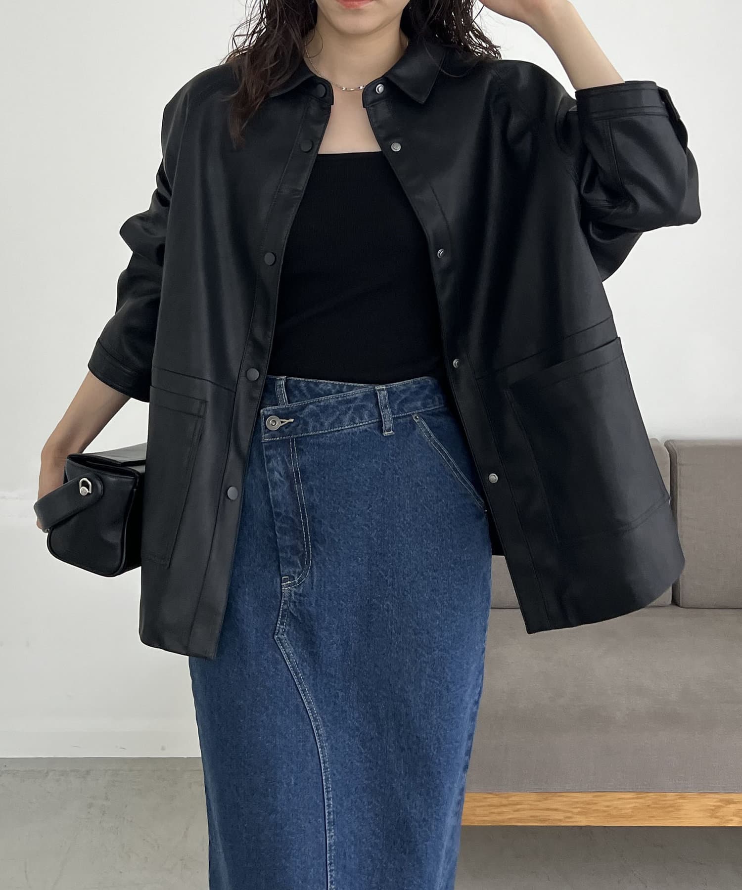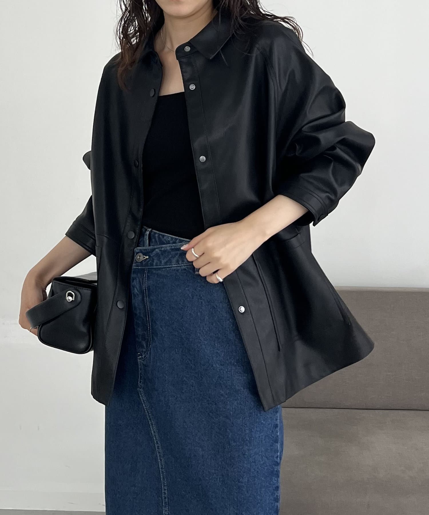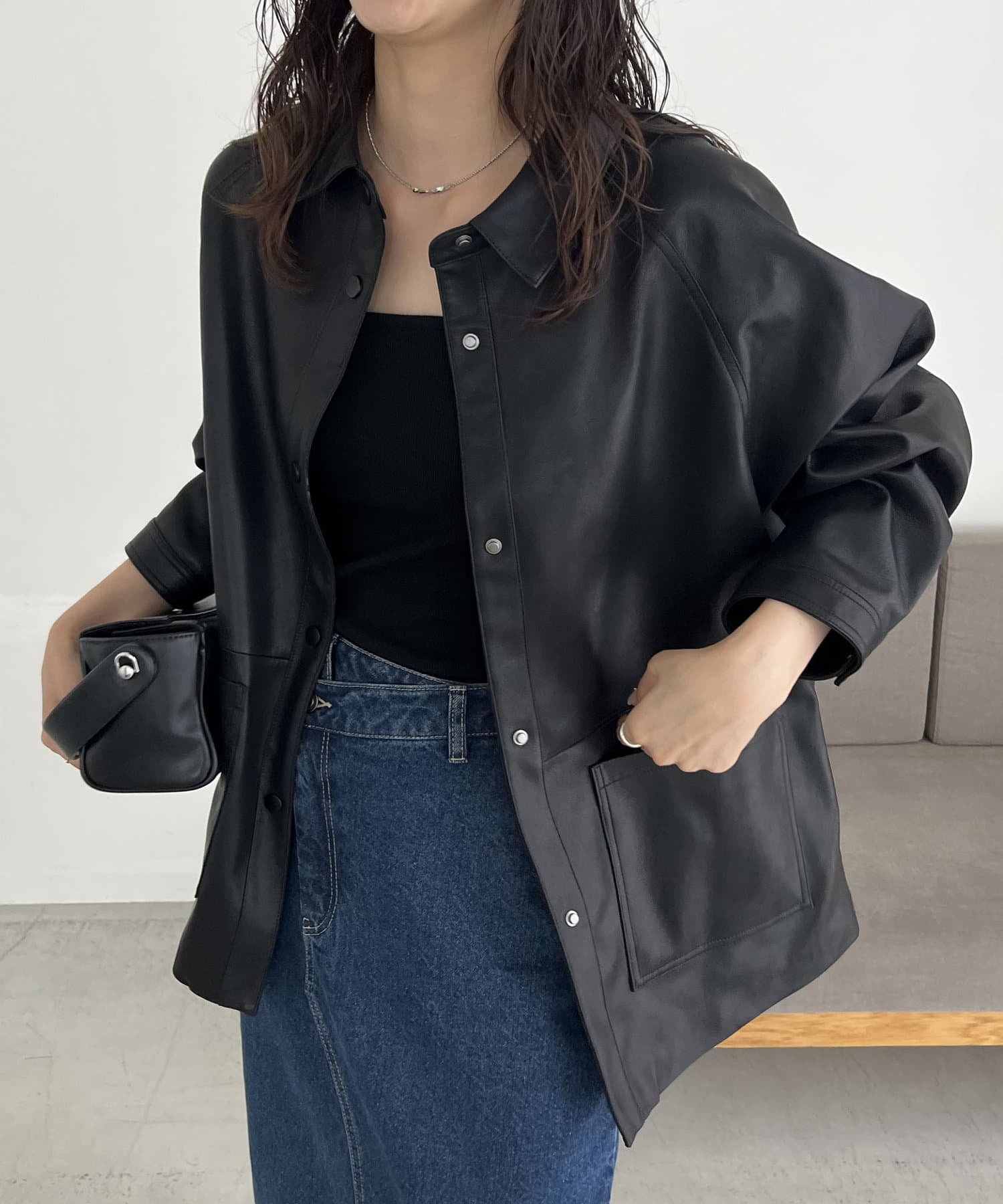 女性らしく羽織れるオーバーサイズのレザージャケット