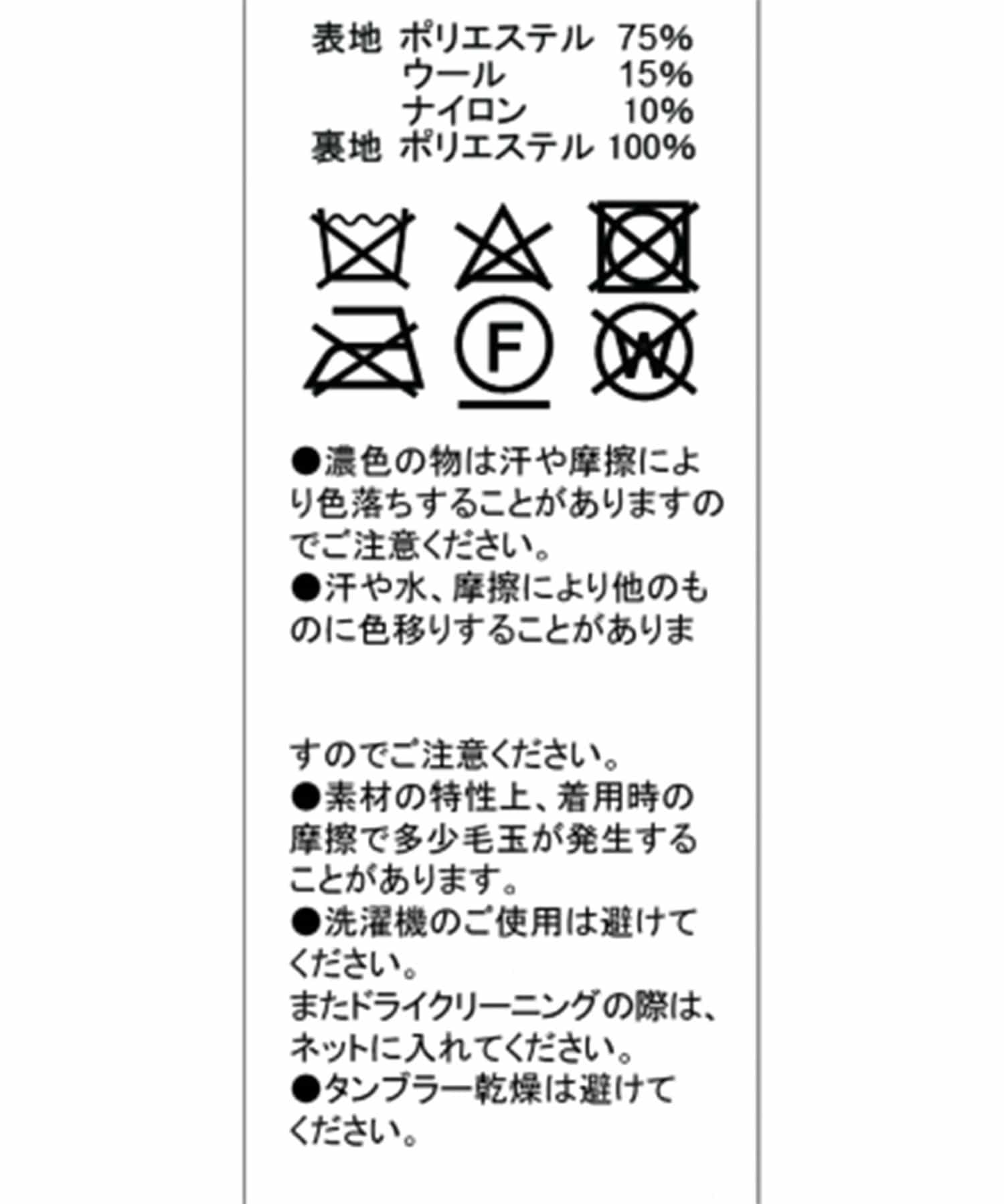 アイテム詳細 品番 LEZ1042307A0002 素材 表地:ポリエステル75% 毛15% レーヨン10%