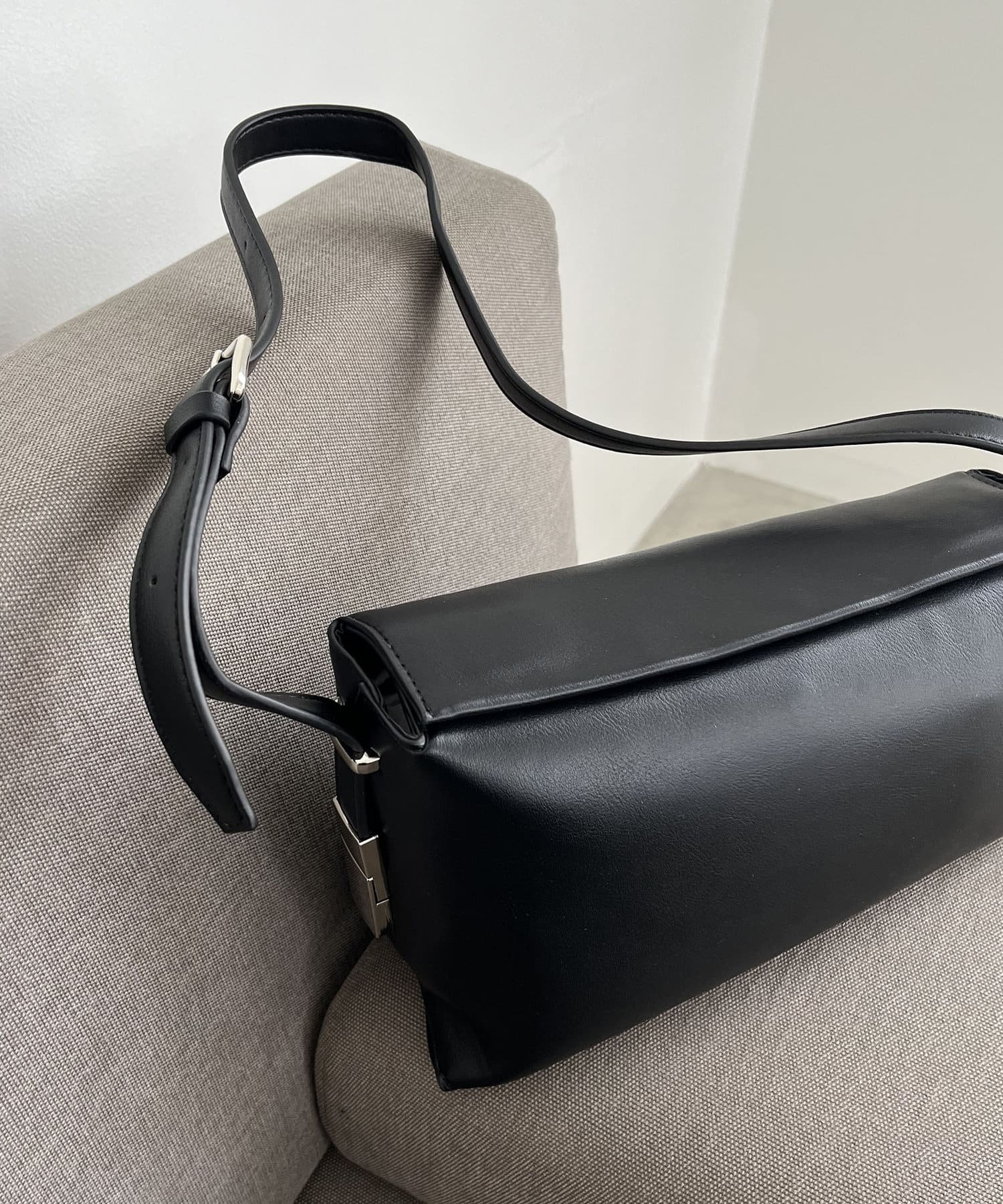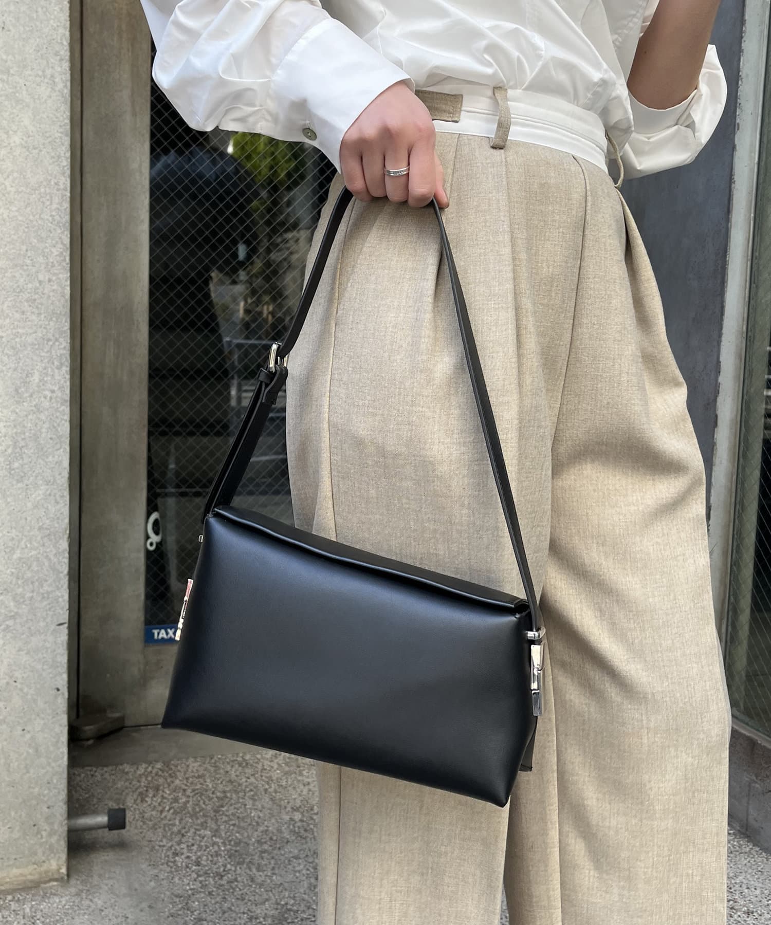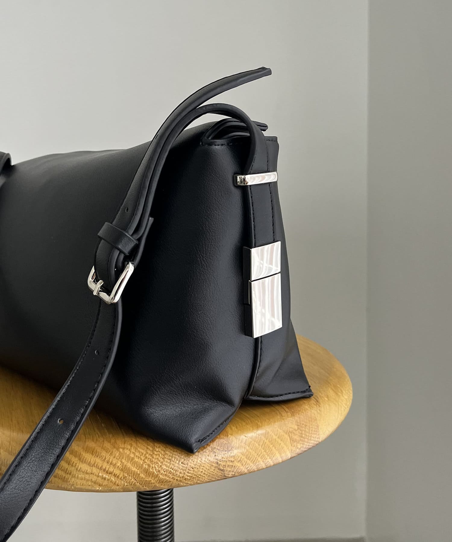 ・アシンメトリーなスクエア型がおしゃれ見えするショルダーバッグ