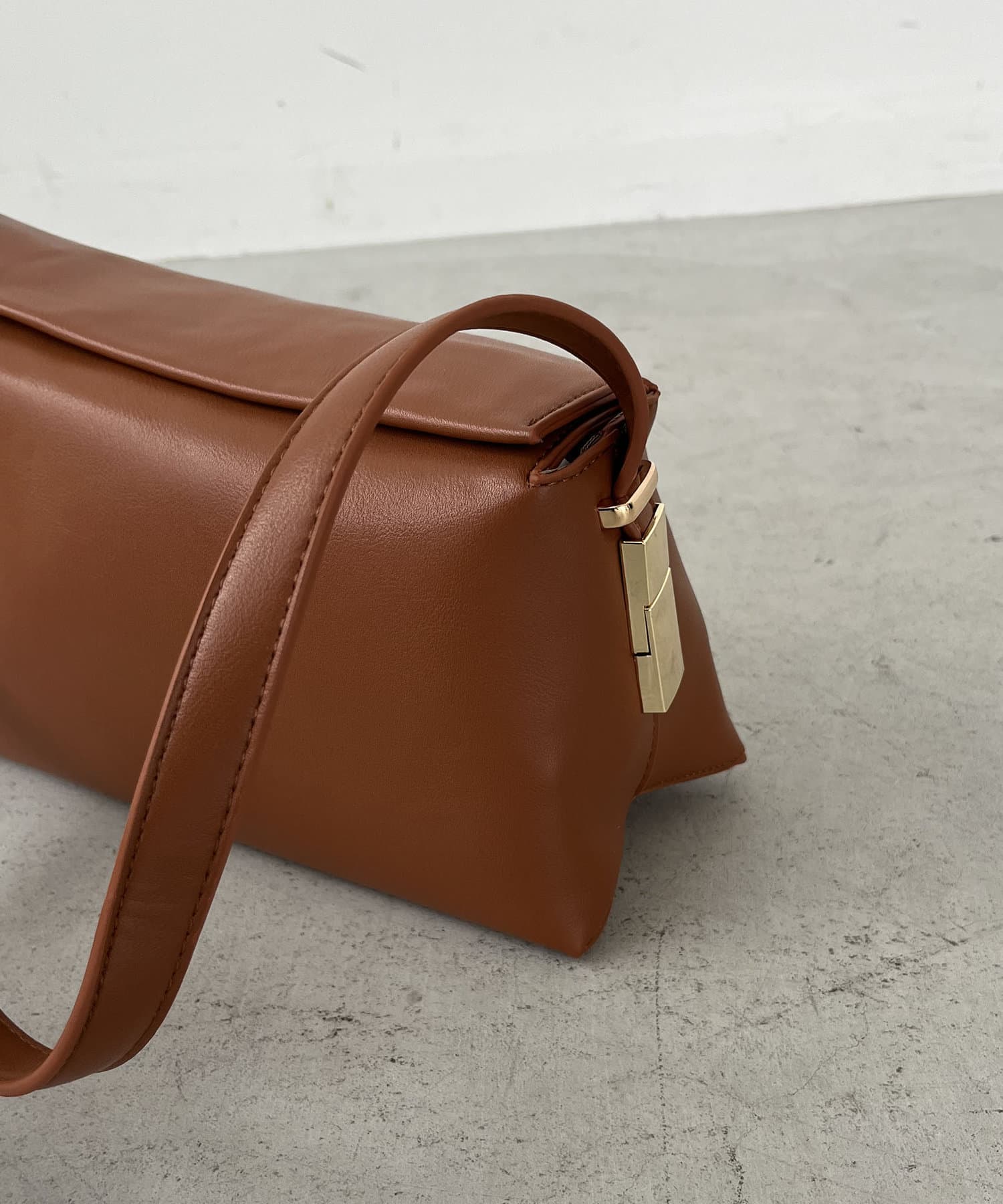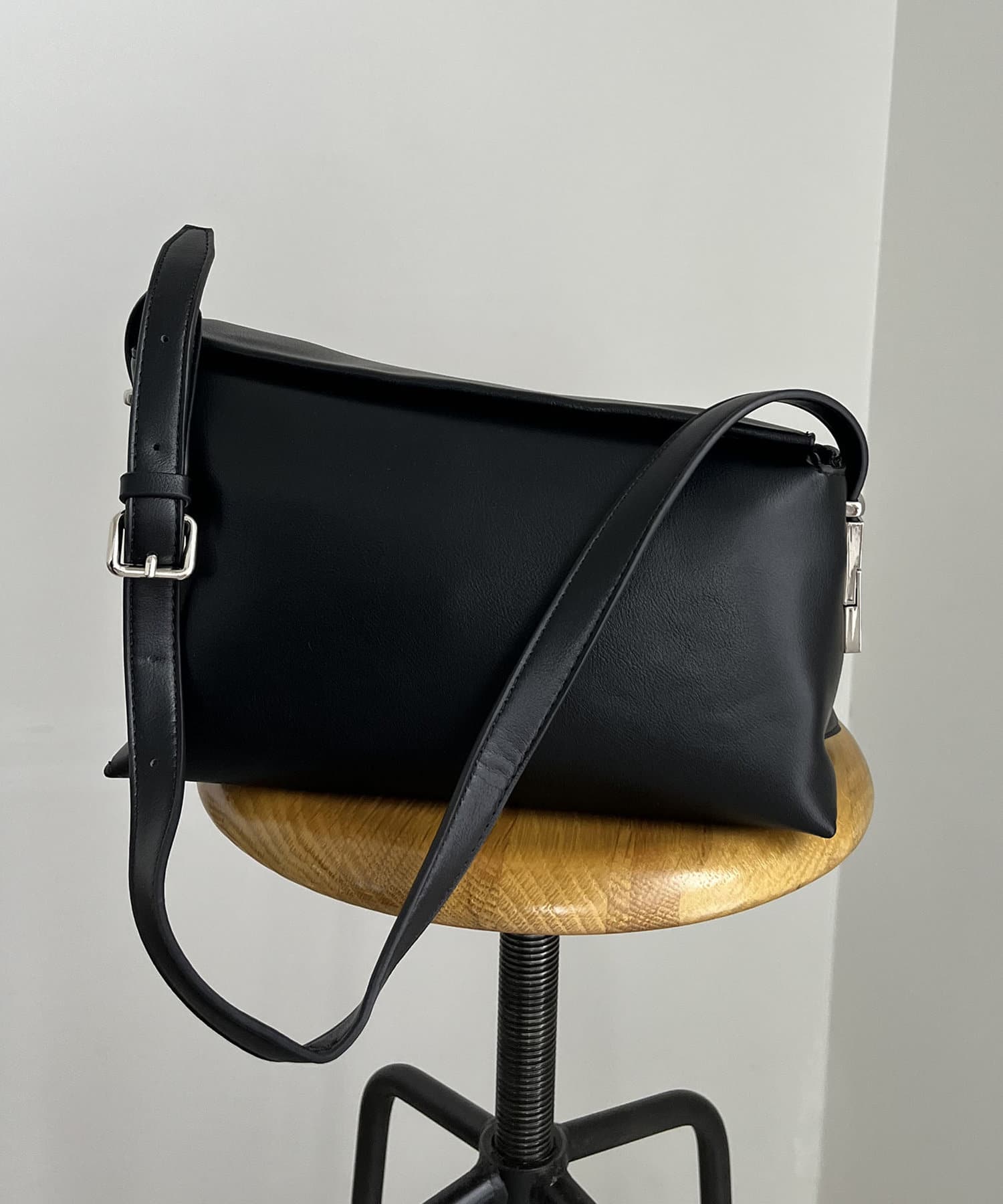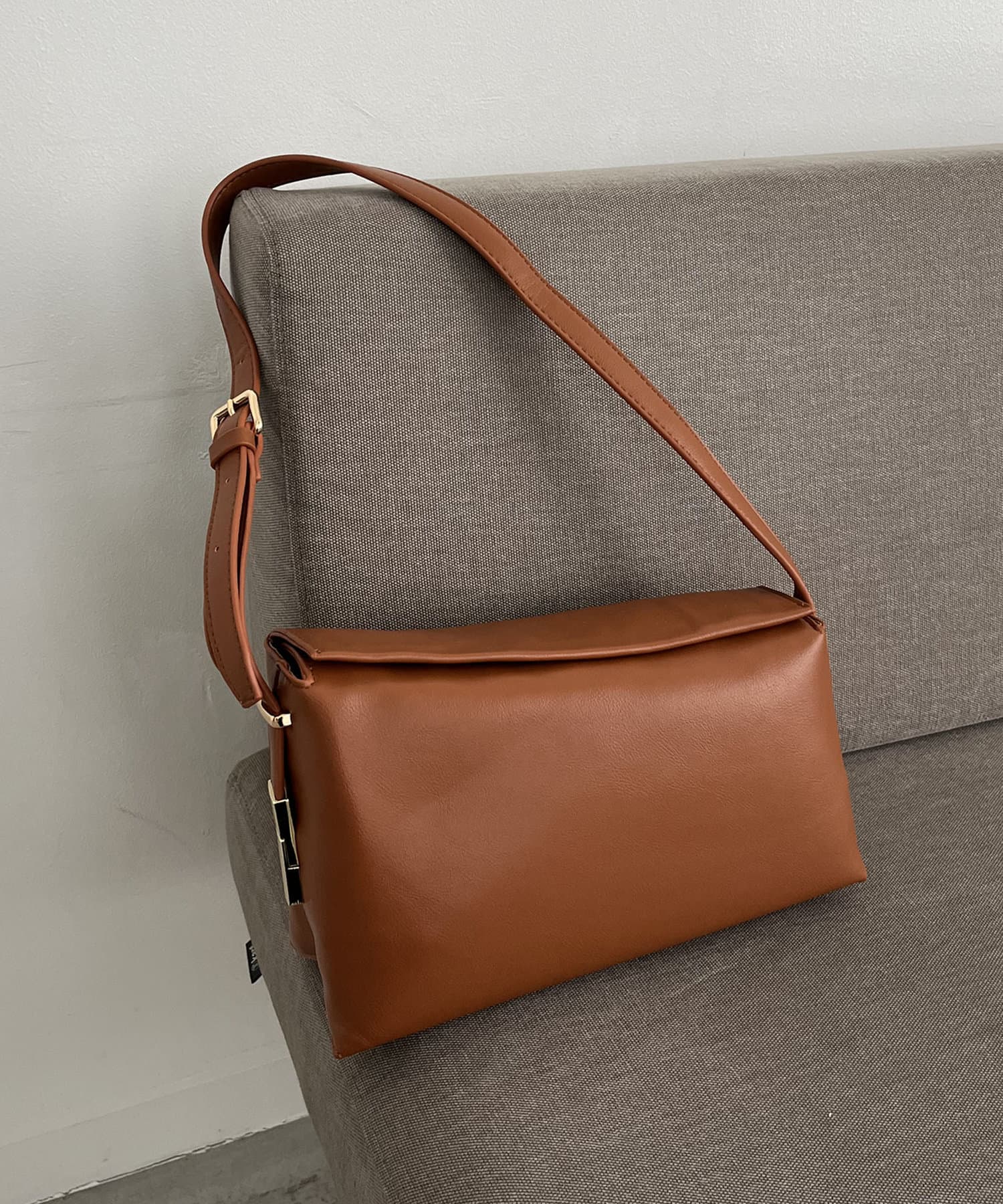 ・アシンメトリーなスクエア型がおしゃれ見えするショルダーバッグ