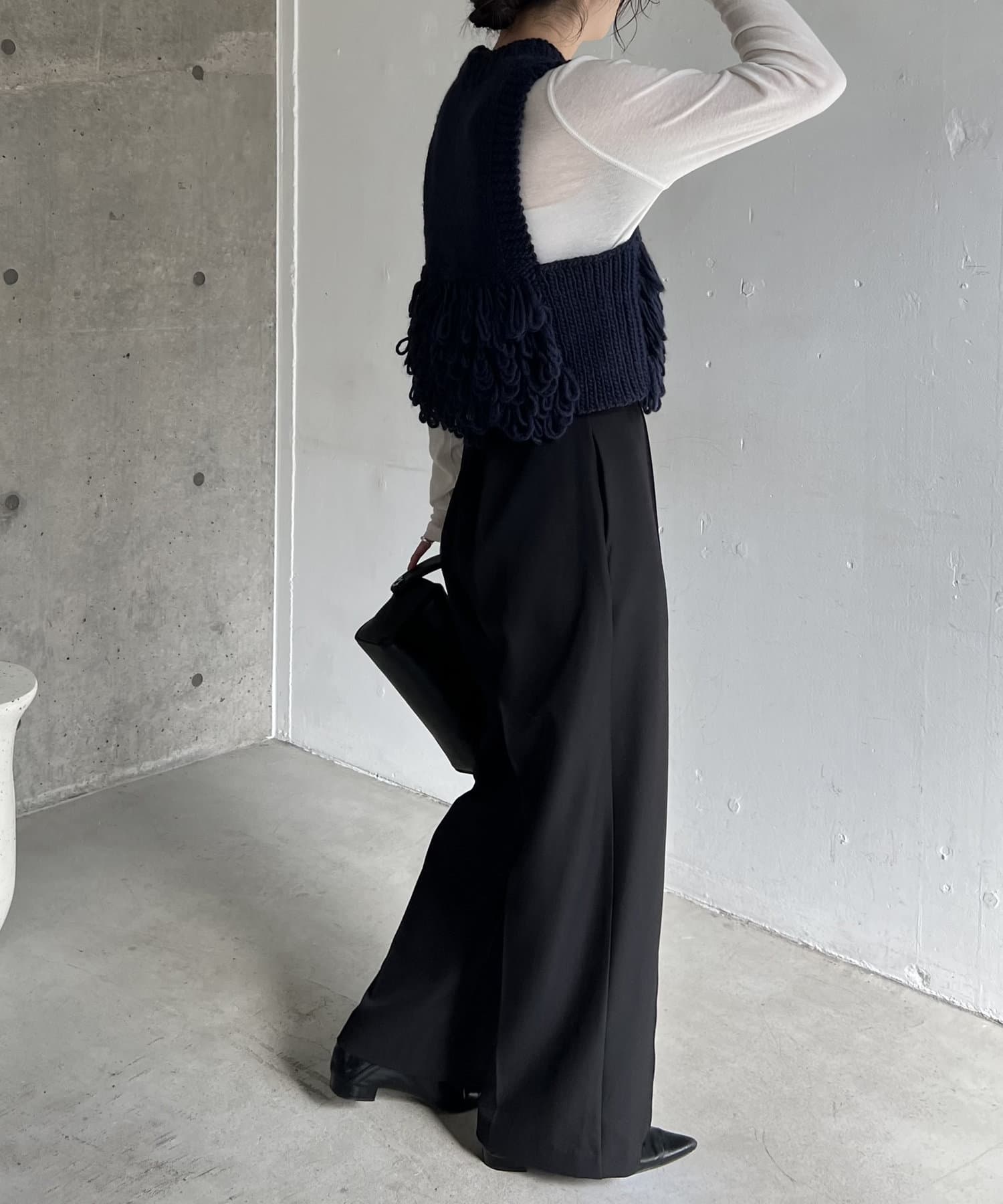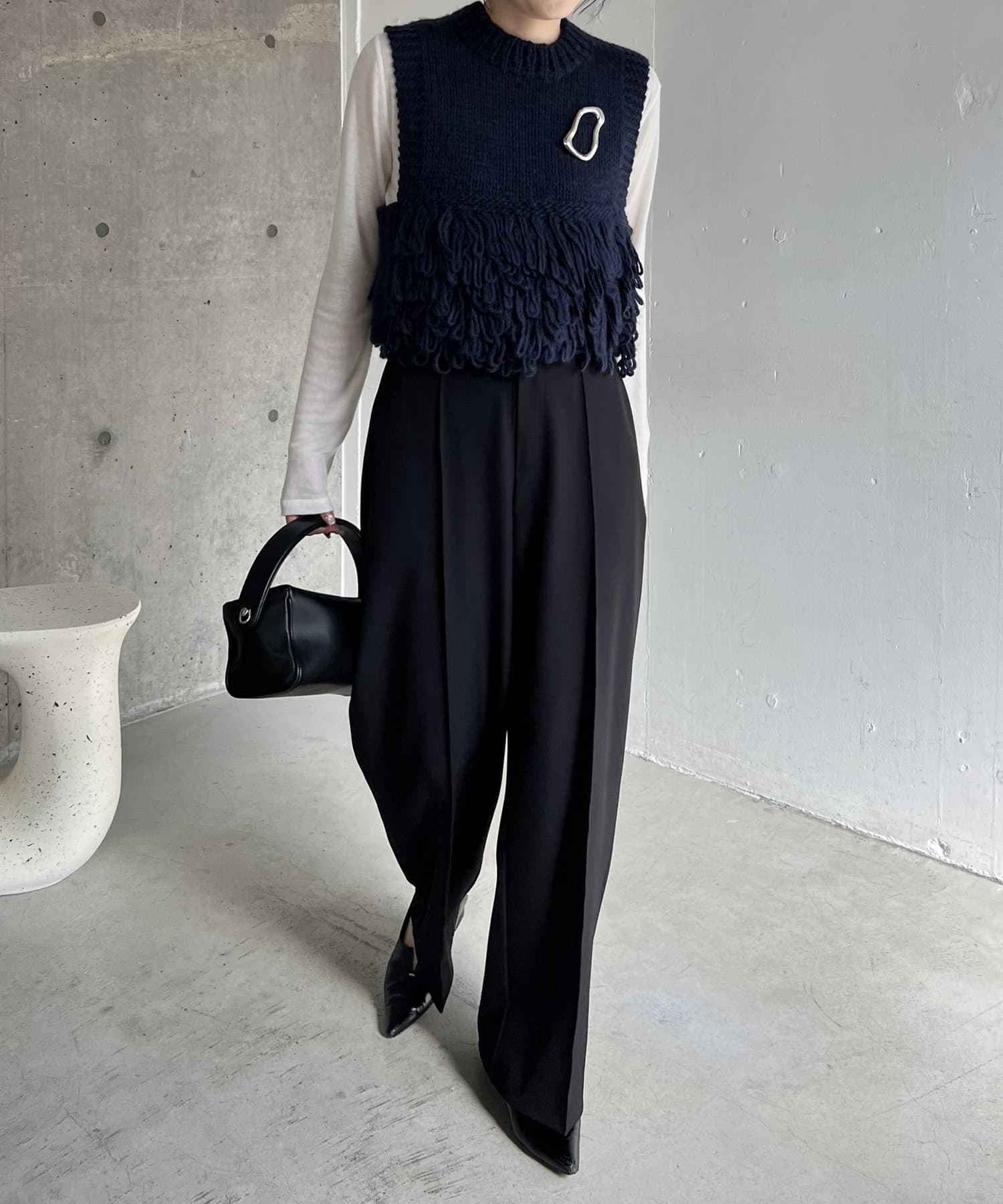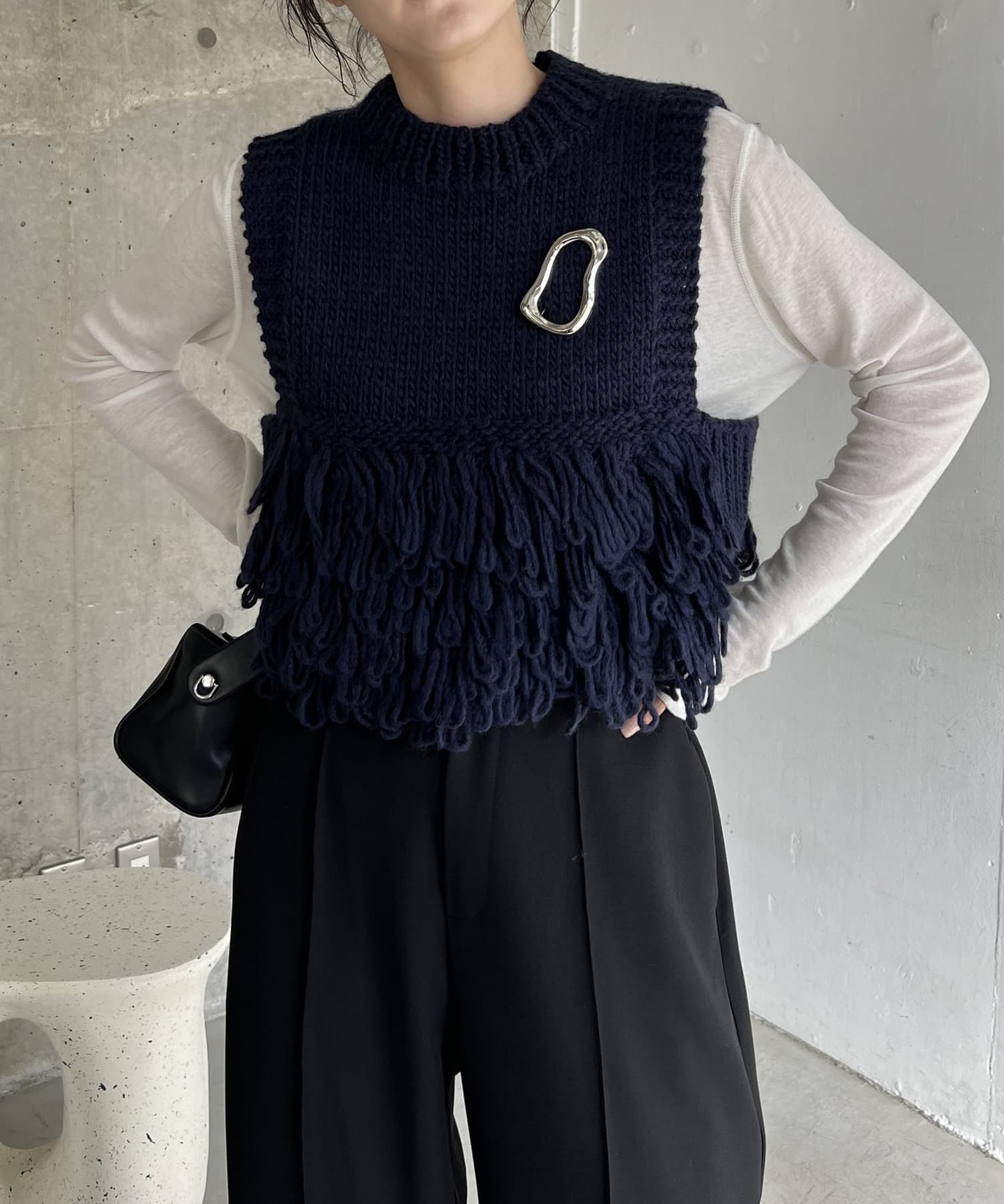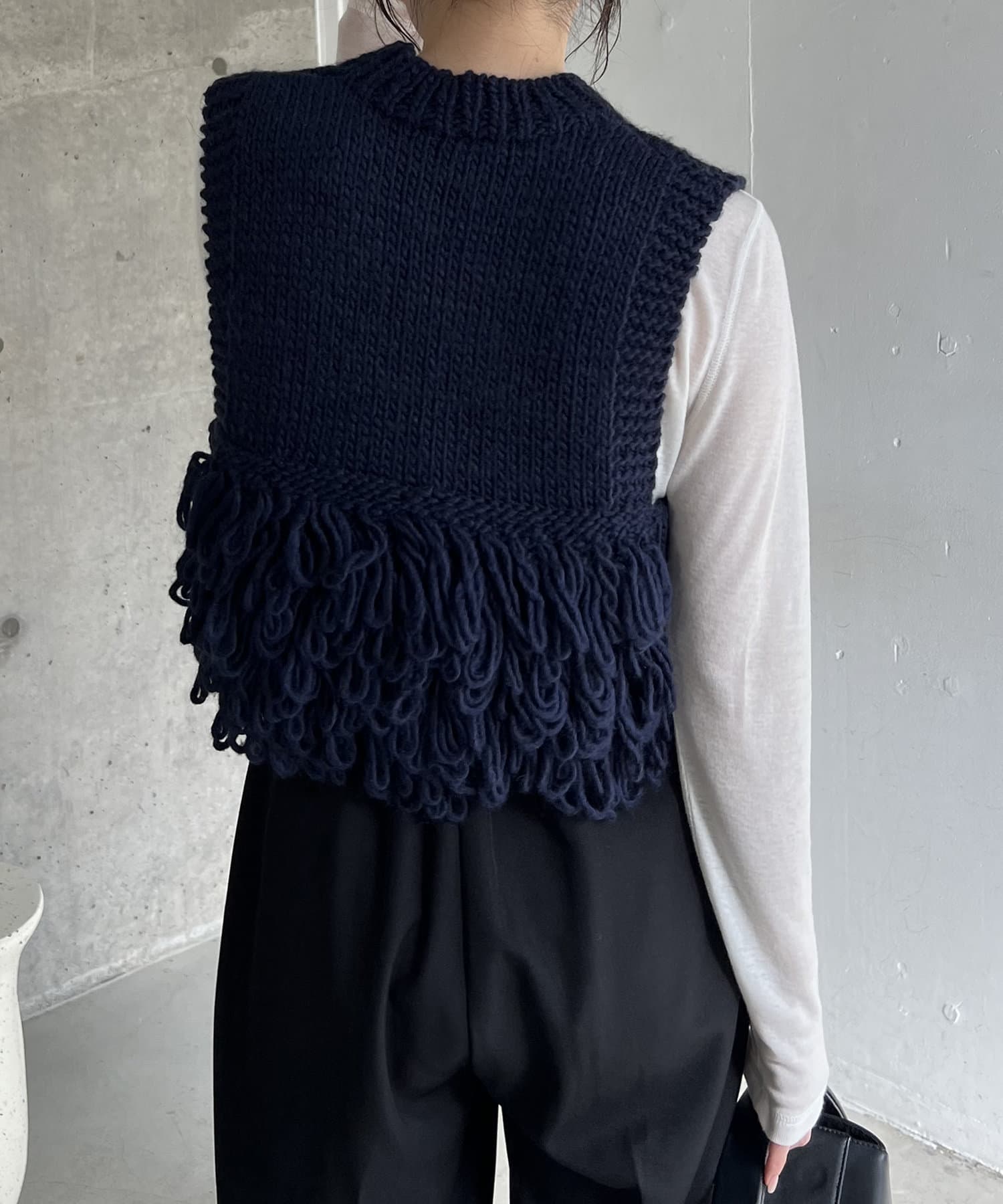 ・フリンジのような長めのループは、前後の裾に配置することで着膨れせず、アウターを羽織りやすい設計に◎