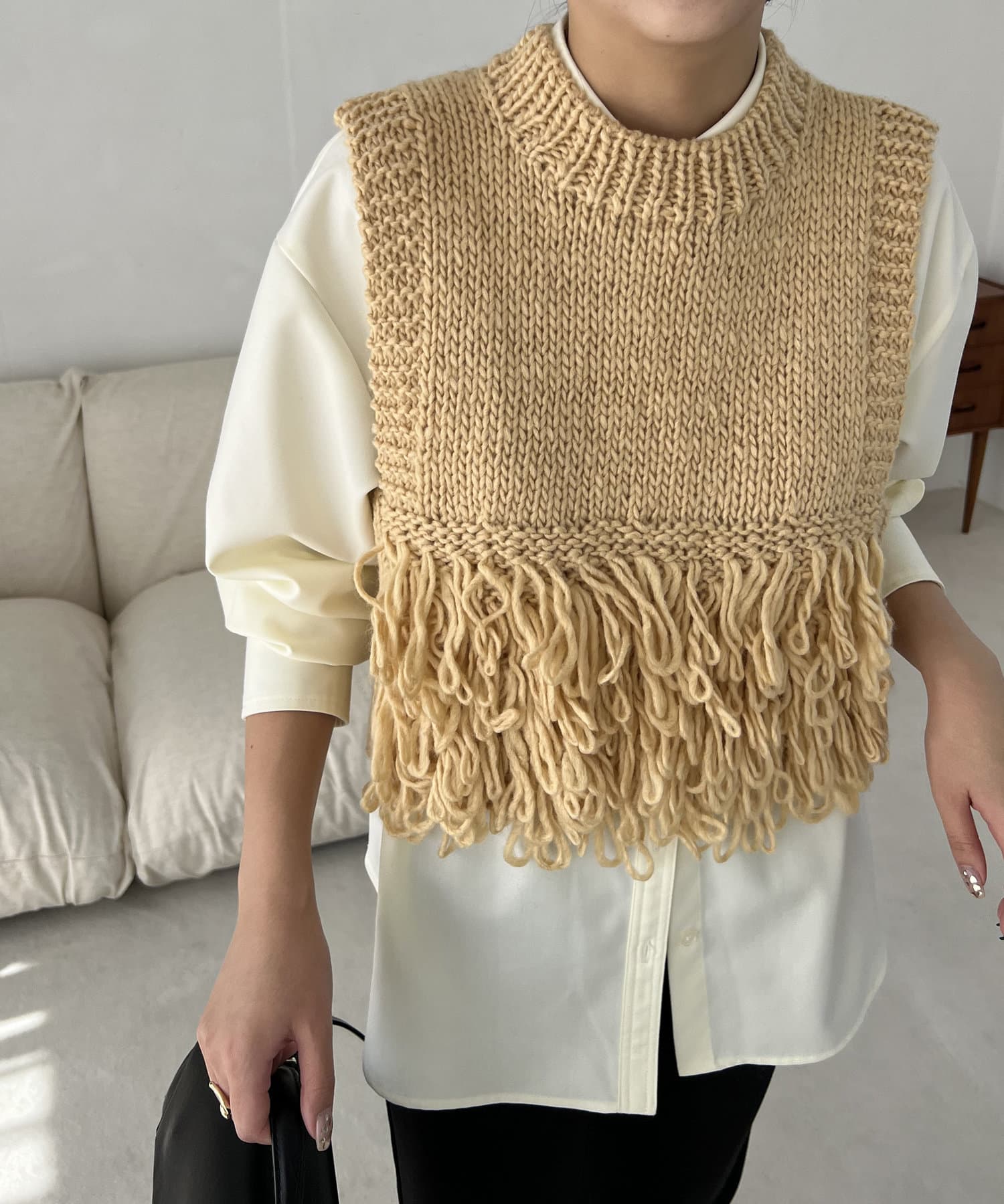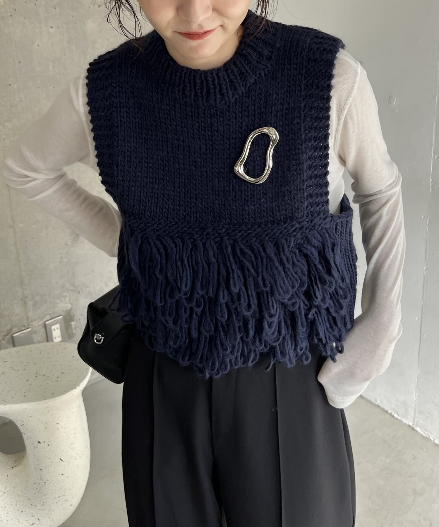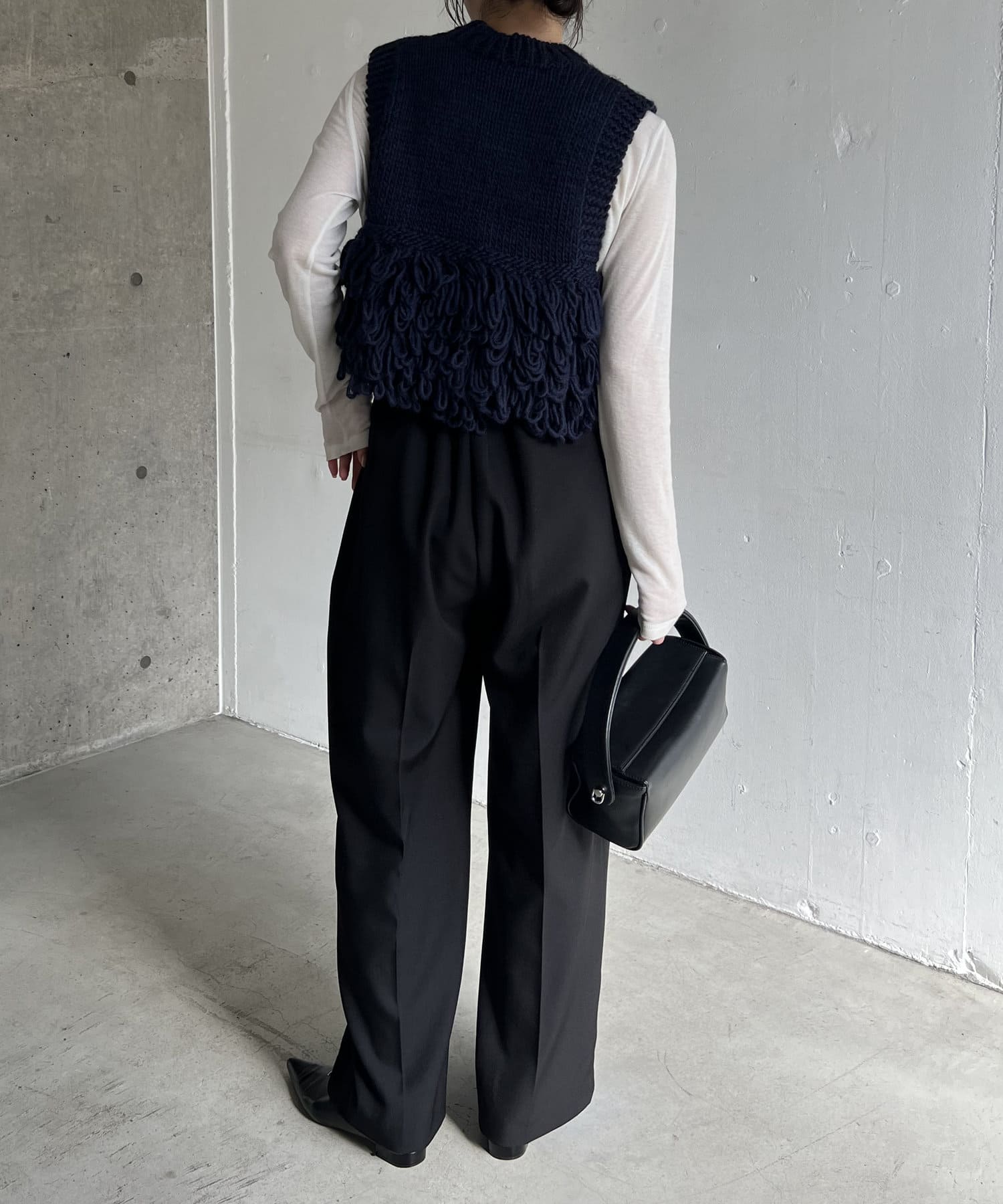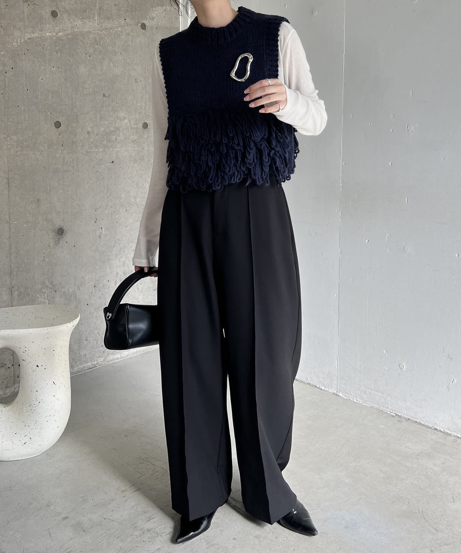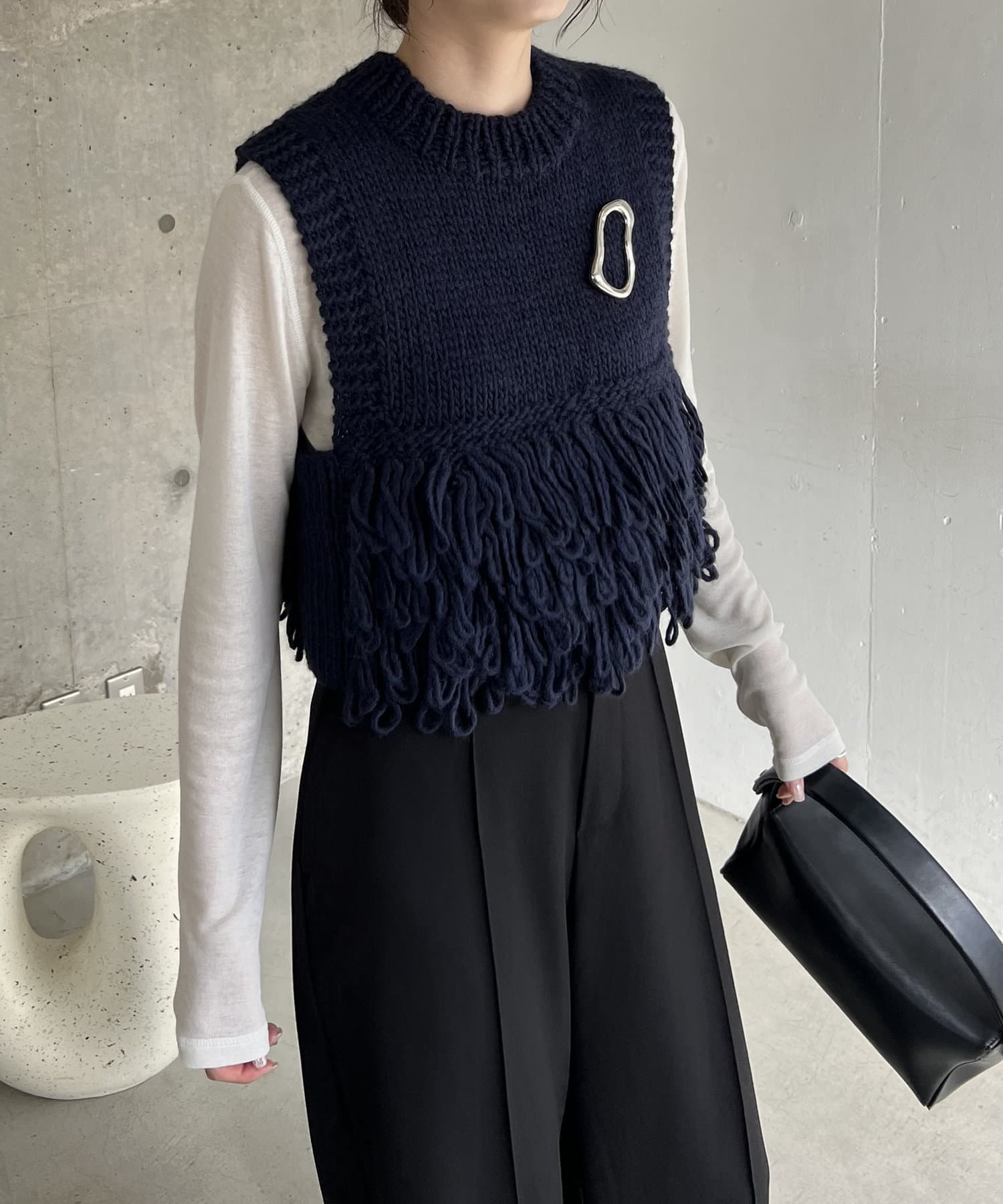 ・フリンジのような長めのループは、前後の裾に配置することで着膨れせず、アウターを羽織りやすい設計に◎