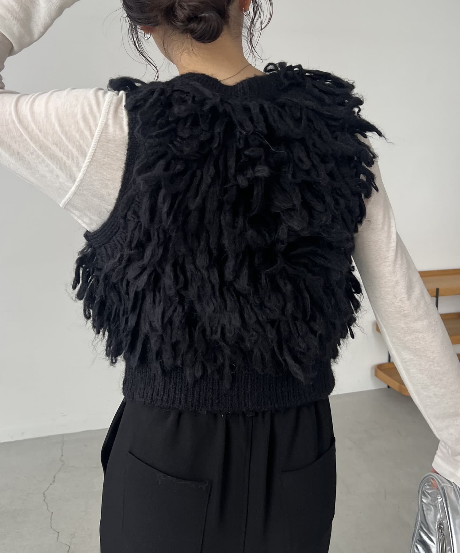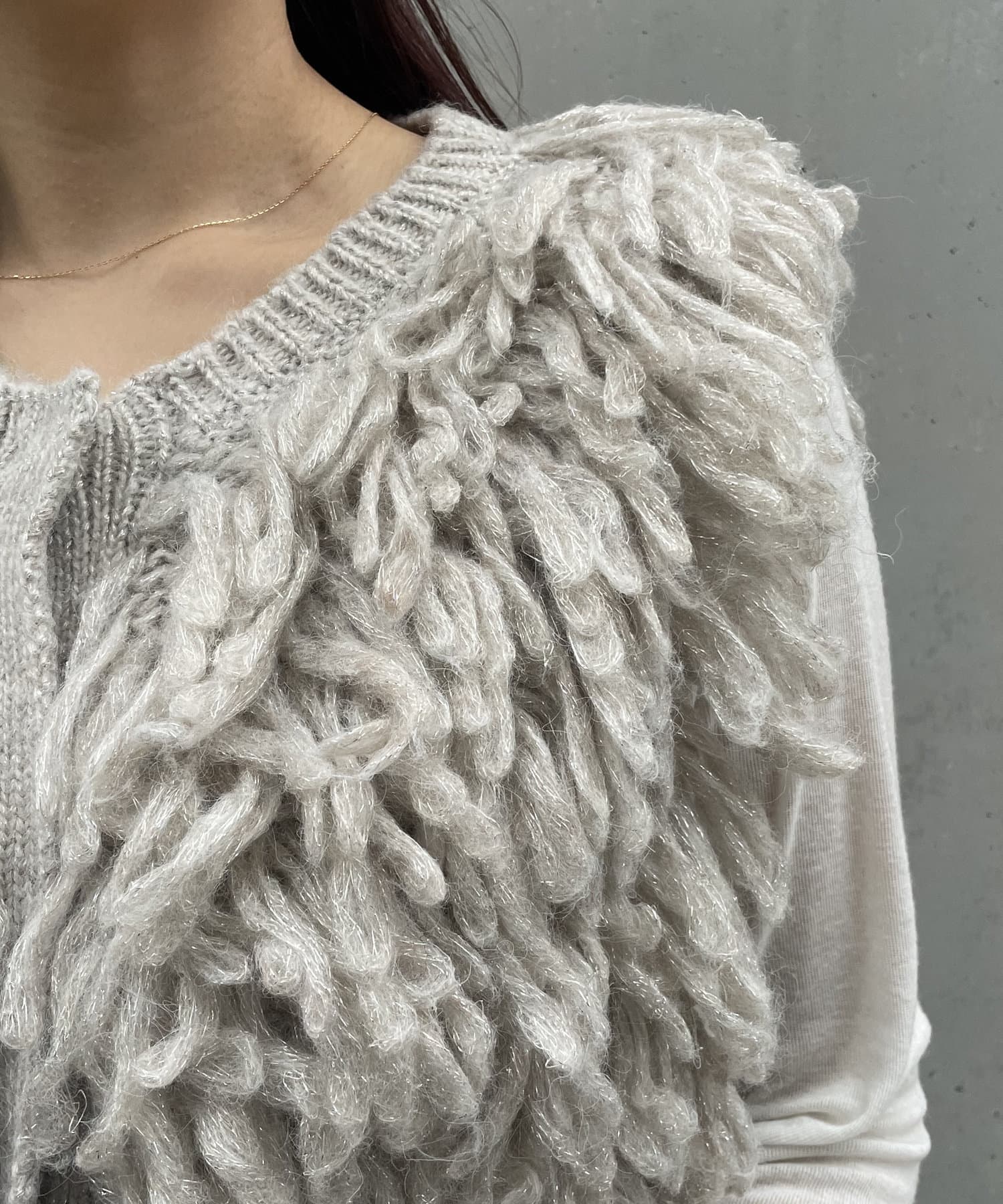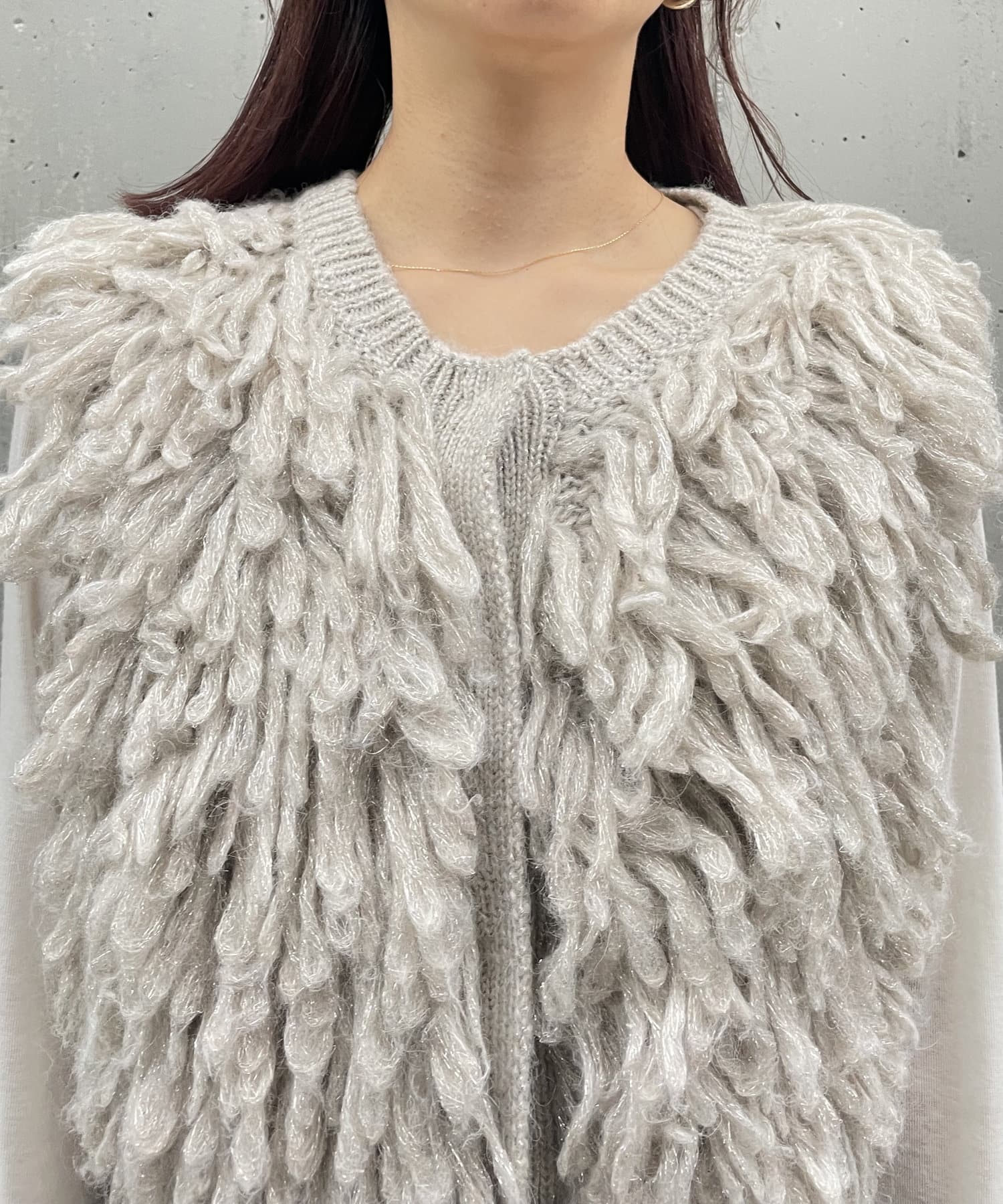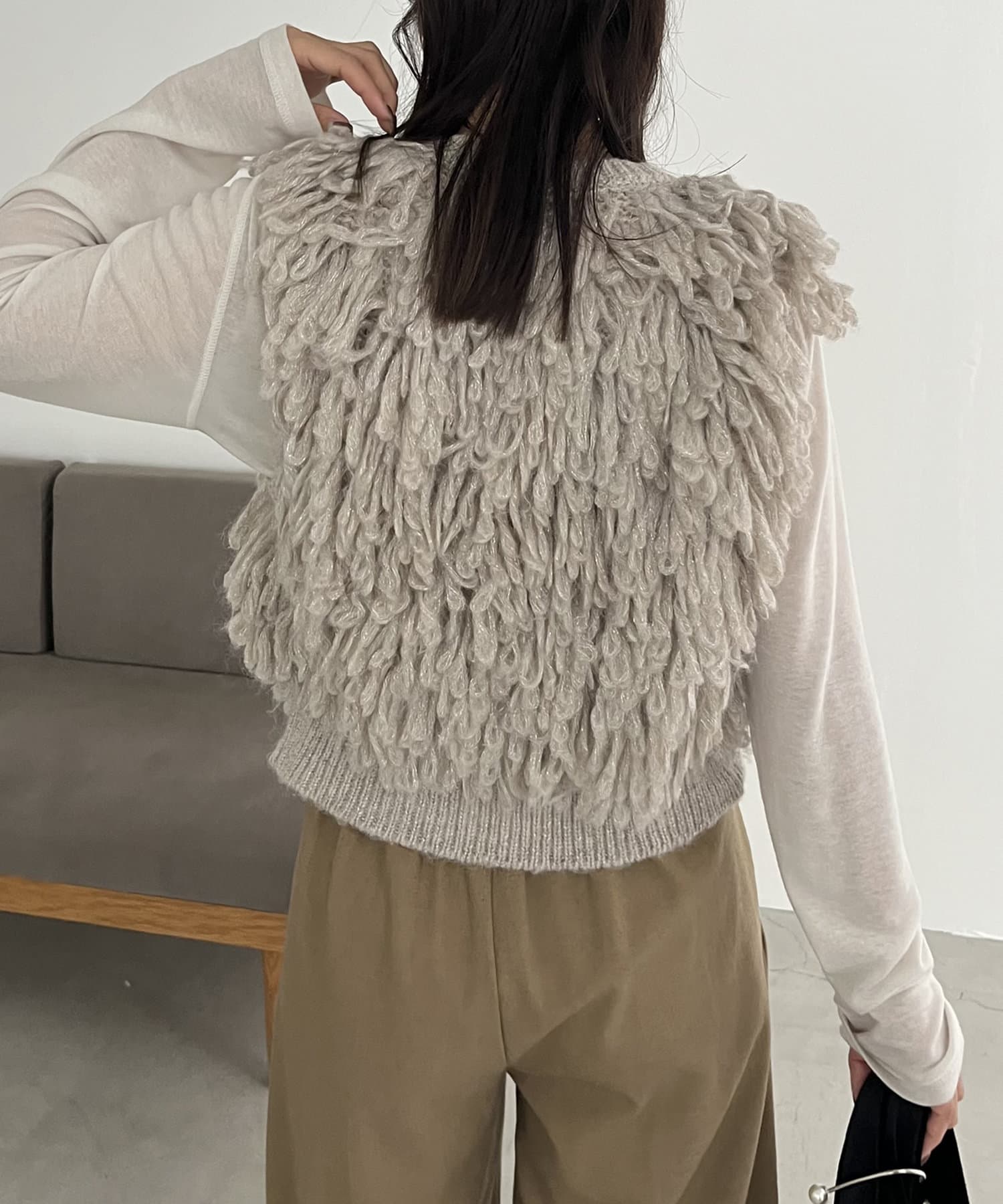 ・ループフリンジが全体に施されたデザイン性のあるニットベスト