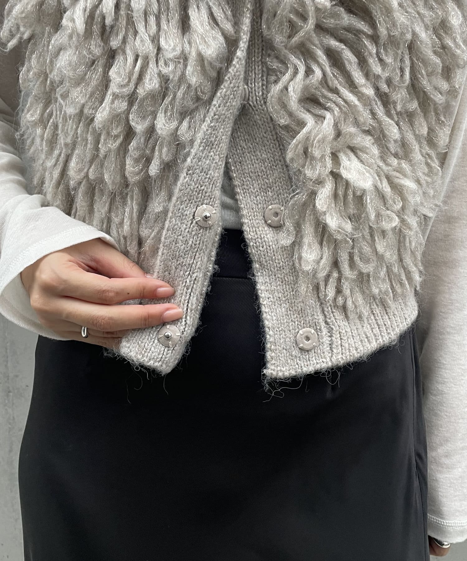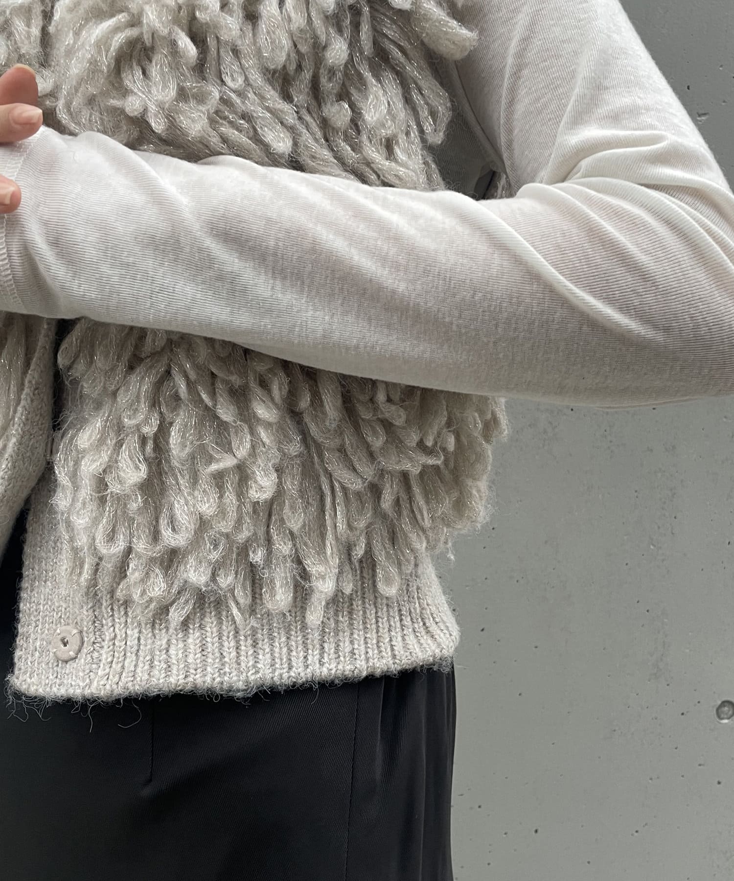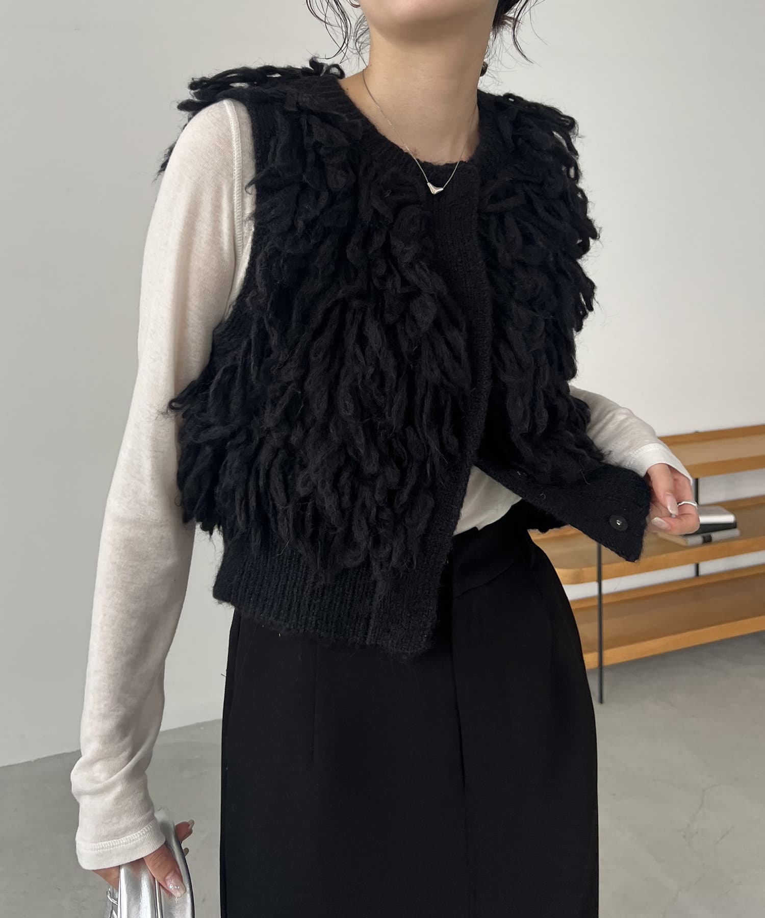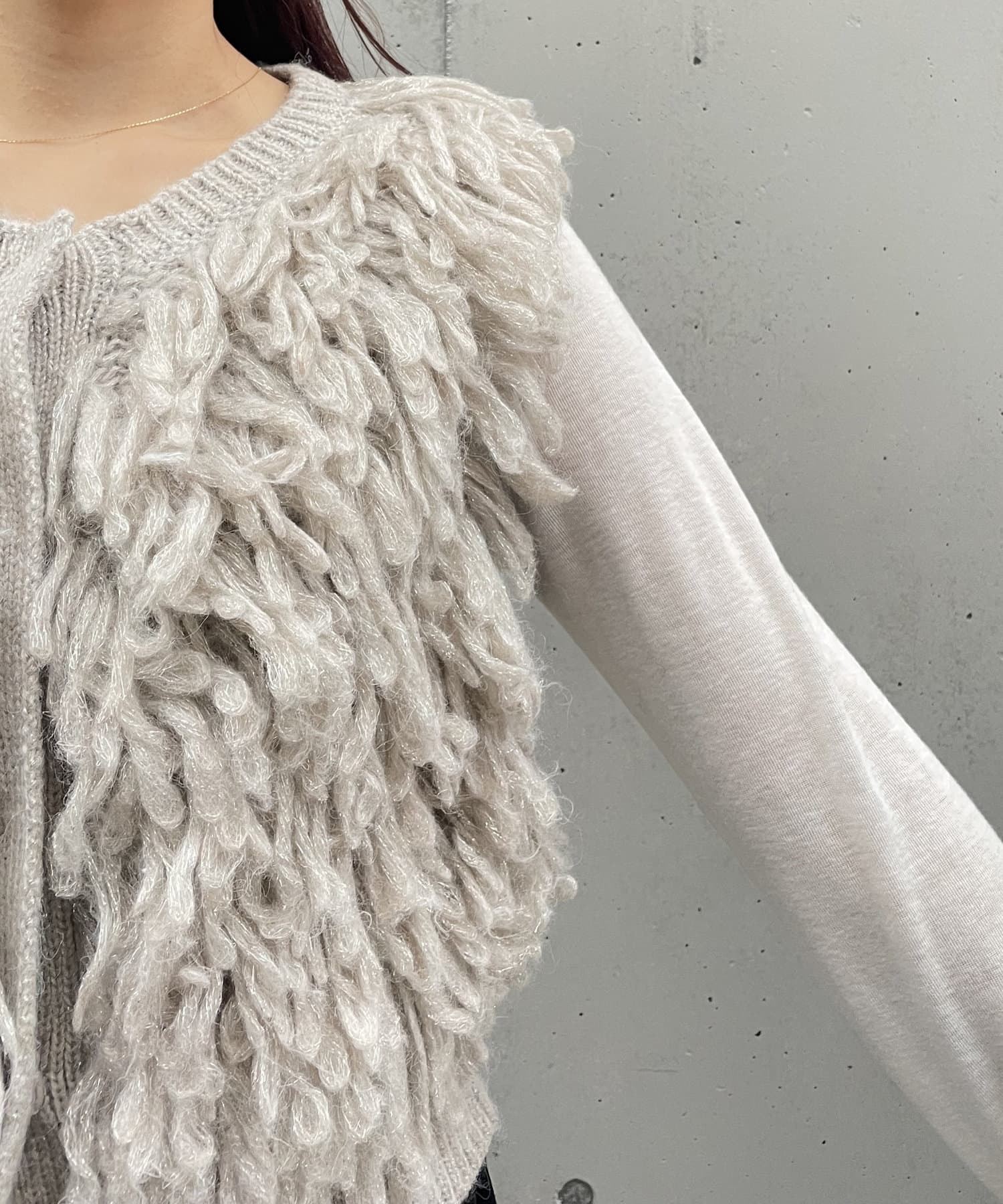 ・ループフリンジが全体に施されたデザイン性のあるニットベスト