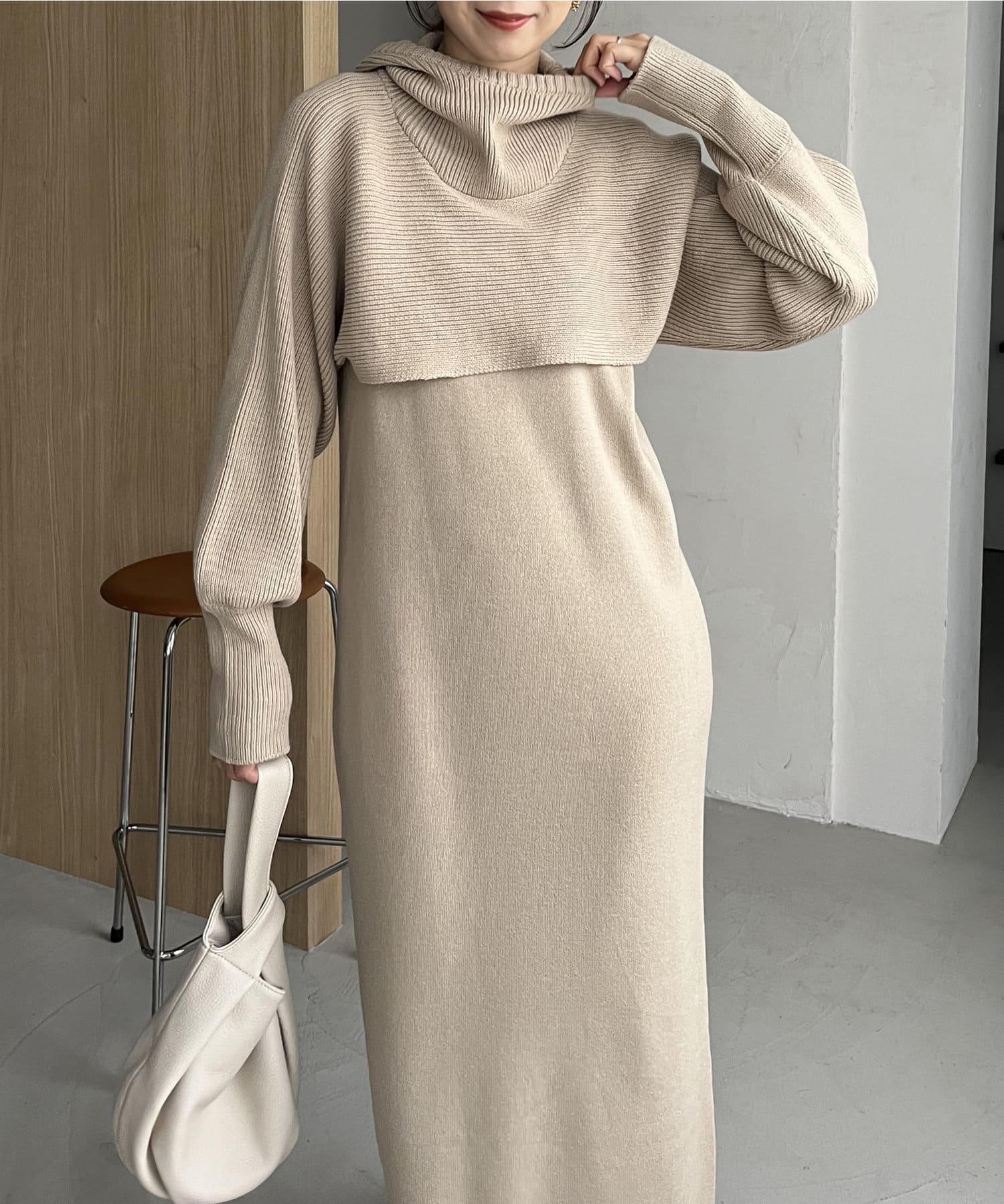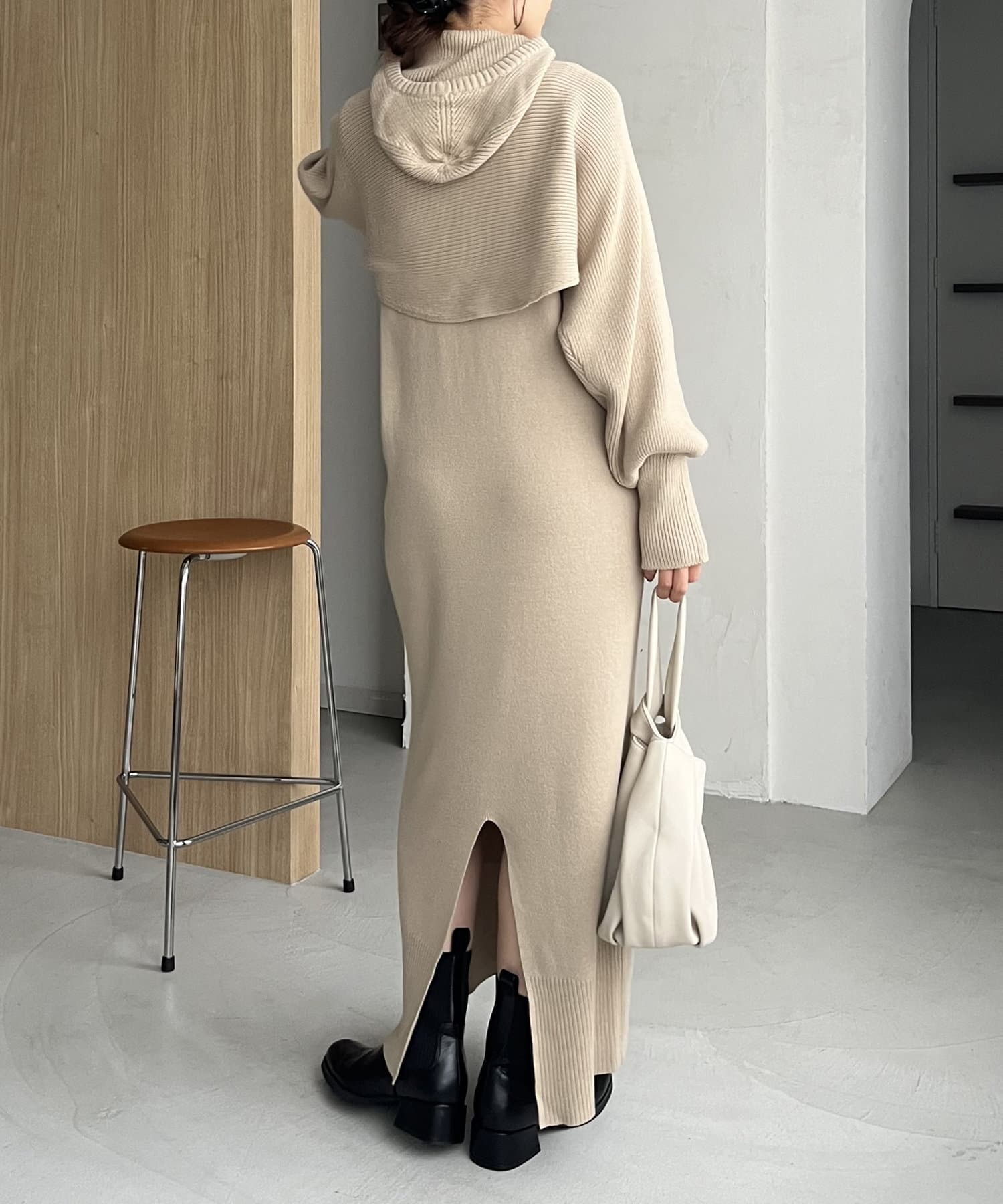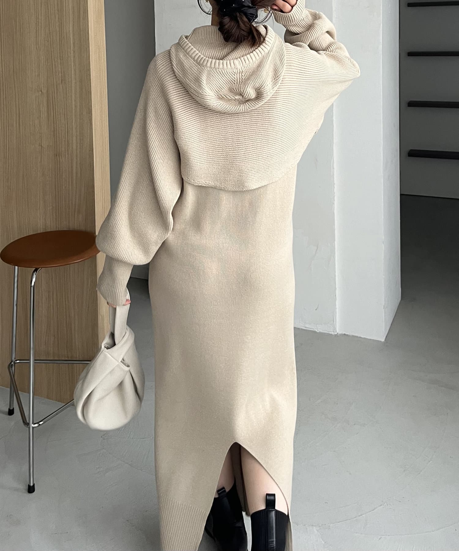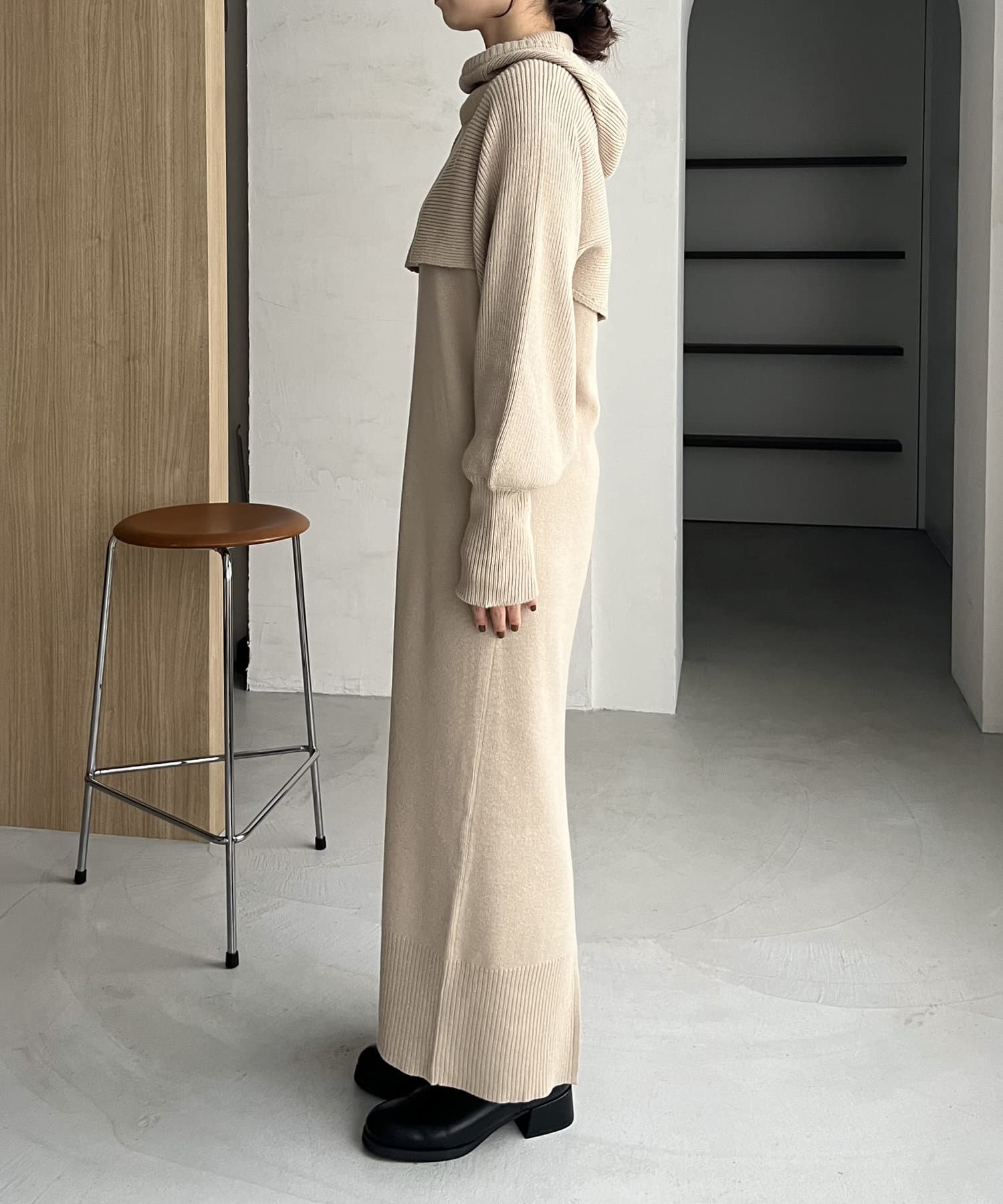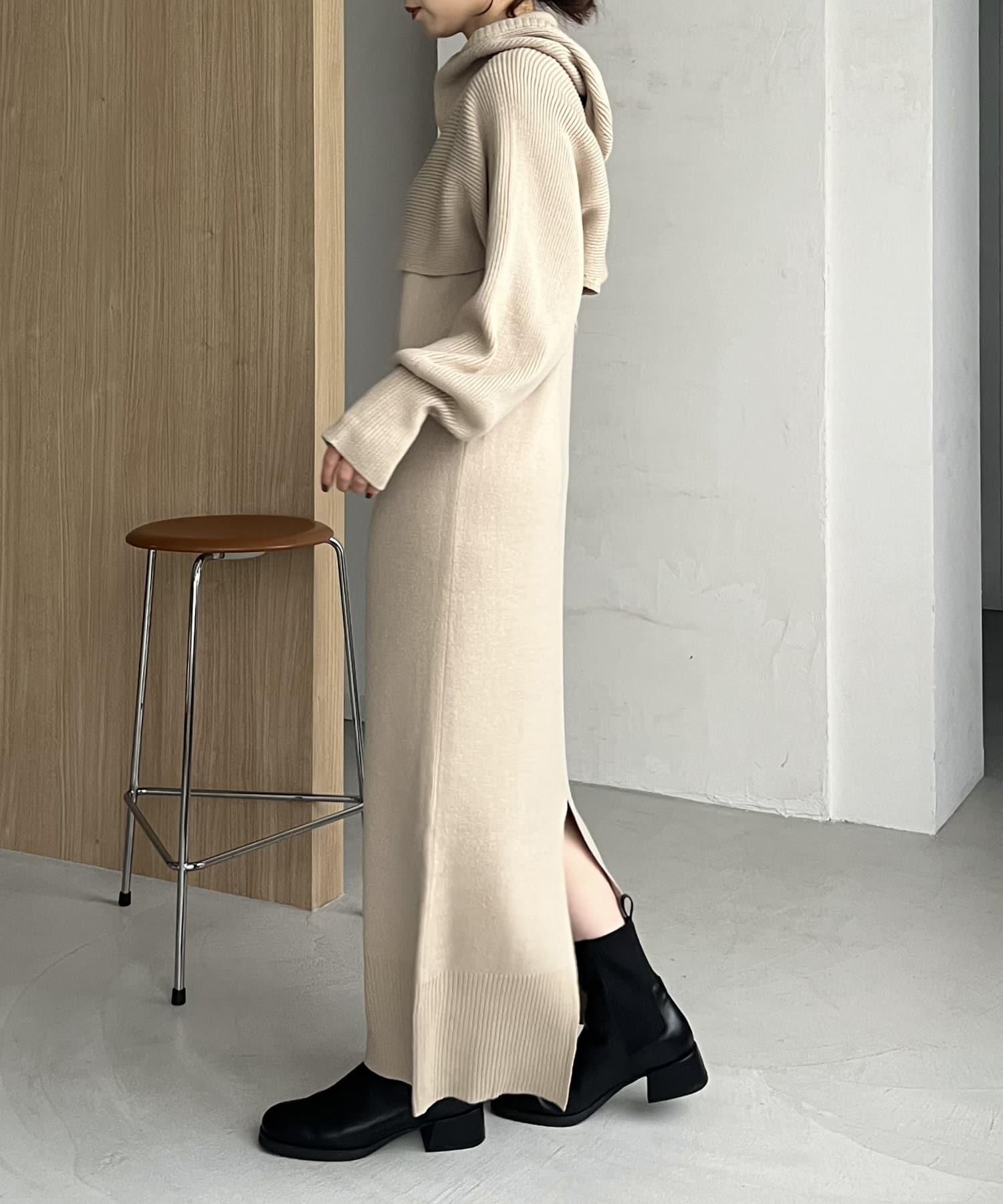 ・ニットのジャンスカワンピースとクロップ丈のフーディがセットになったアイテム