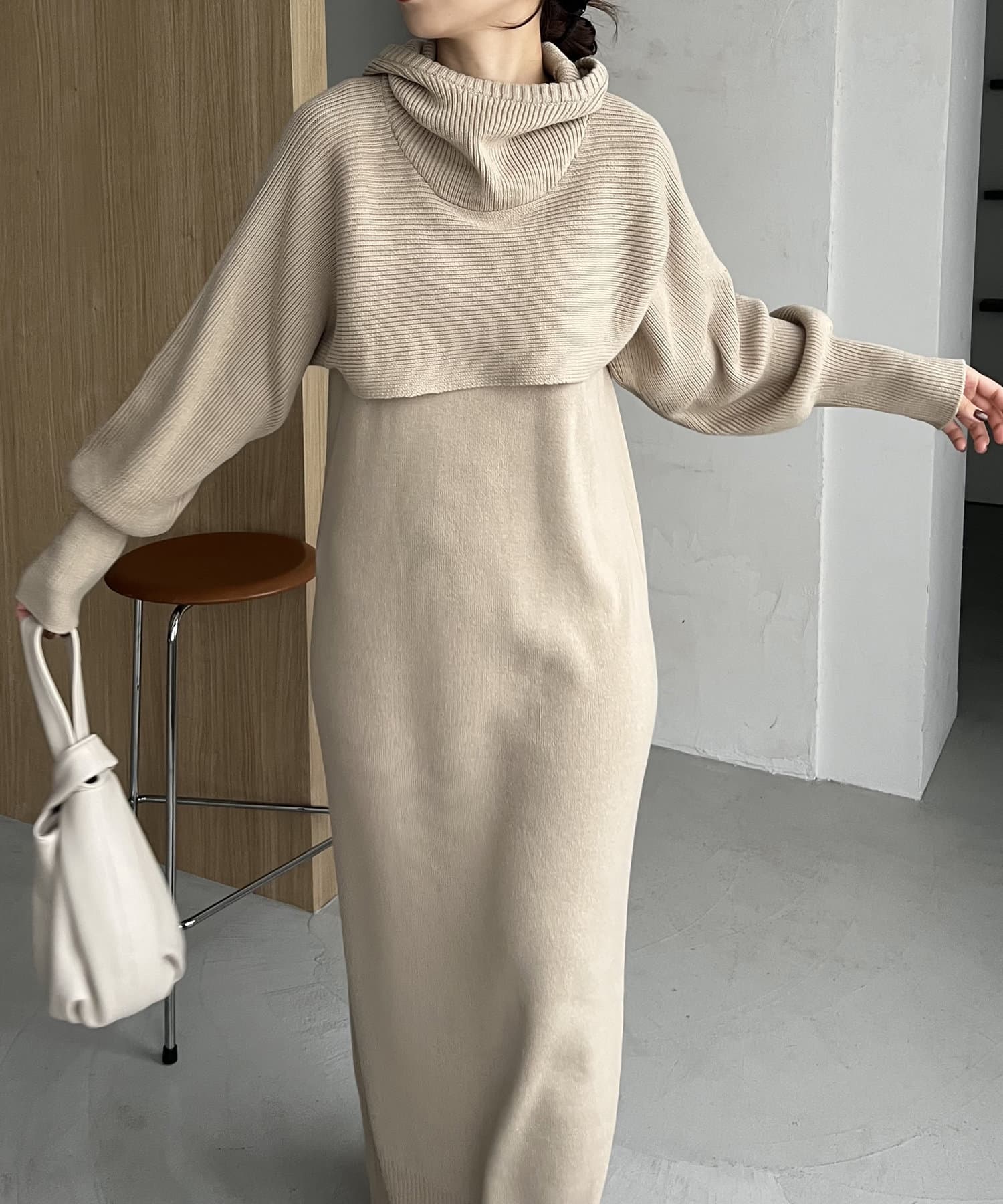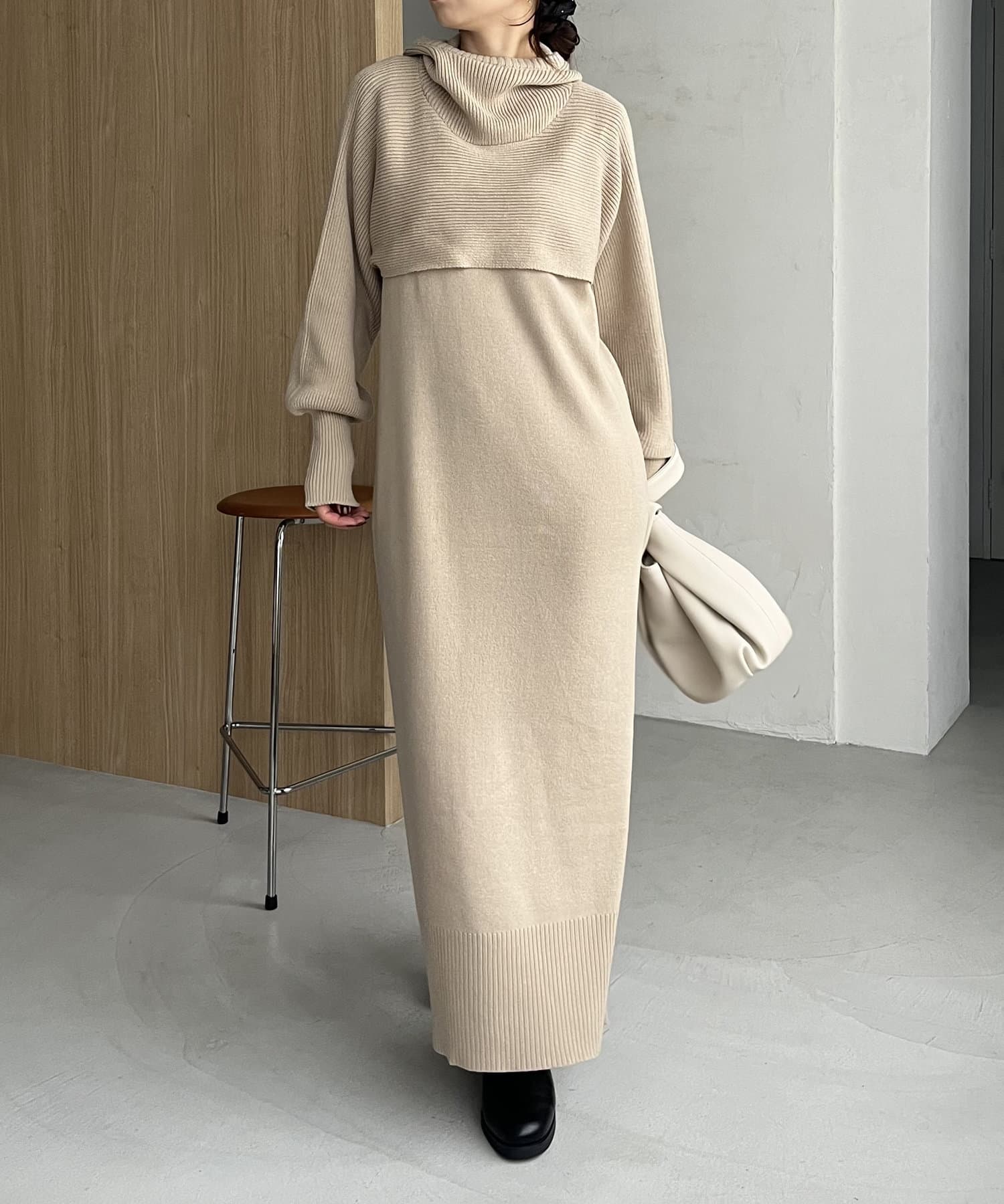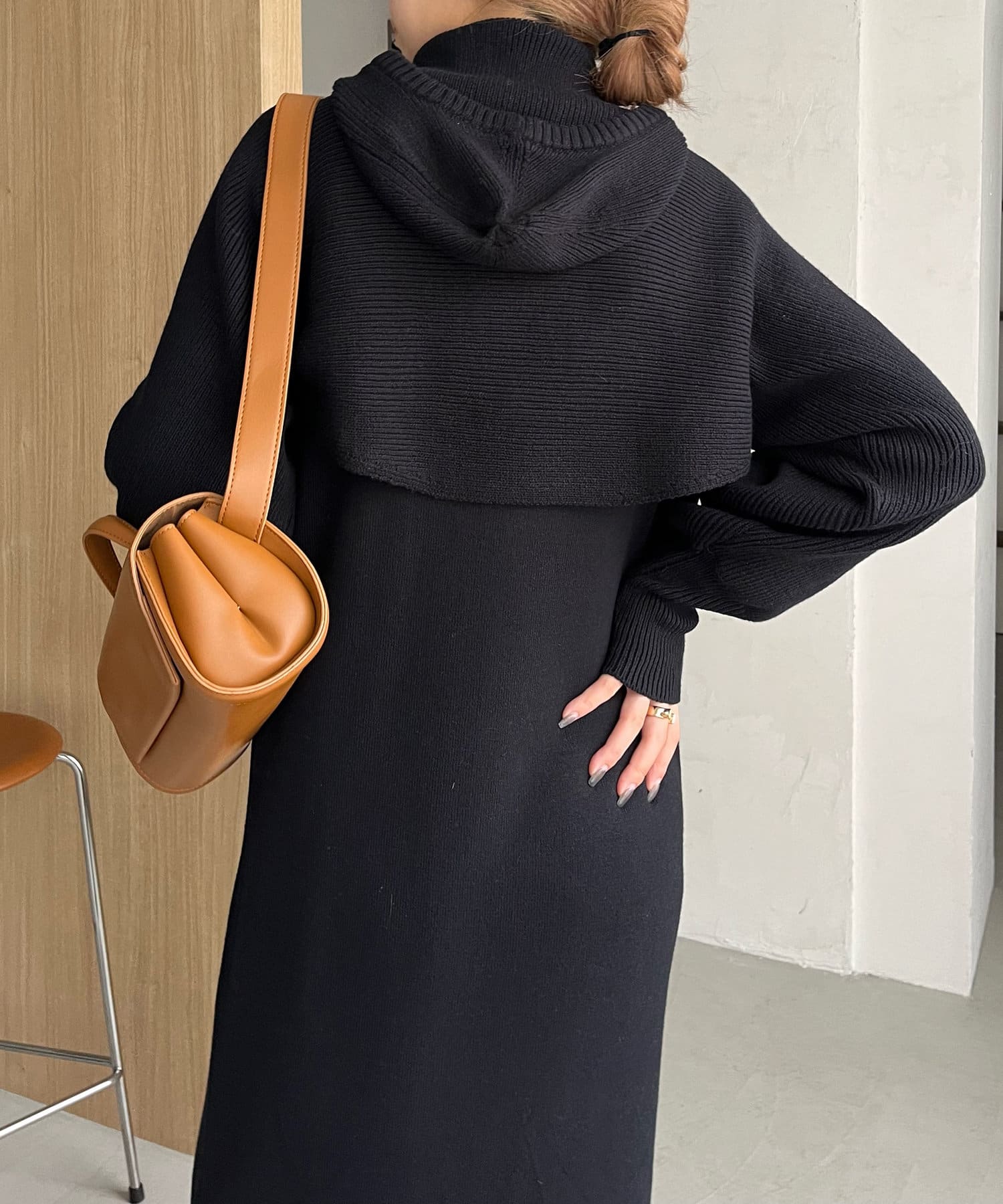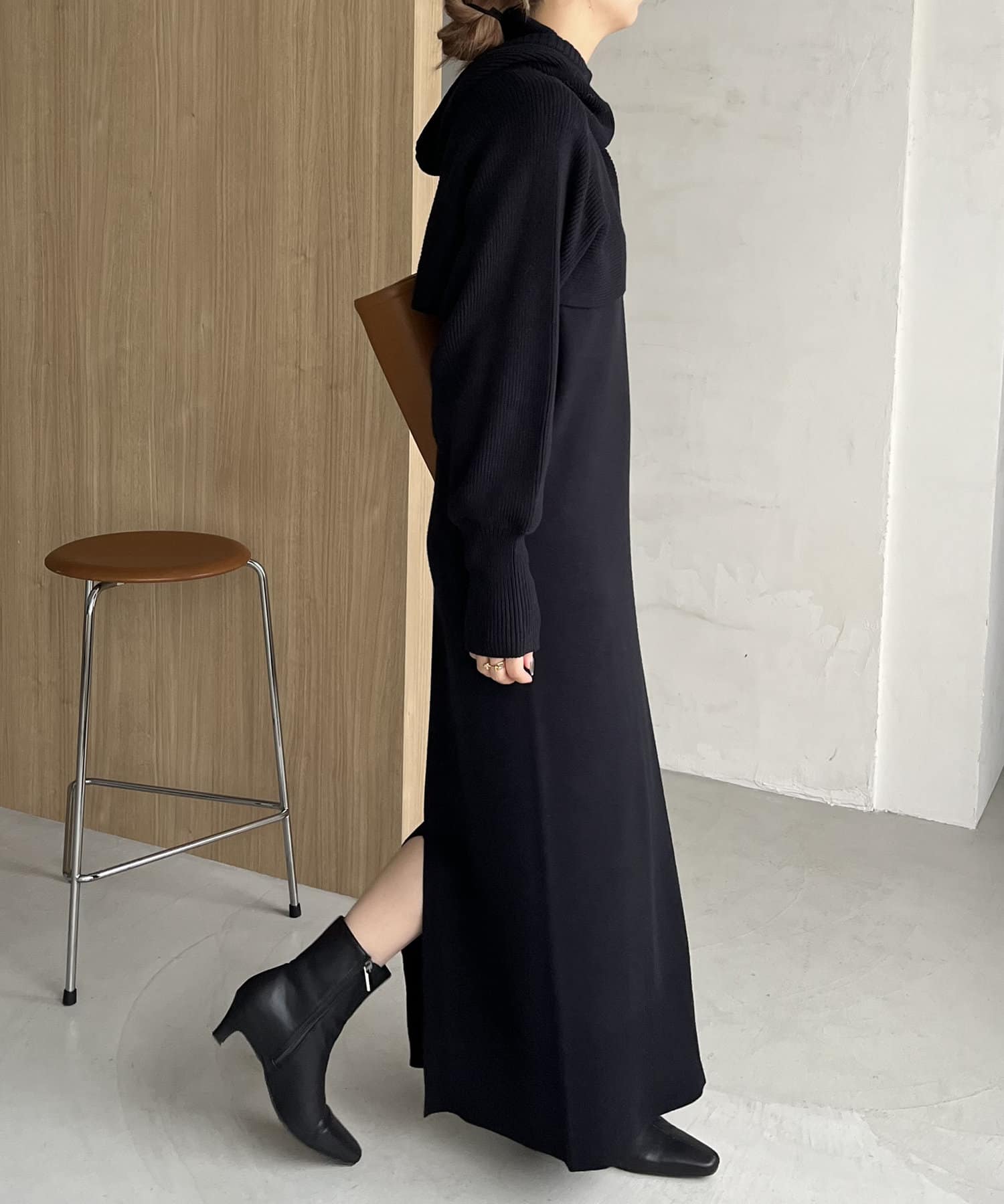 ・ニットのジャンスカワンピースとクロップ丈のフーディがセットになったアイテム