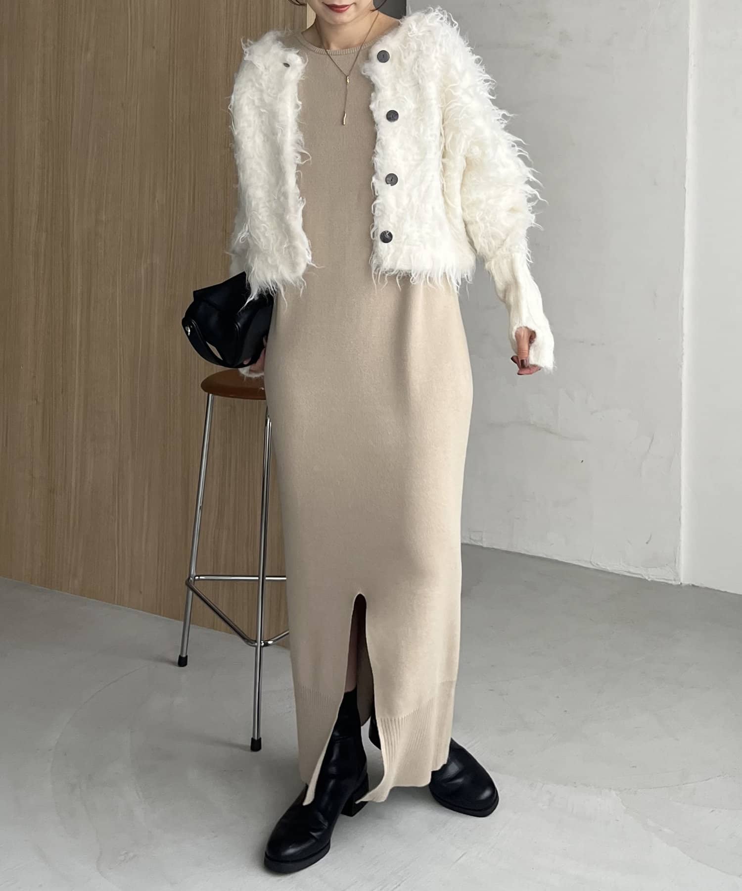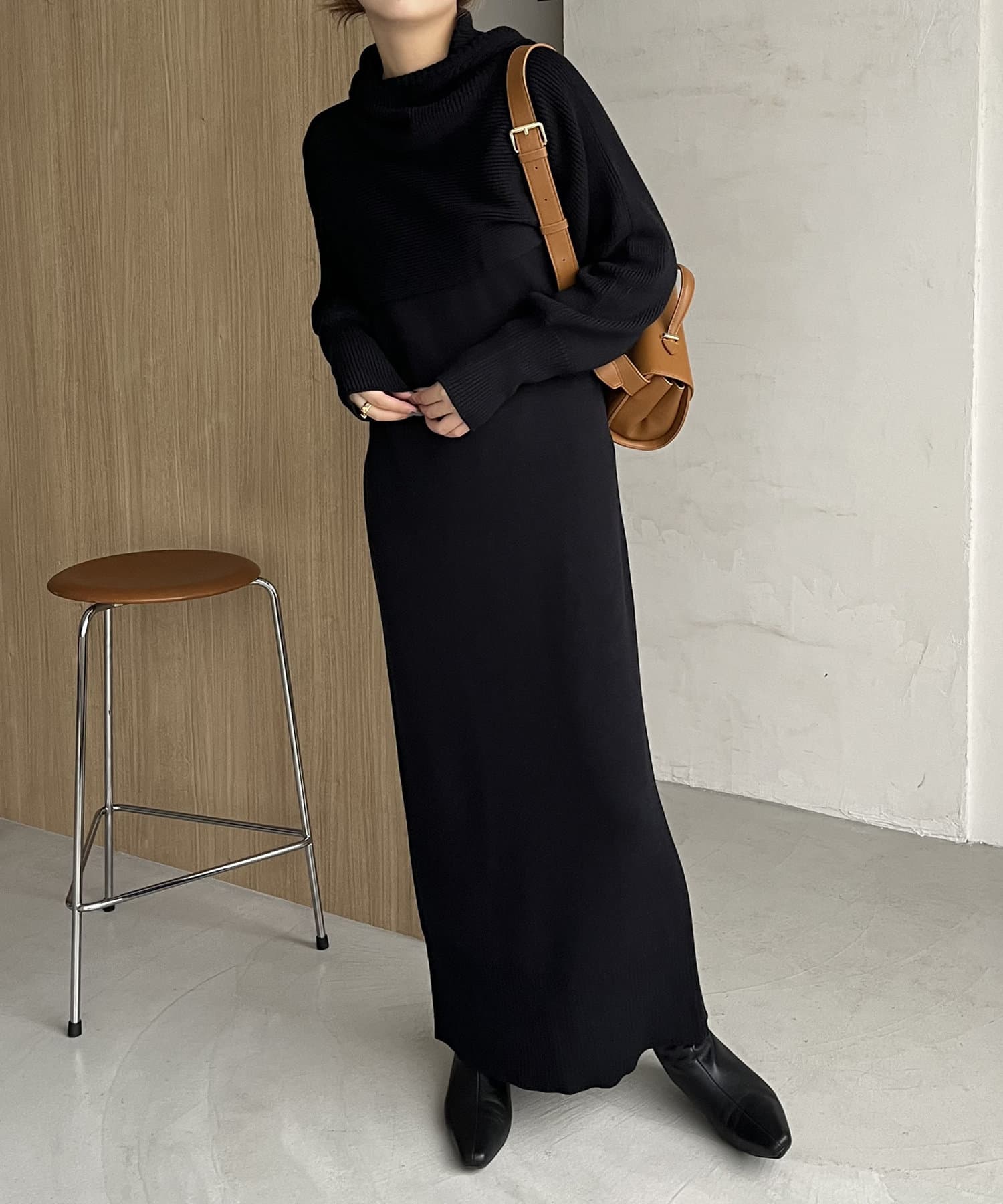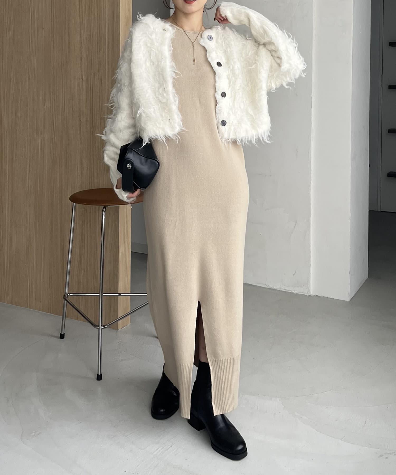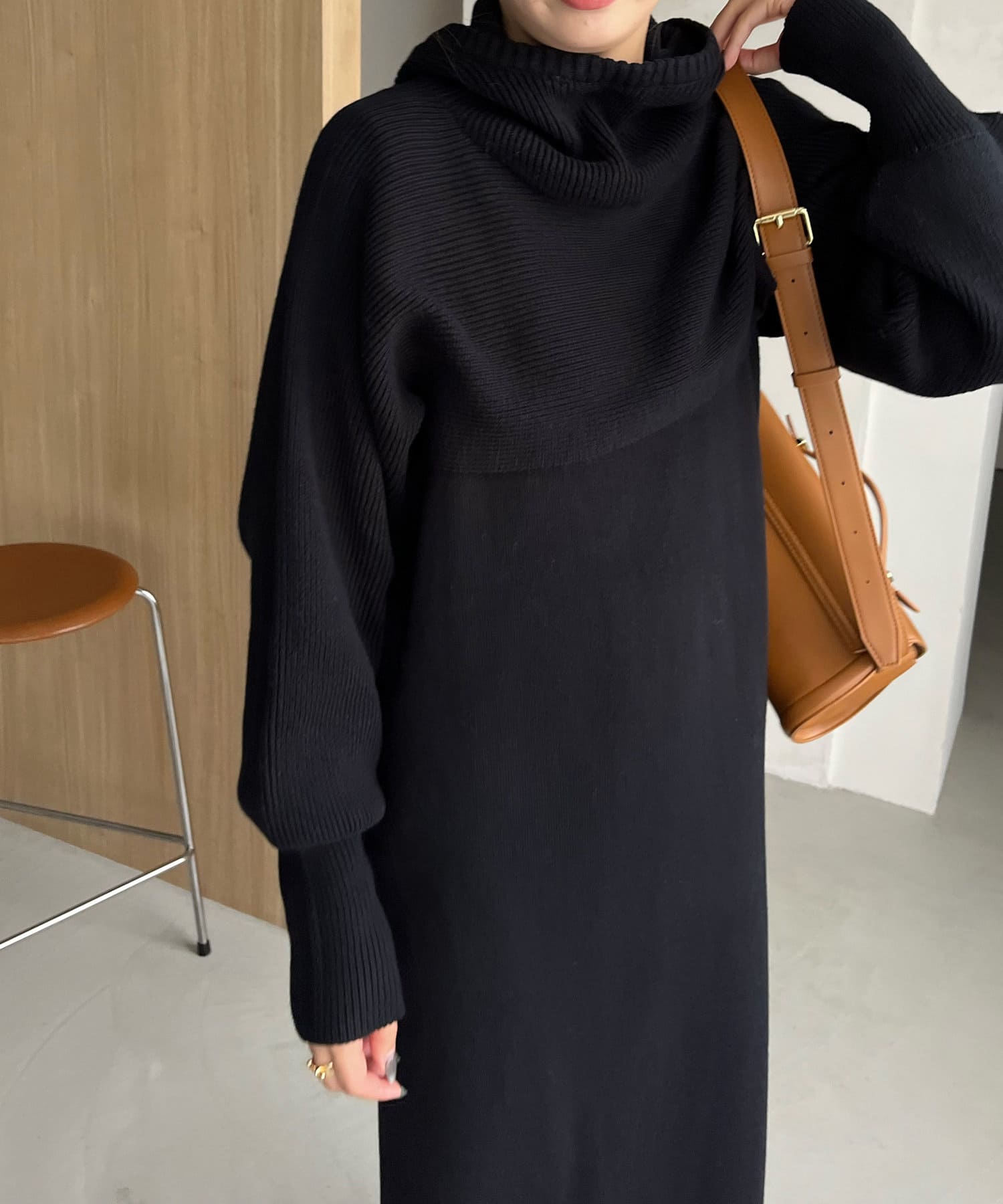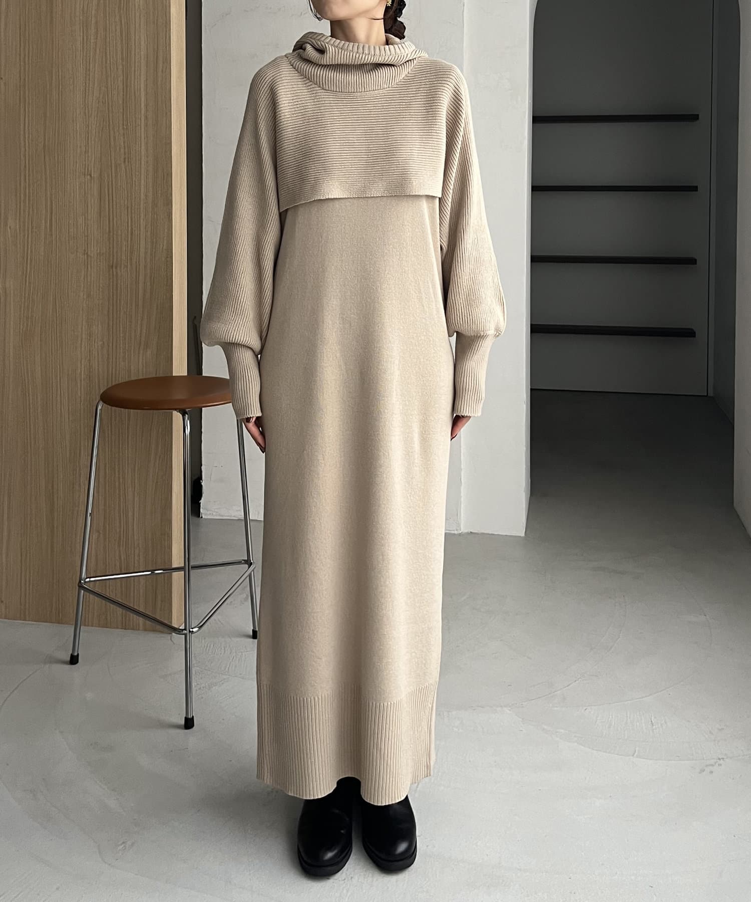 ・ニットのジャンスカワンピースとクロップ丈のフーディがセットになったアイテム