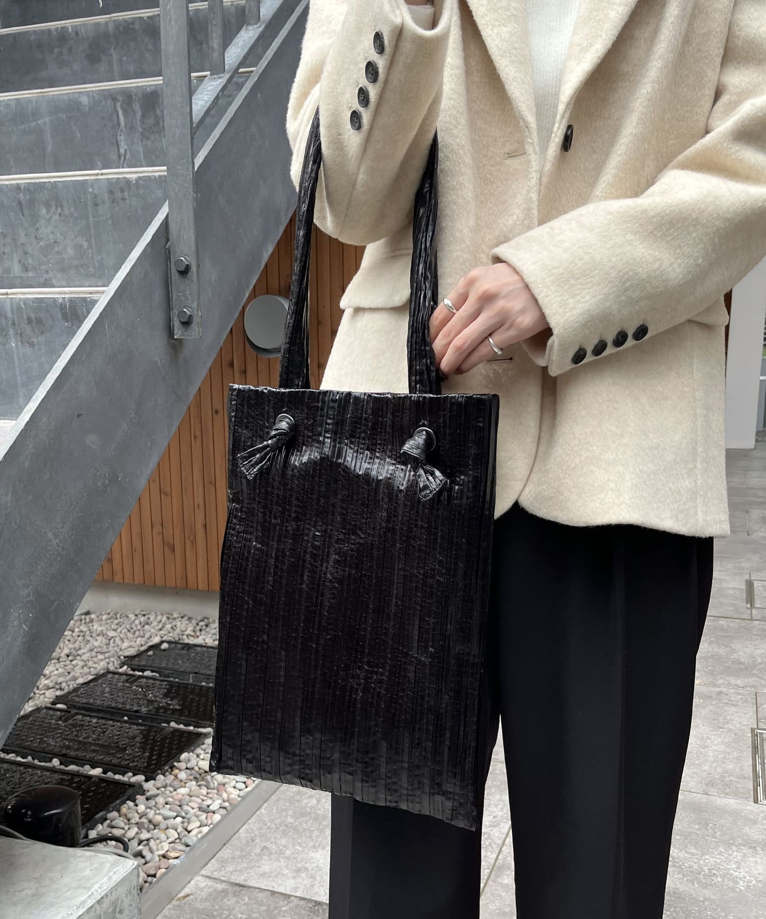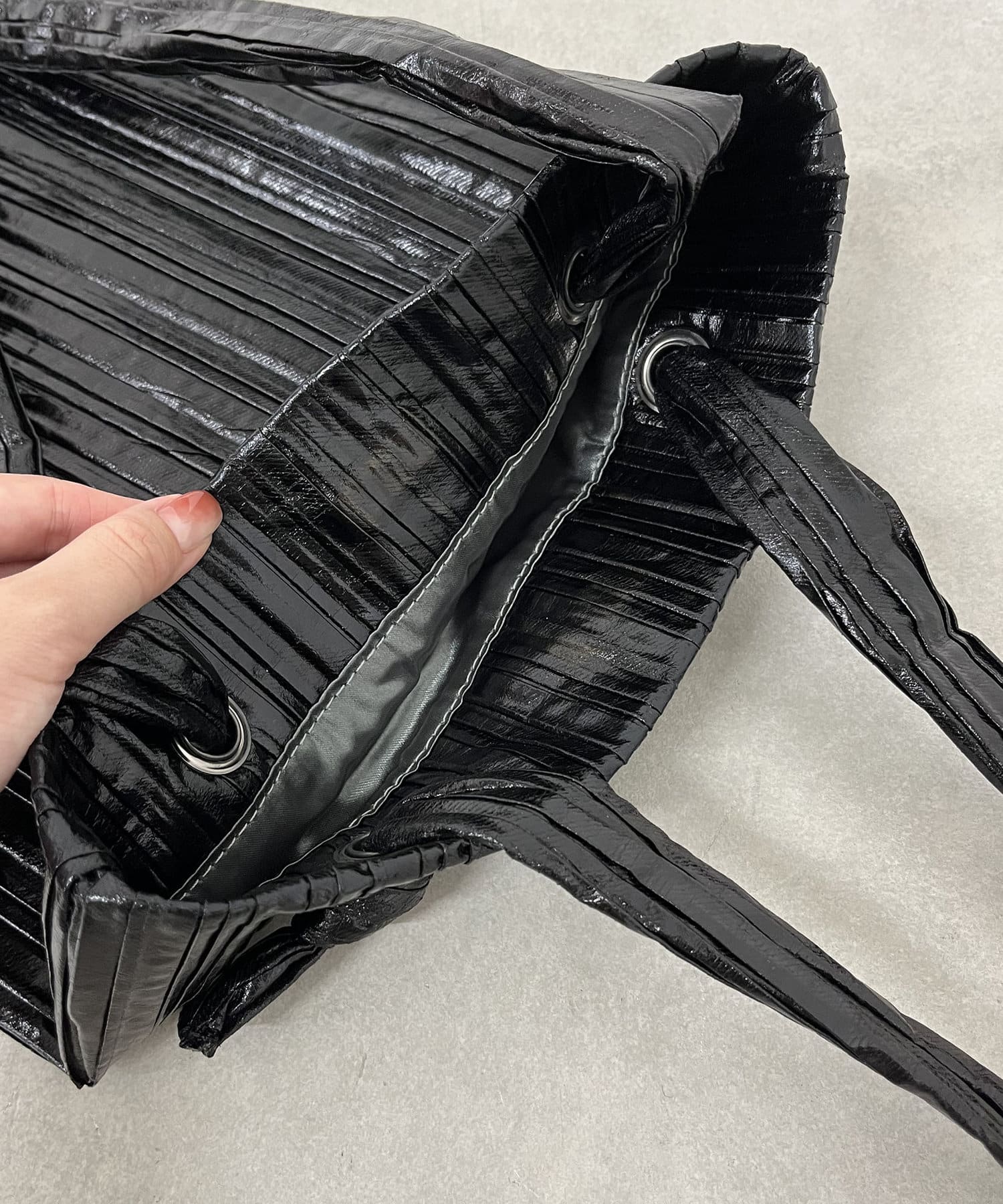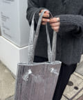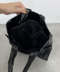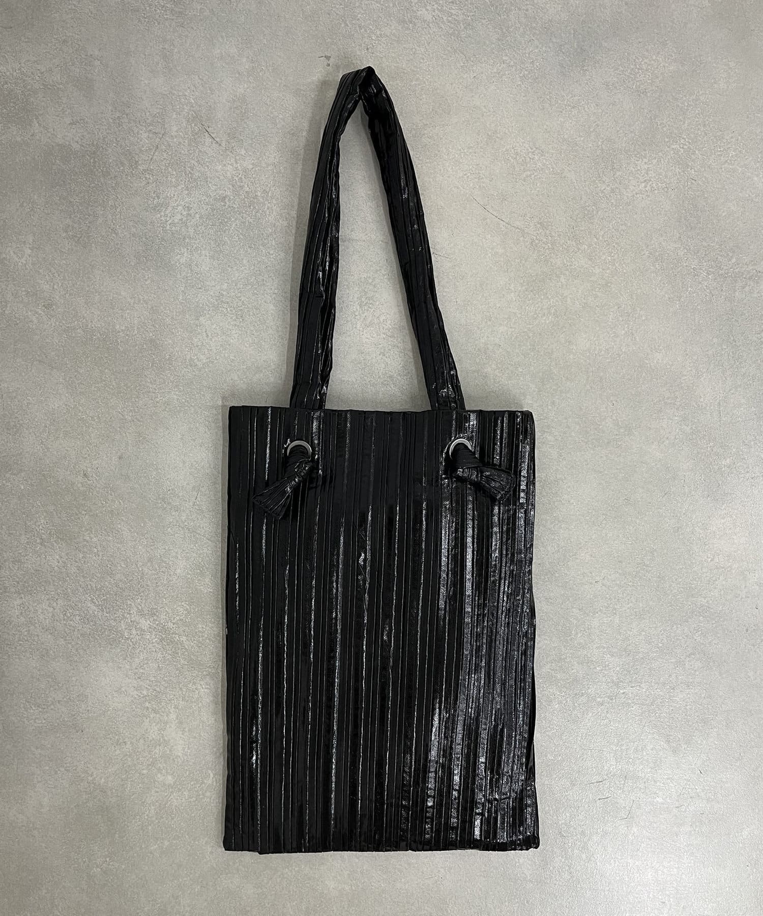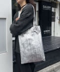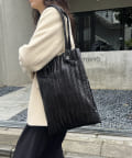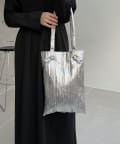 メタリック素材にプリーツ加工をかけたデコラティブなトートバッグ
