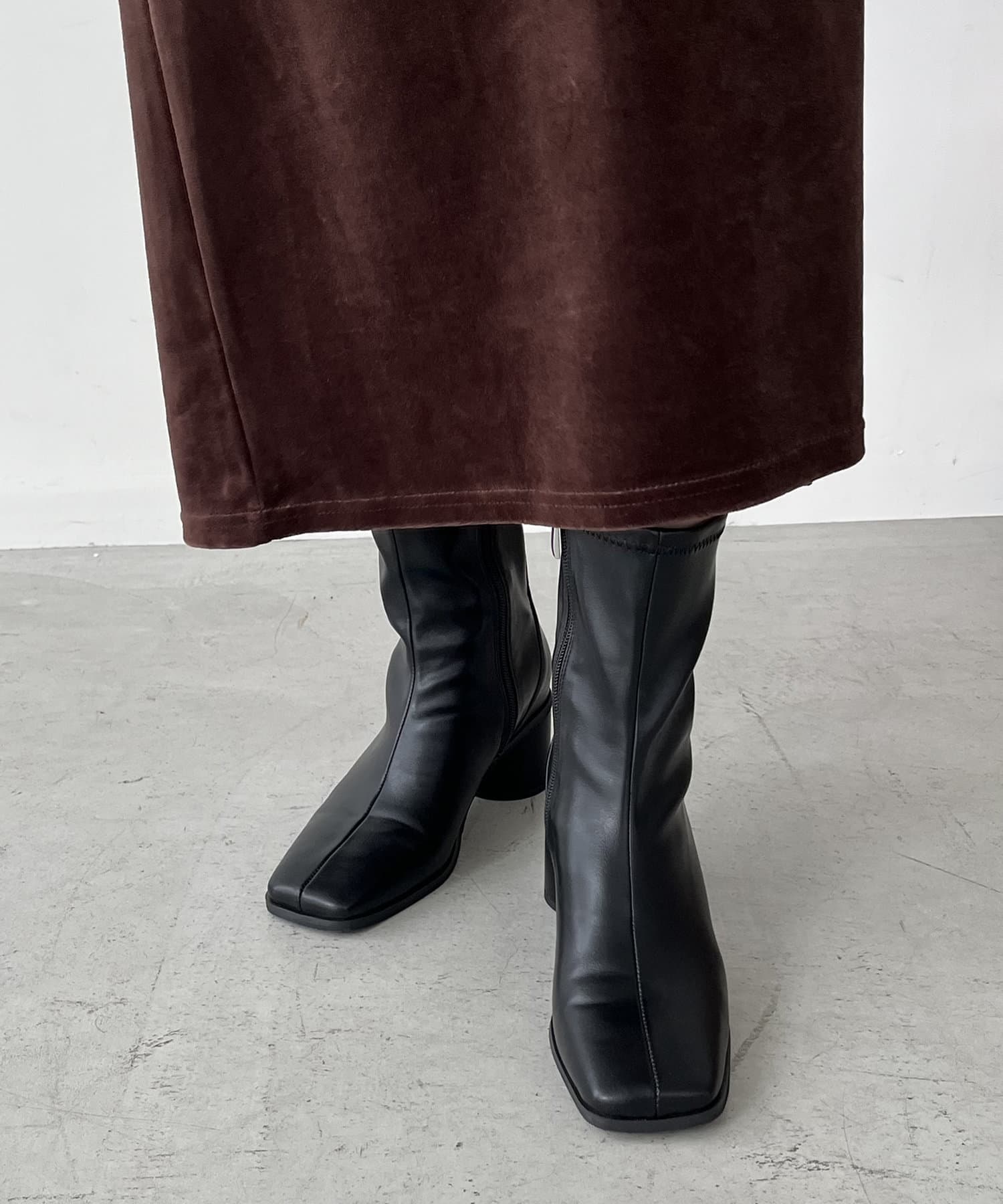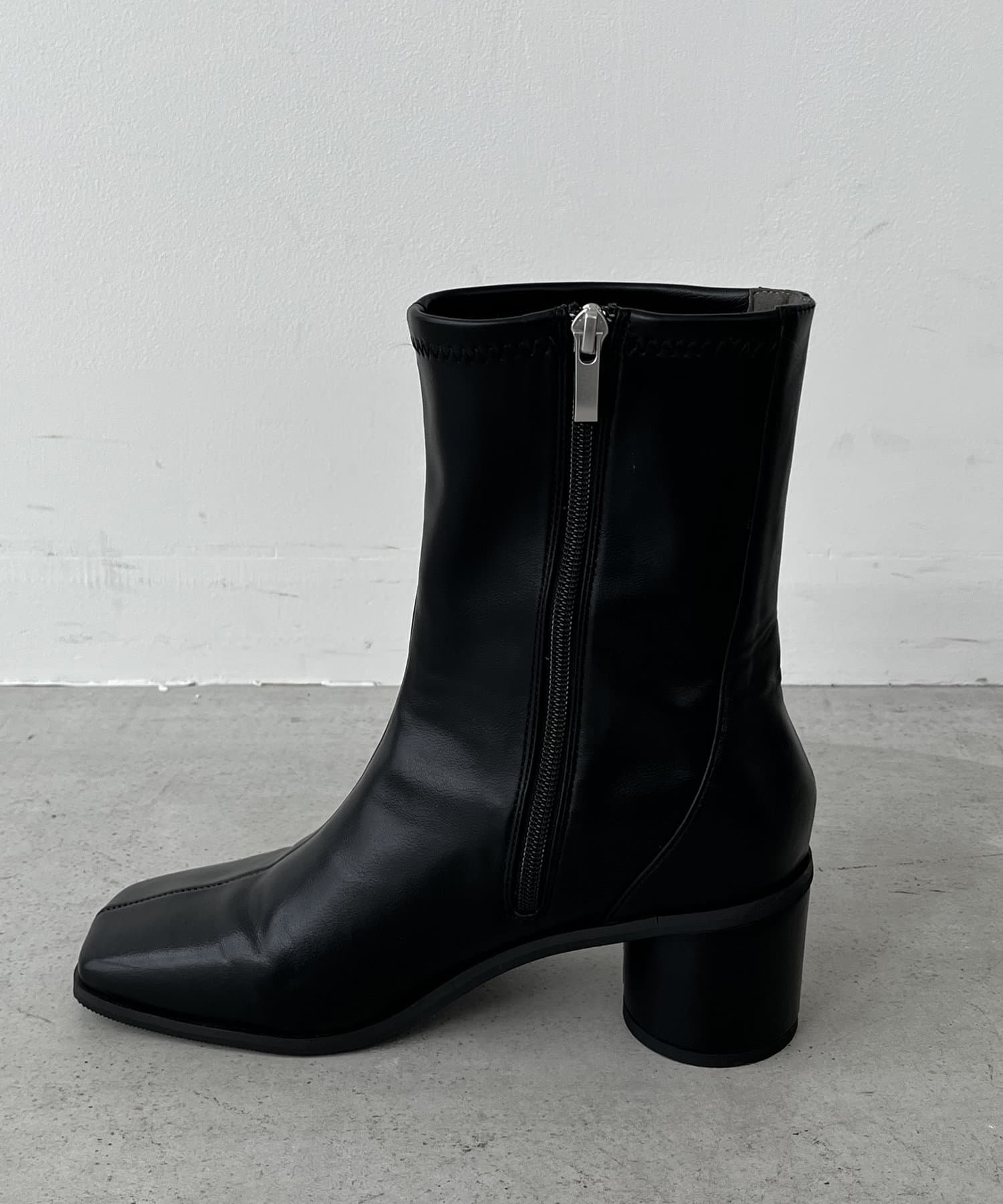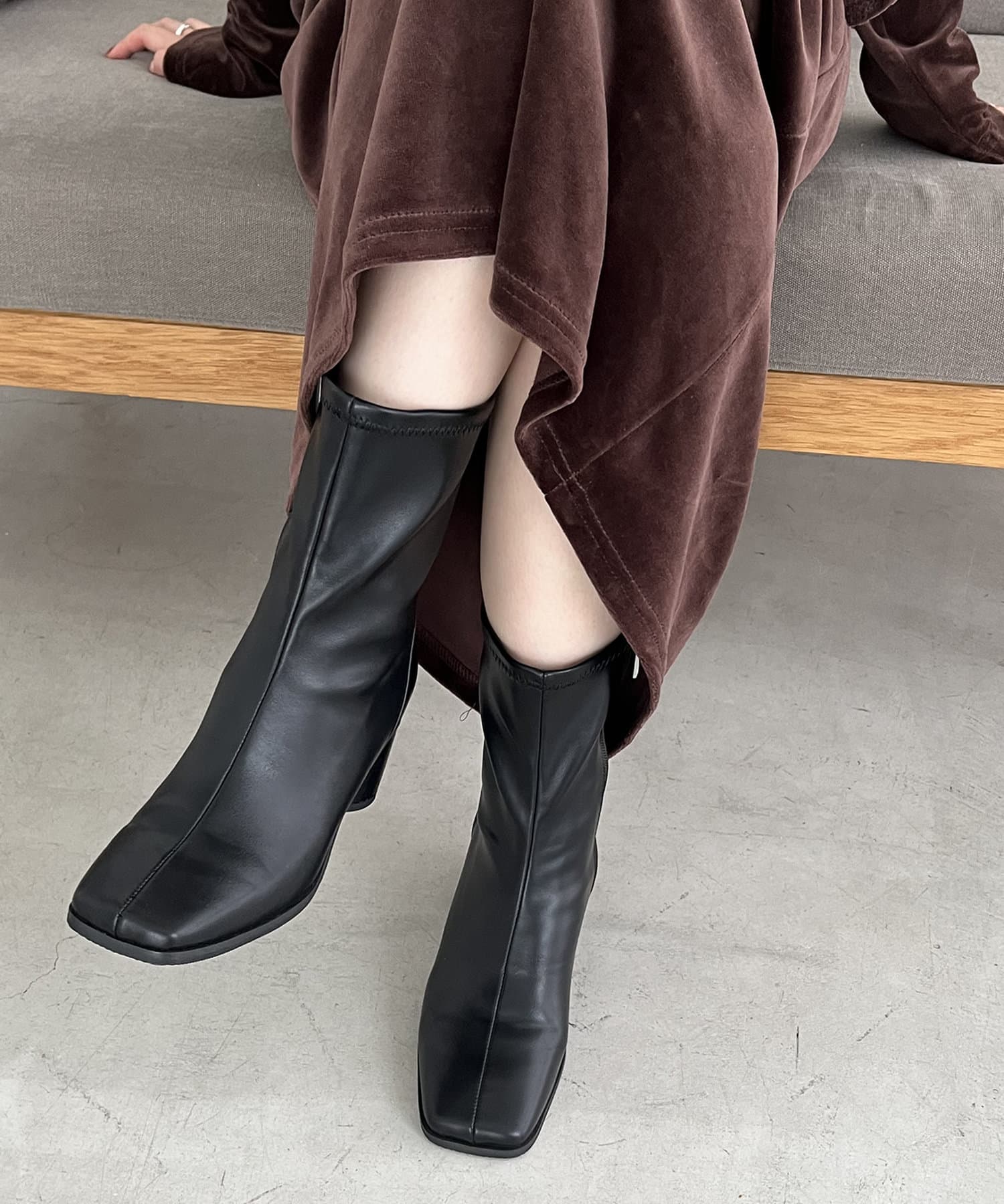 ・どんなスタイリングにも合わせやすい程よいスクエアシルエットのショートブーツ