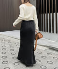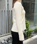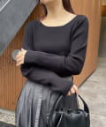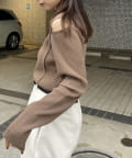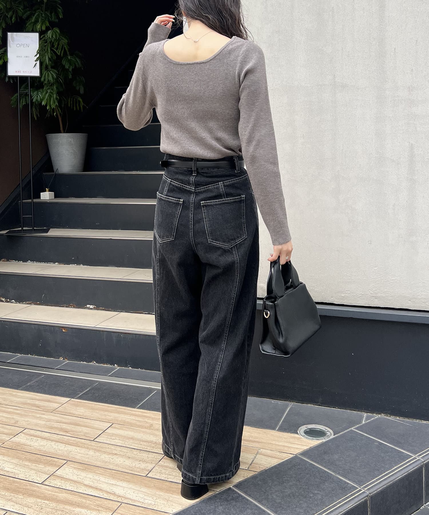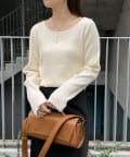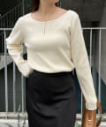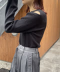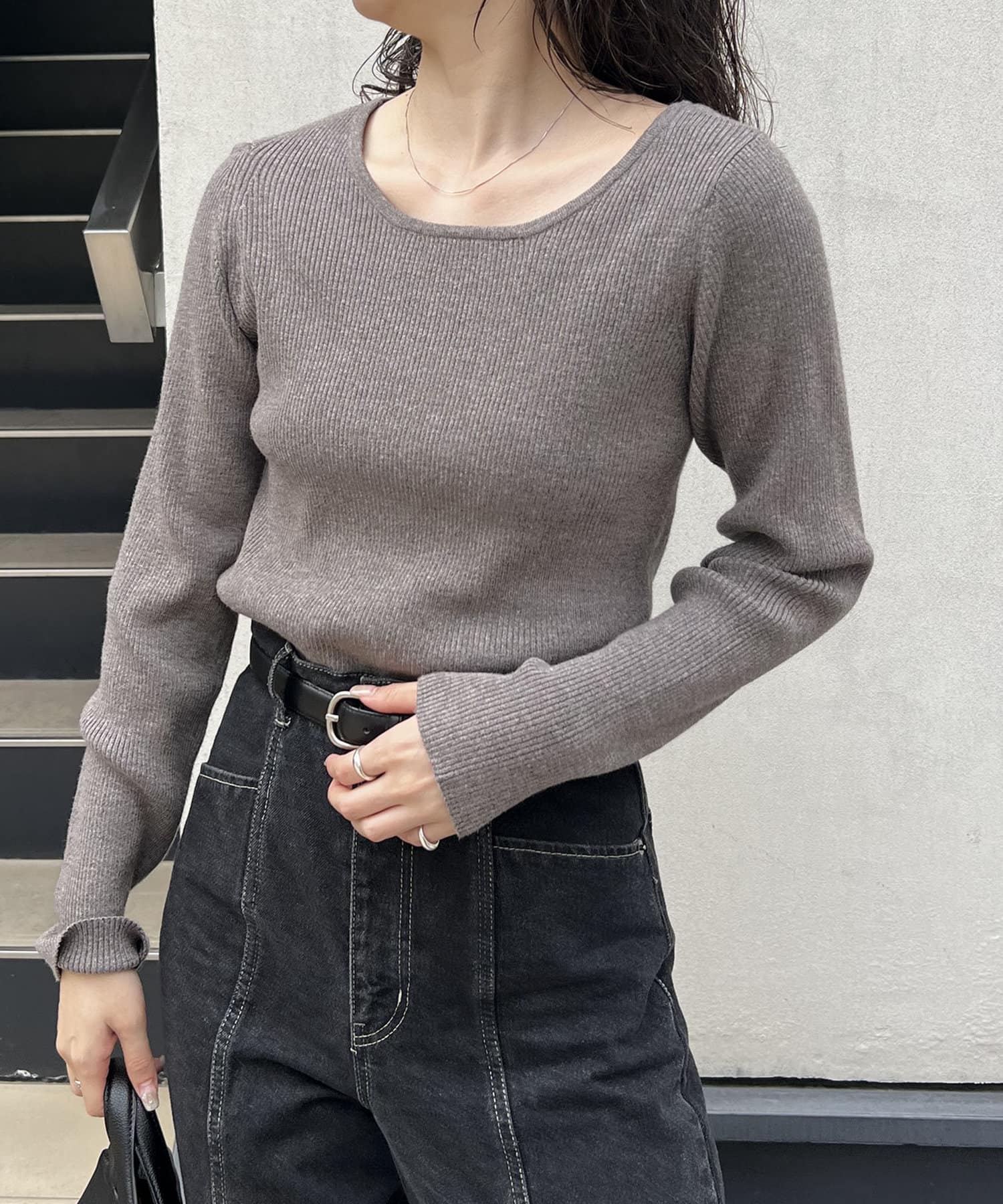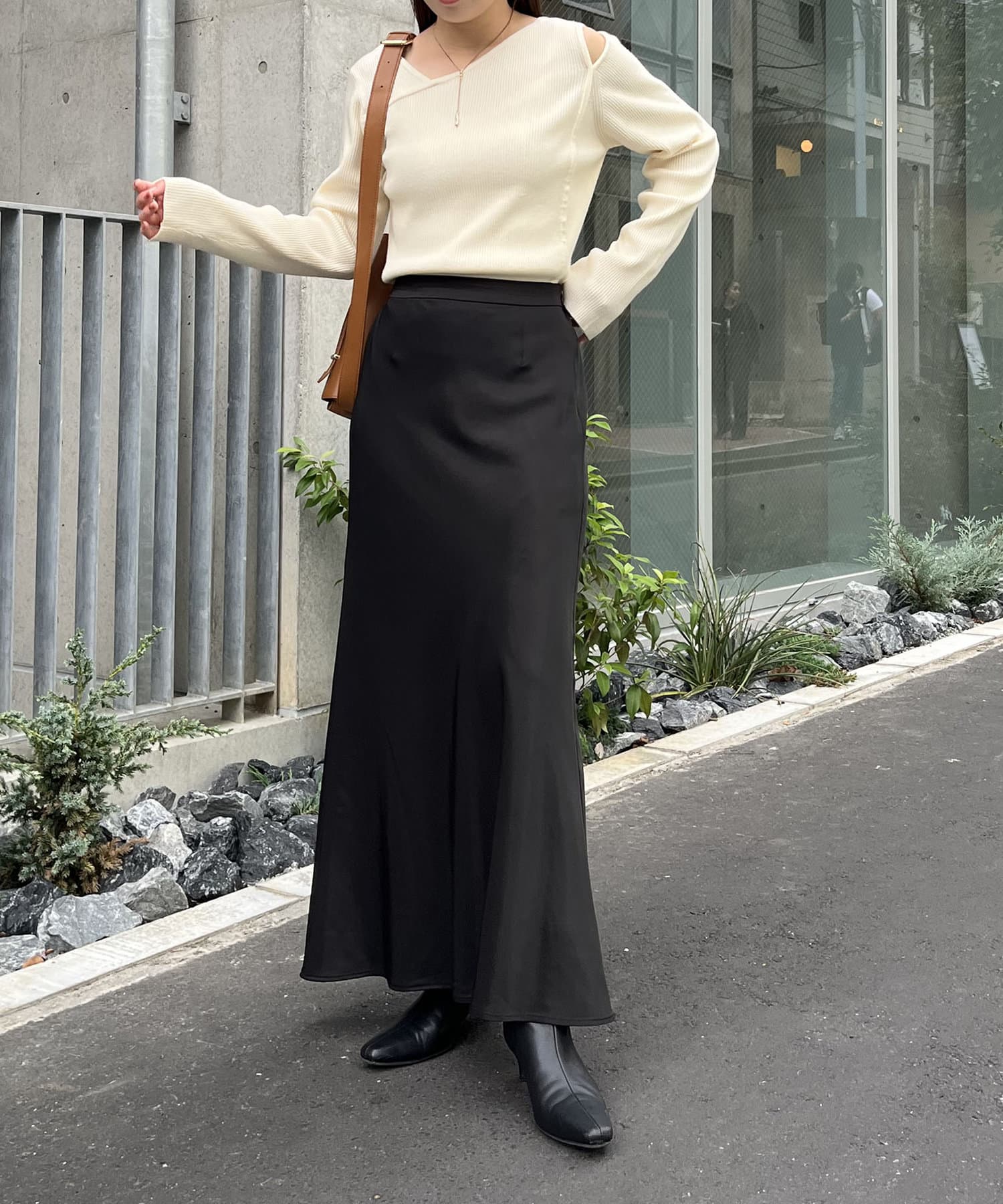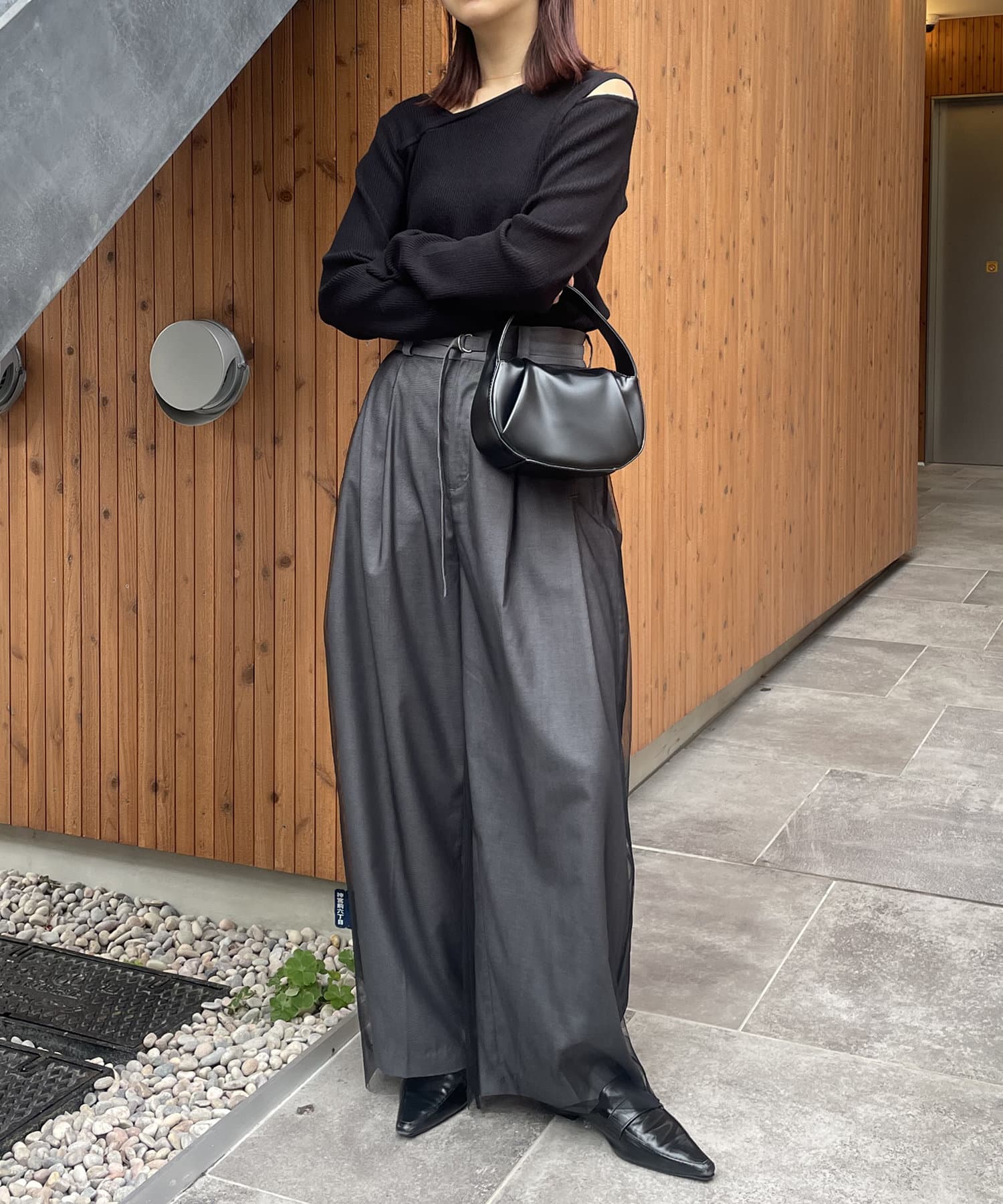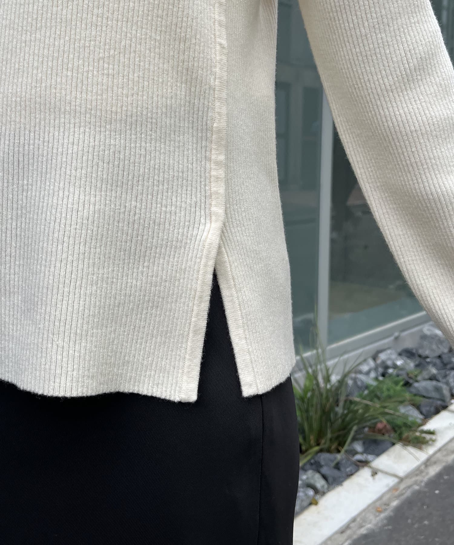 アシメVネックと肩開きのデザインが他にないデザインリブニット
