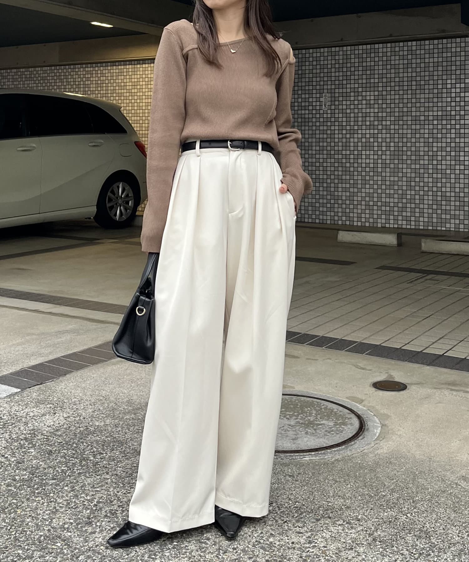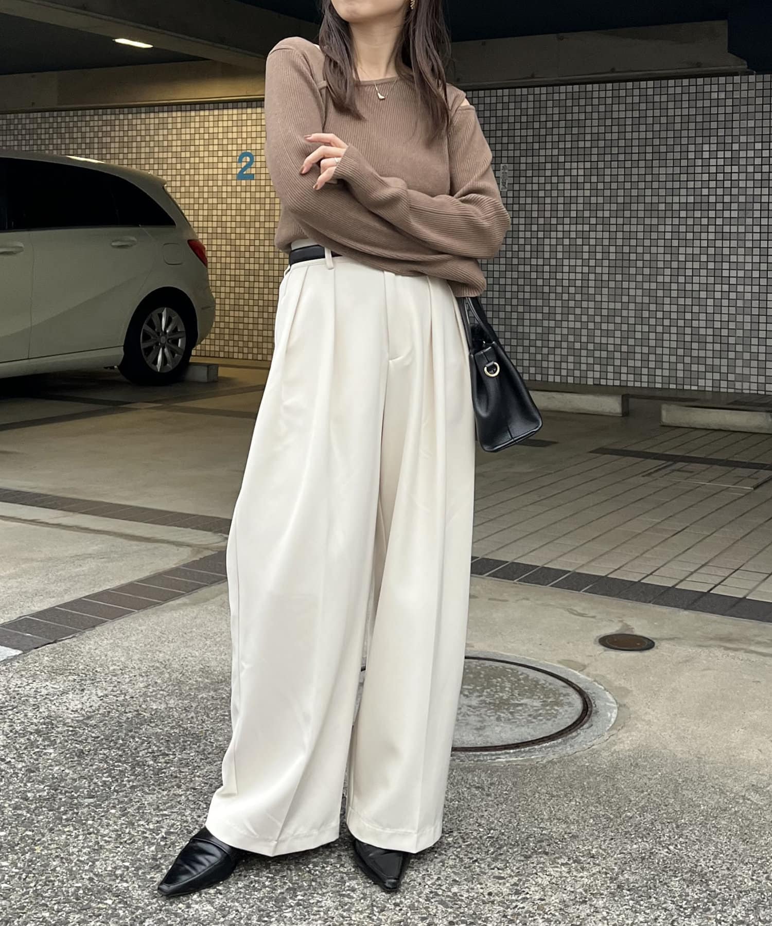 ・ワイドパンツやフレアスカートなど、ボリュームのあるボトムに合わせて今年らしく◎
