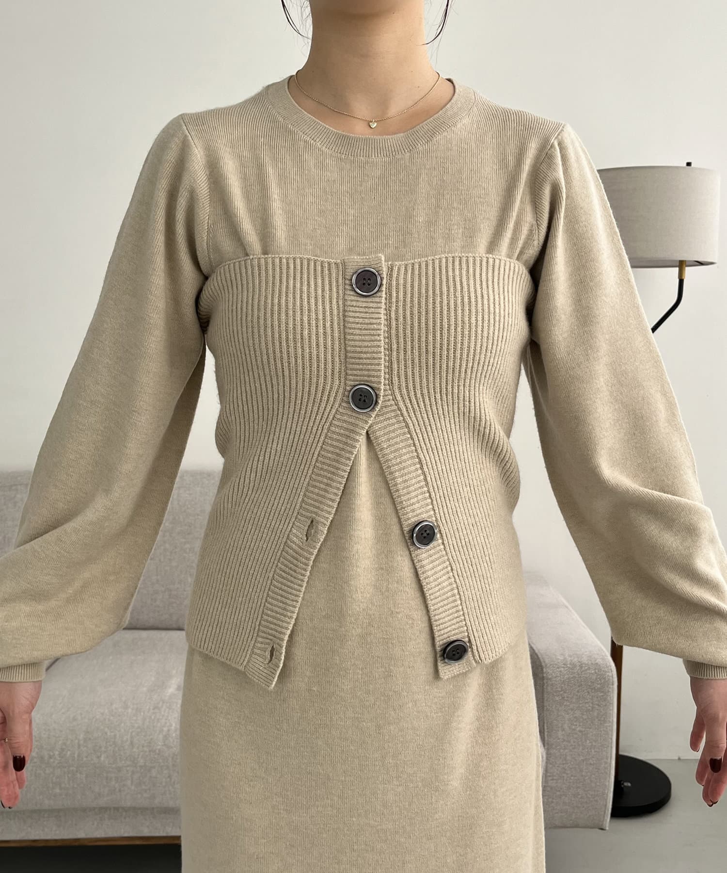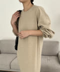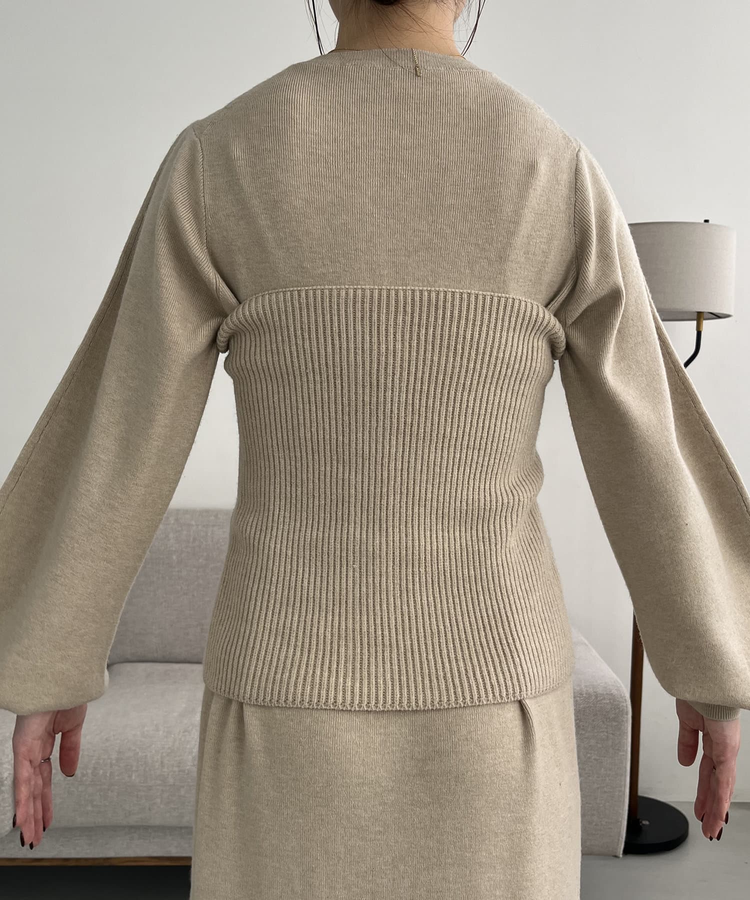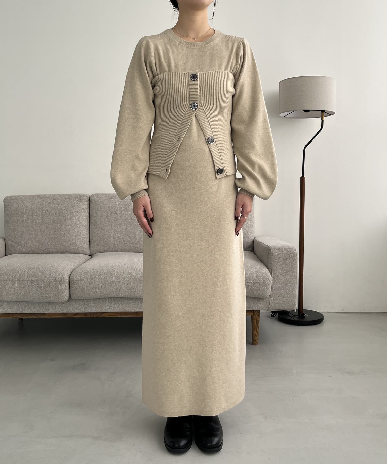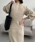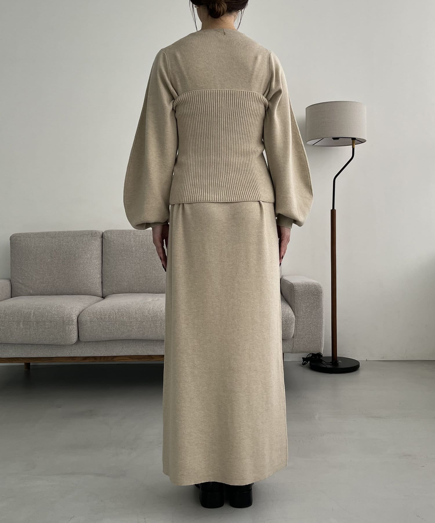 ・パフスリーブのニットワンピースにべアビスチェがセットになったワンピース
