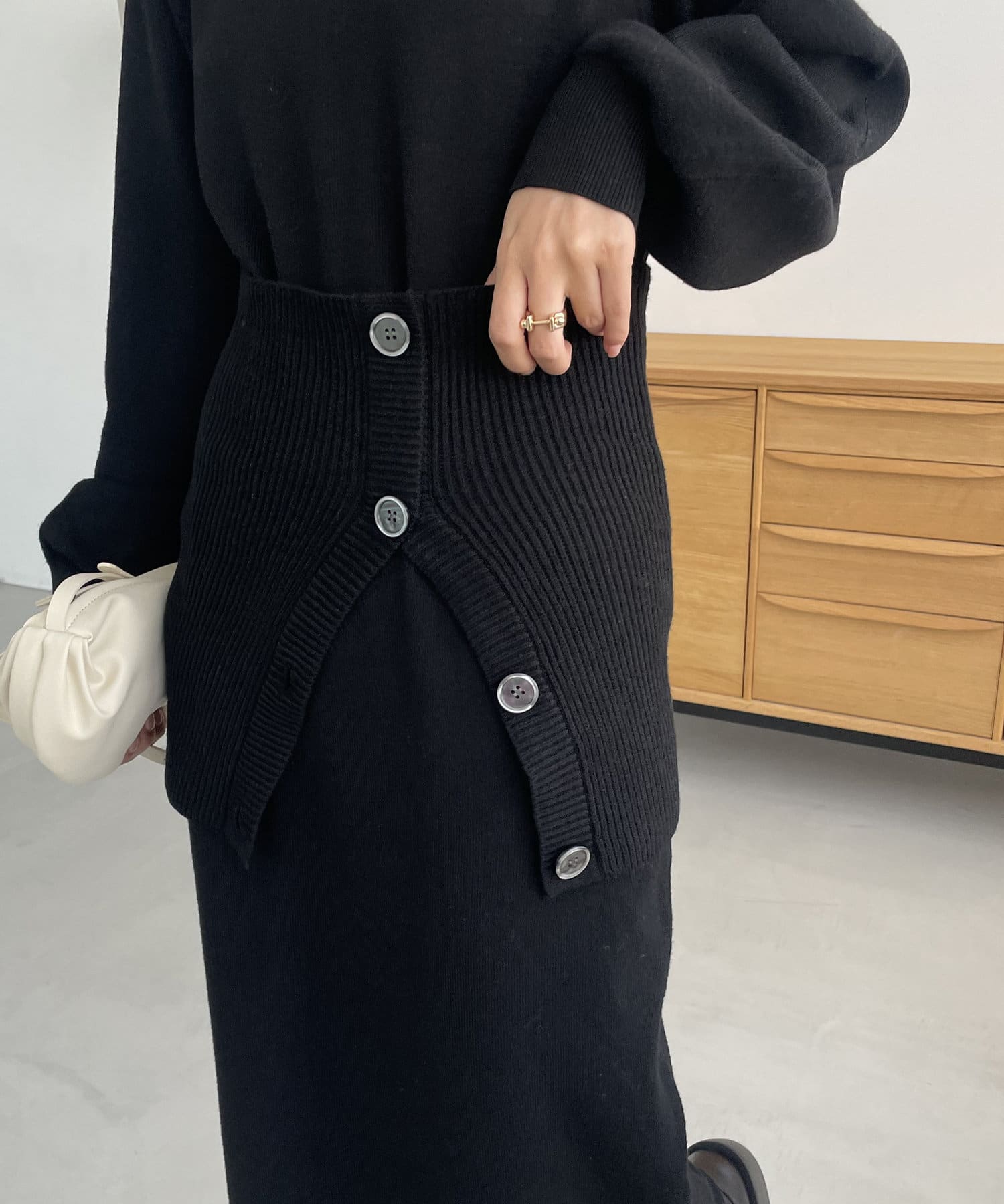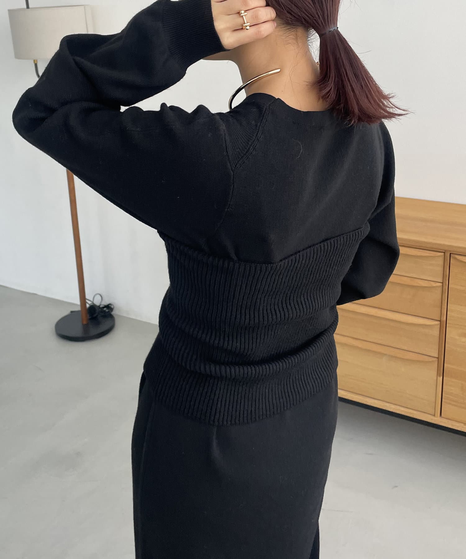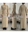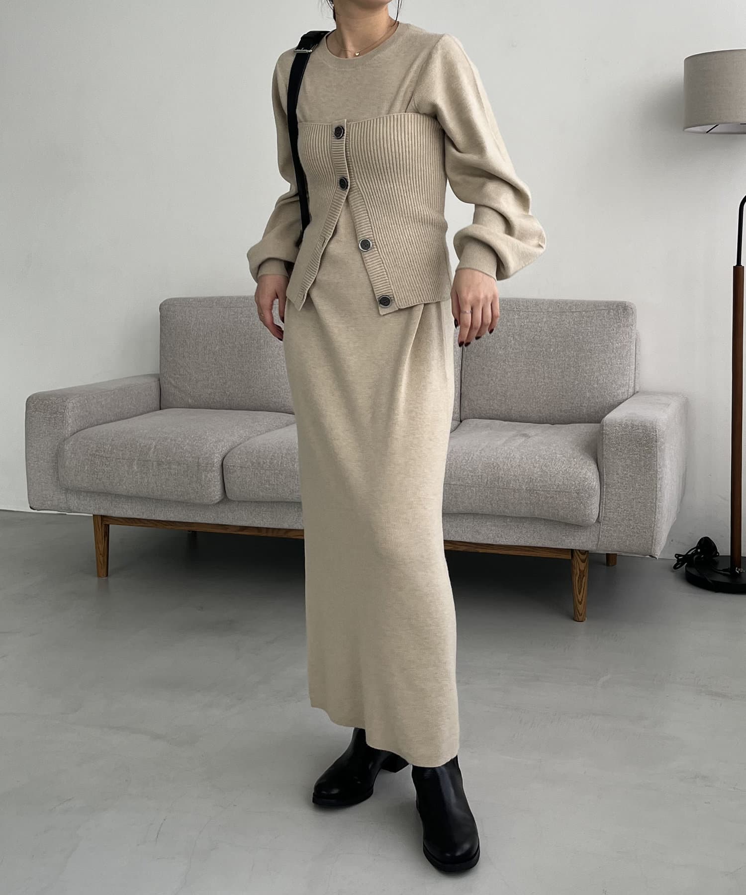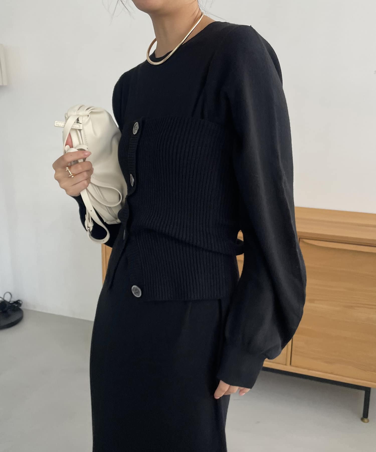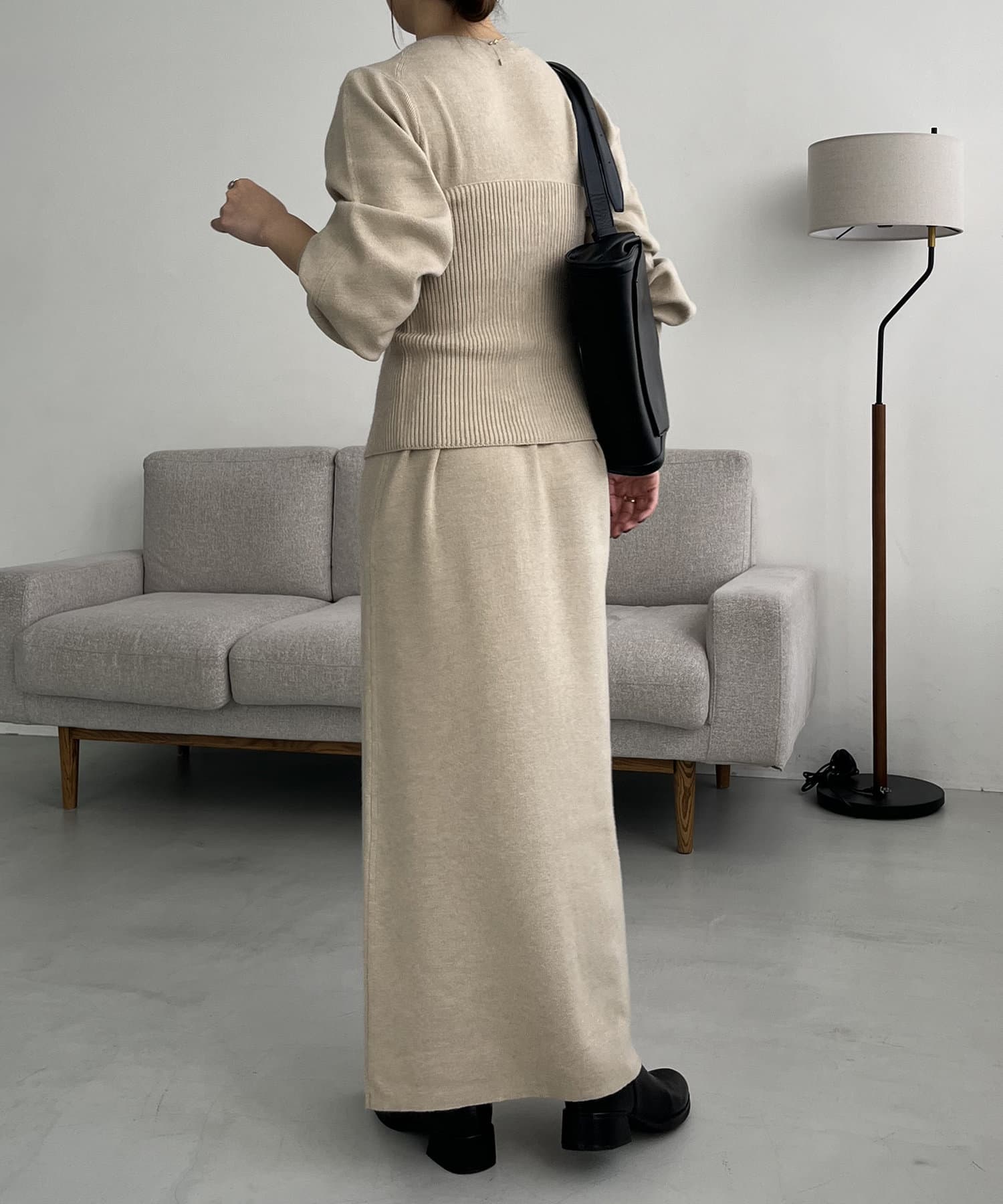 ・パフスリーブのニットワンピースにべアビスチェがセットになったワンピース