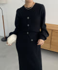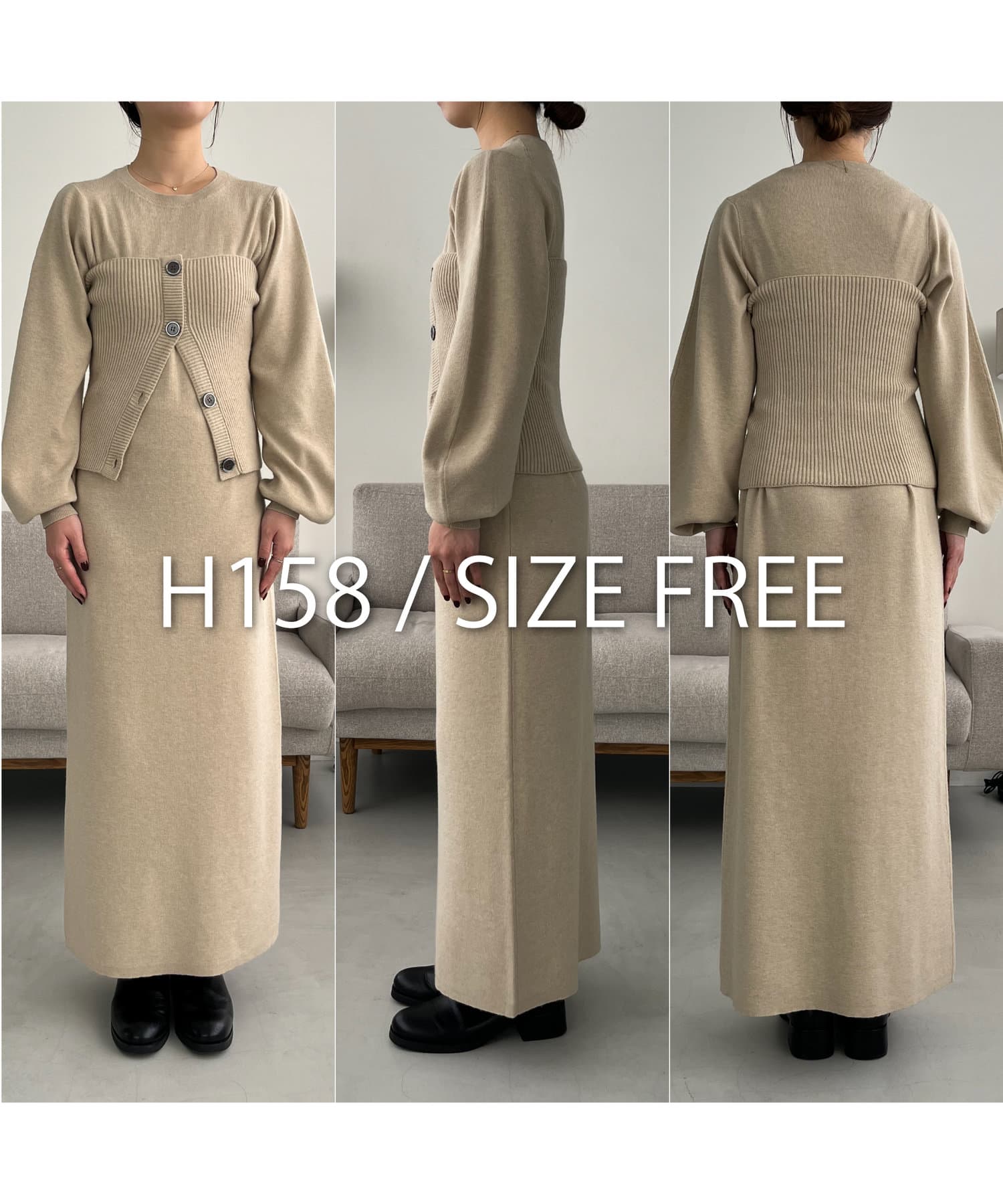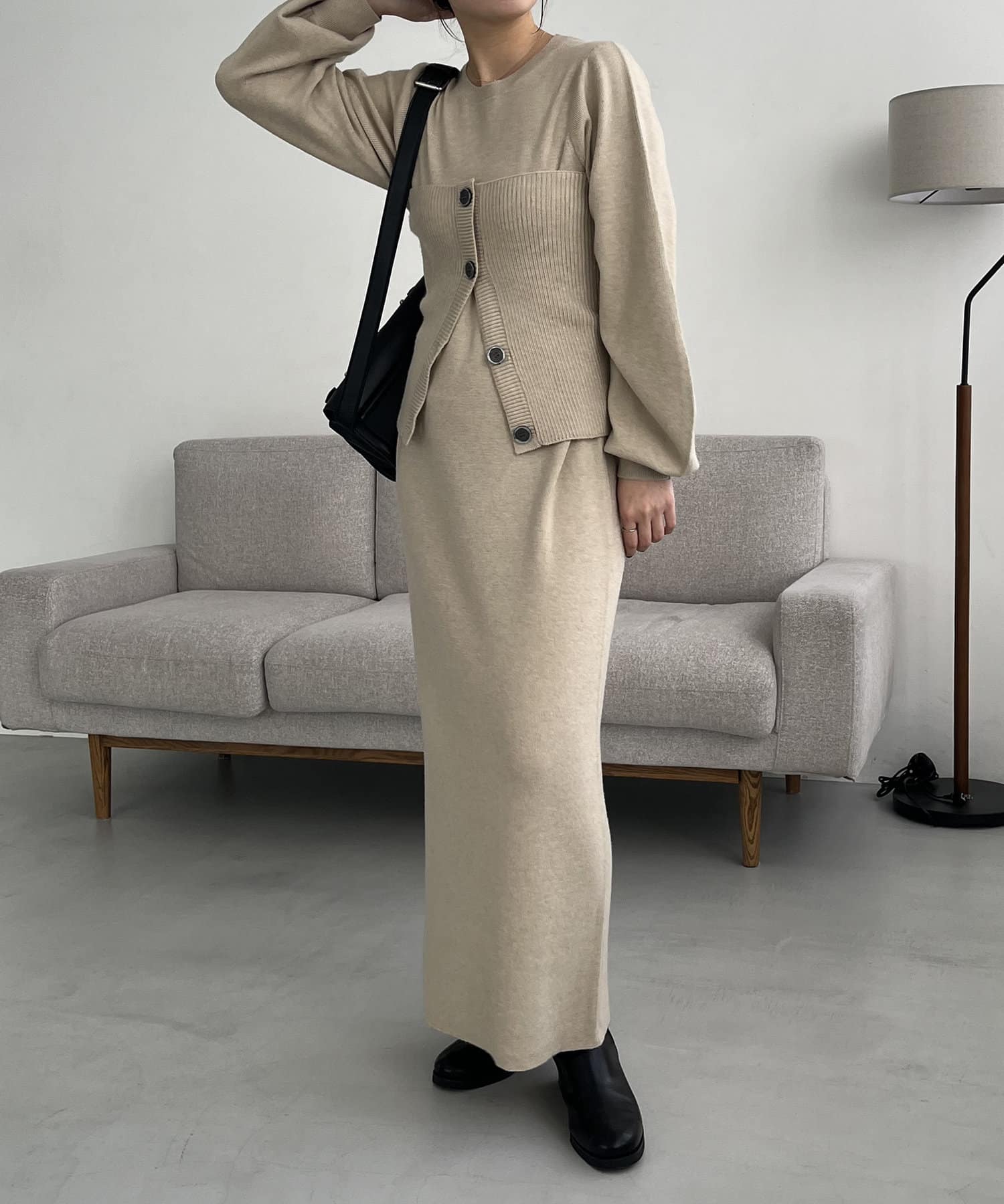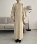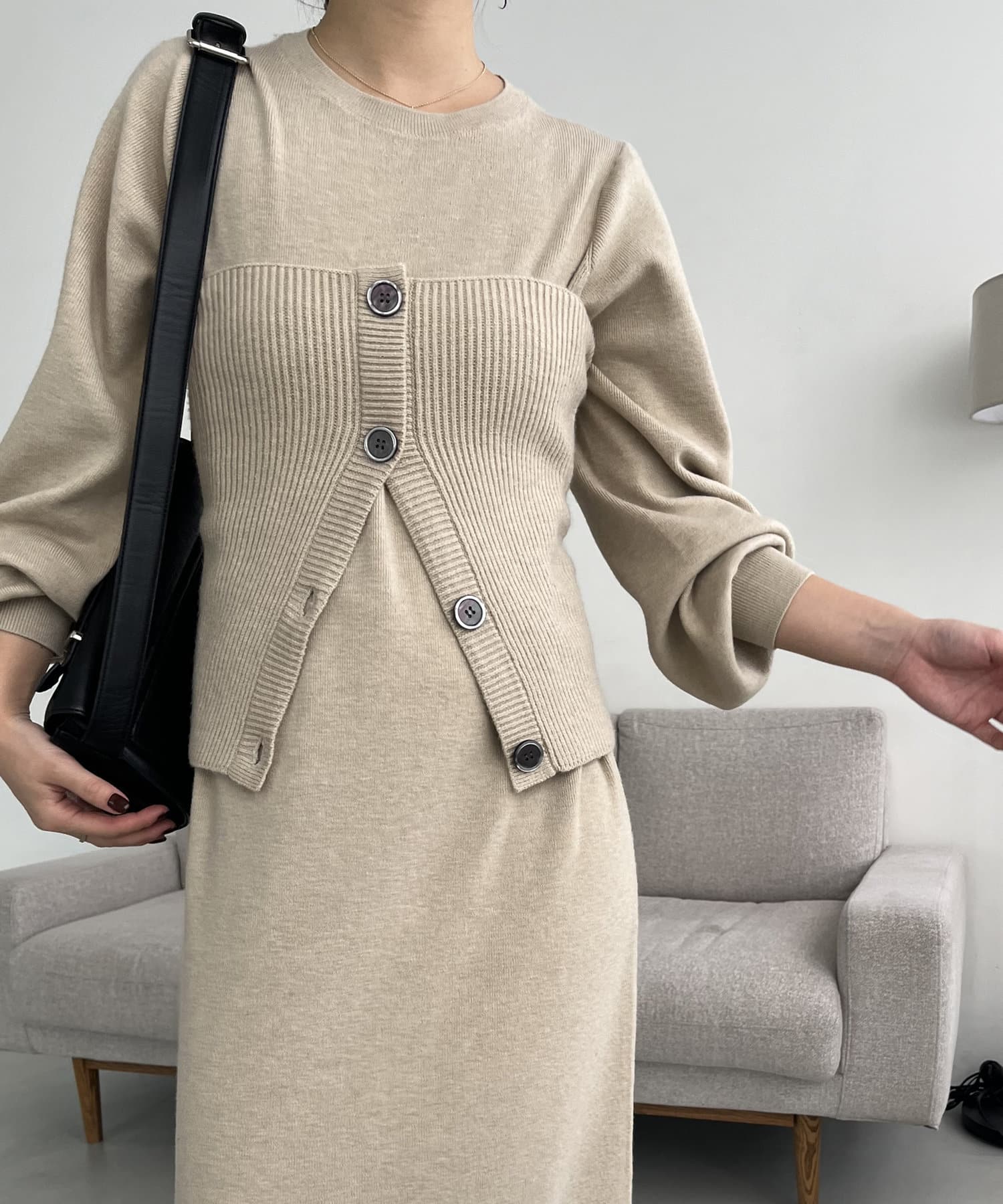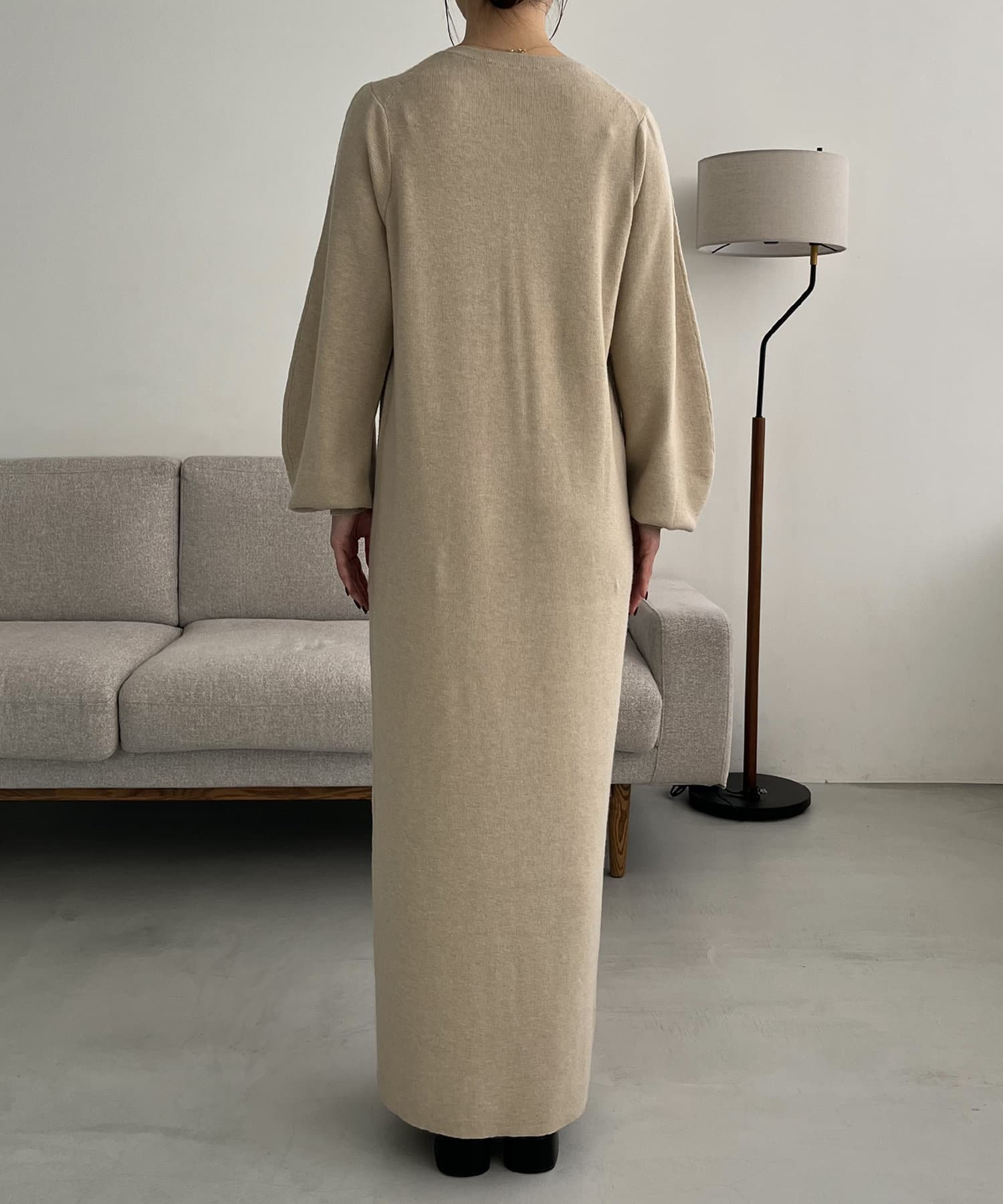 ・パフスリーブのニットワンピースにべアビスチェがセットになったワンピース