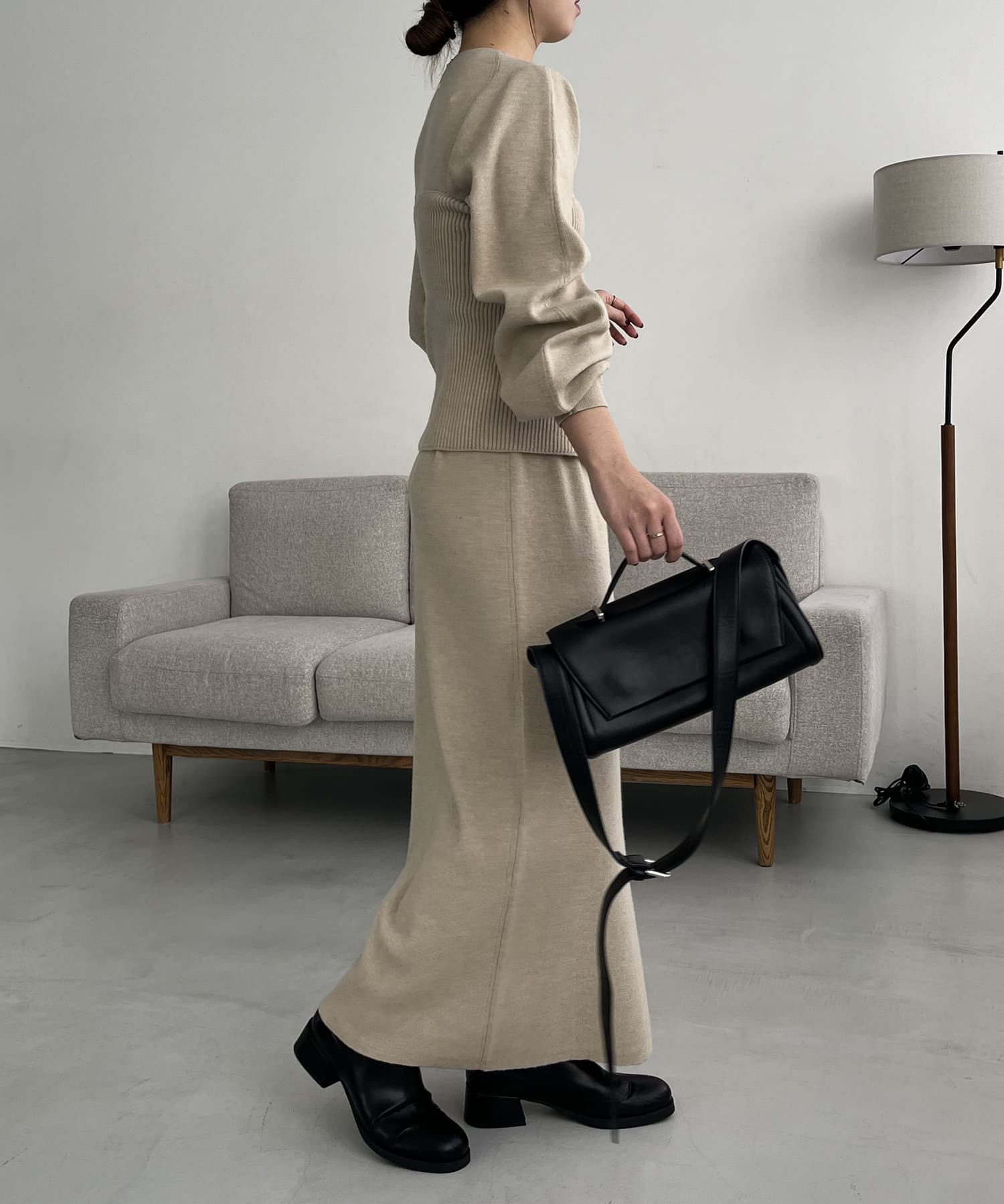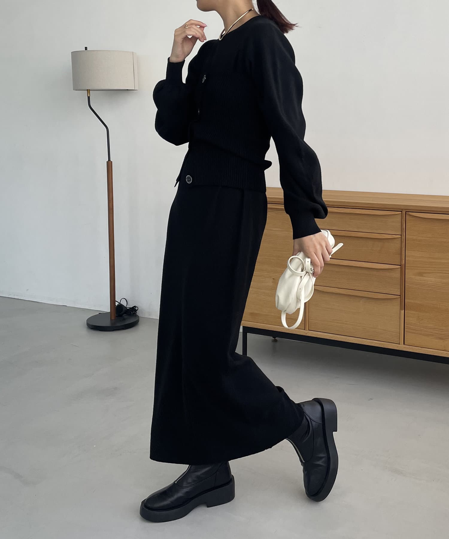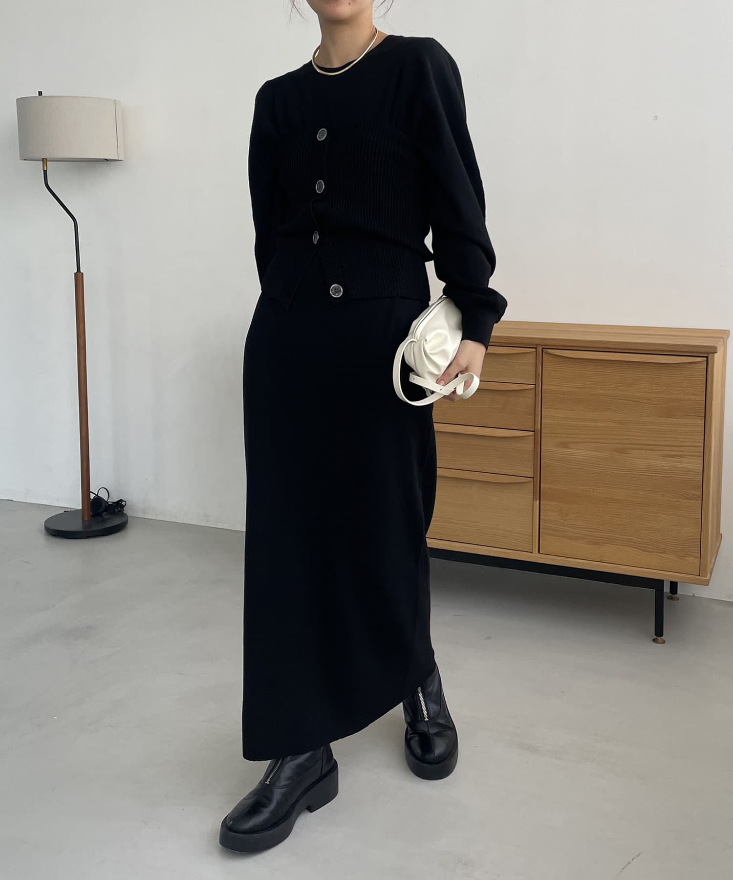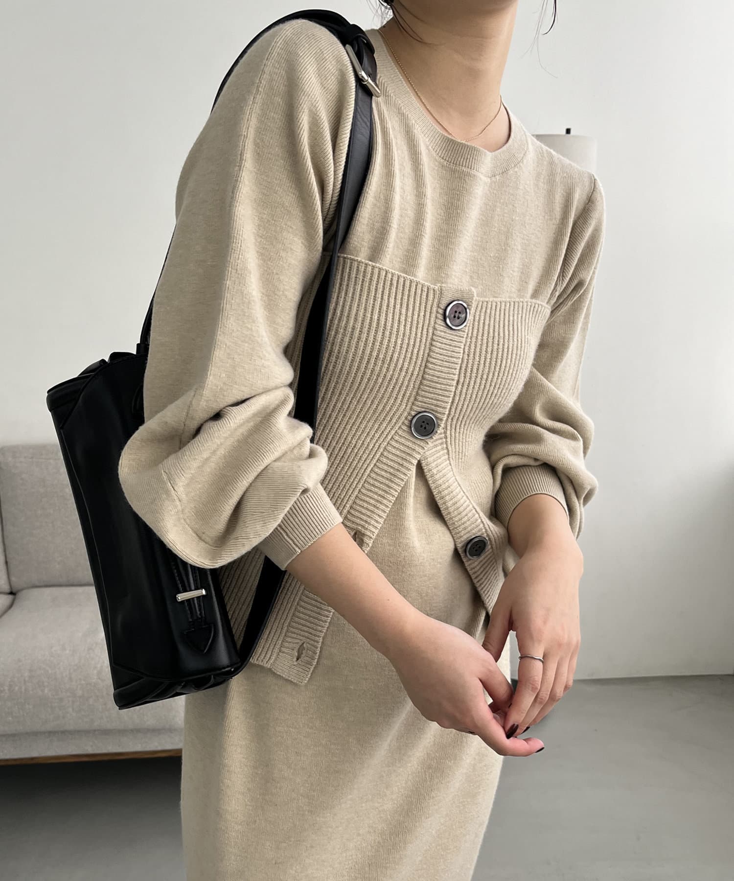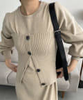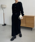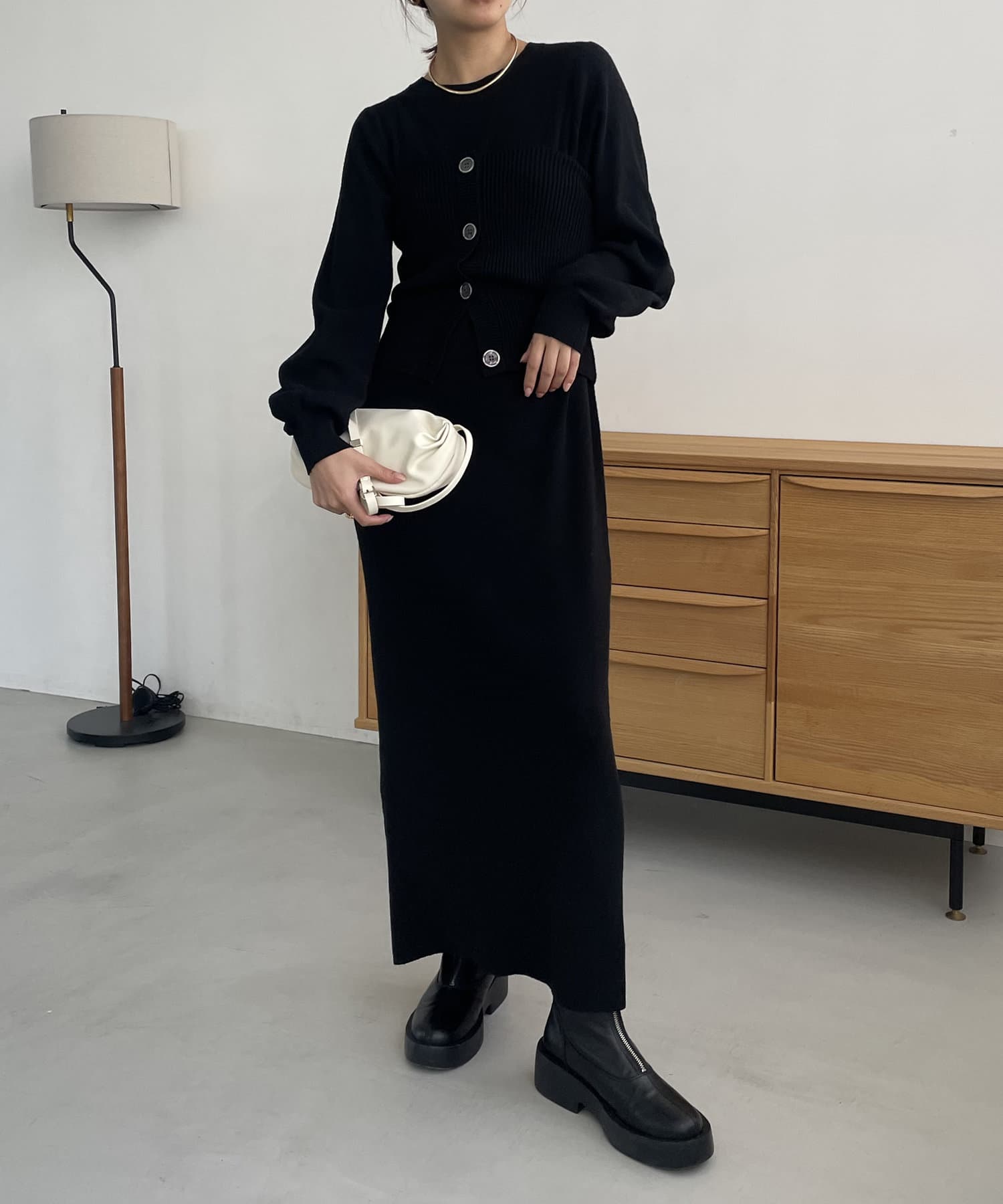 ・パフスリーブのニットワンピースにべアビスチェがセットになったワンピース