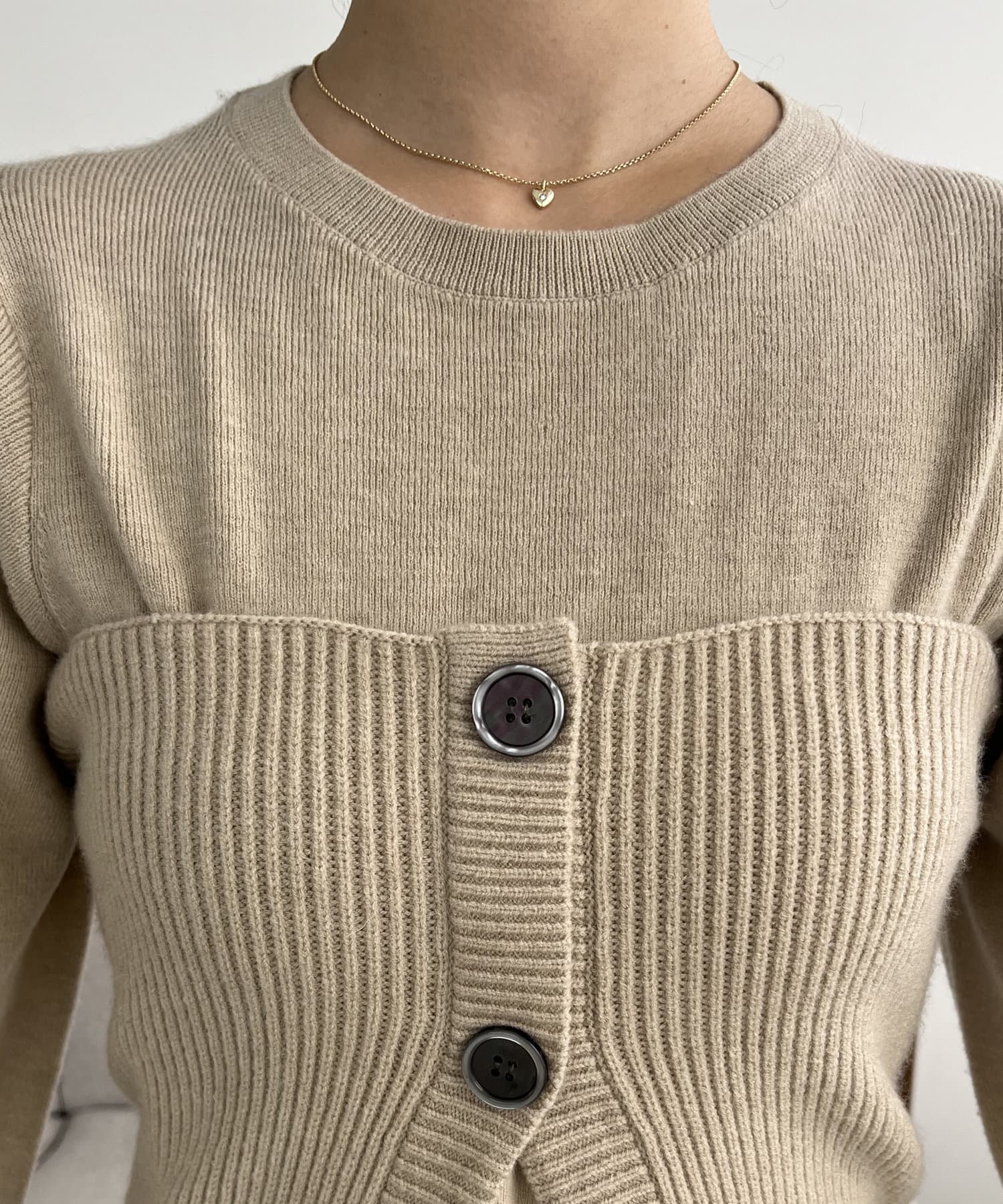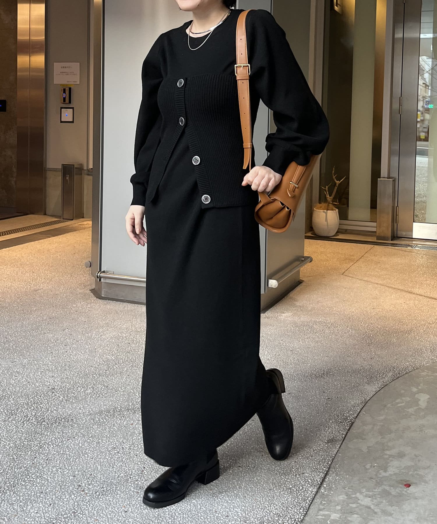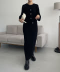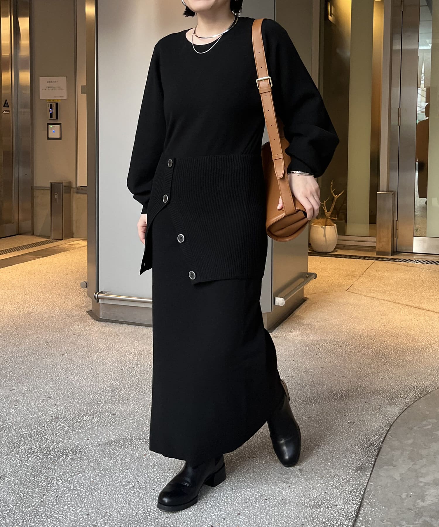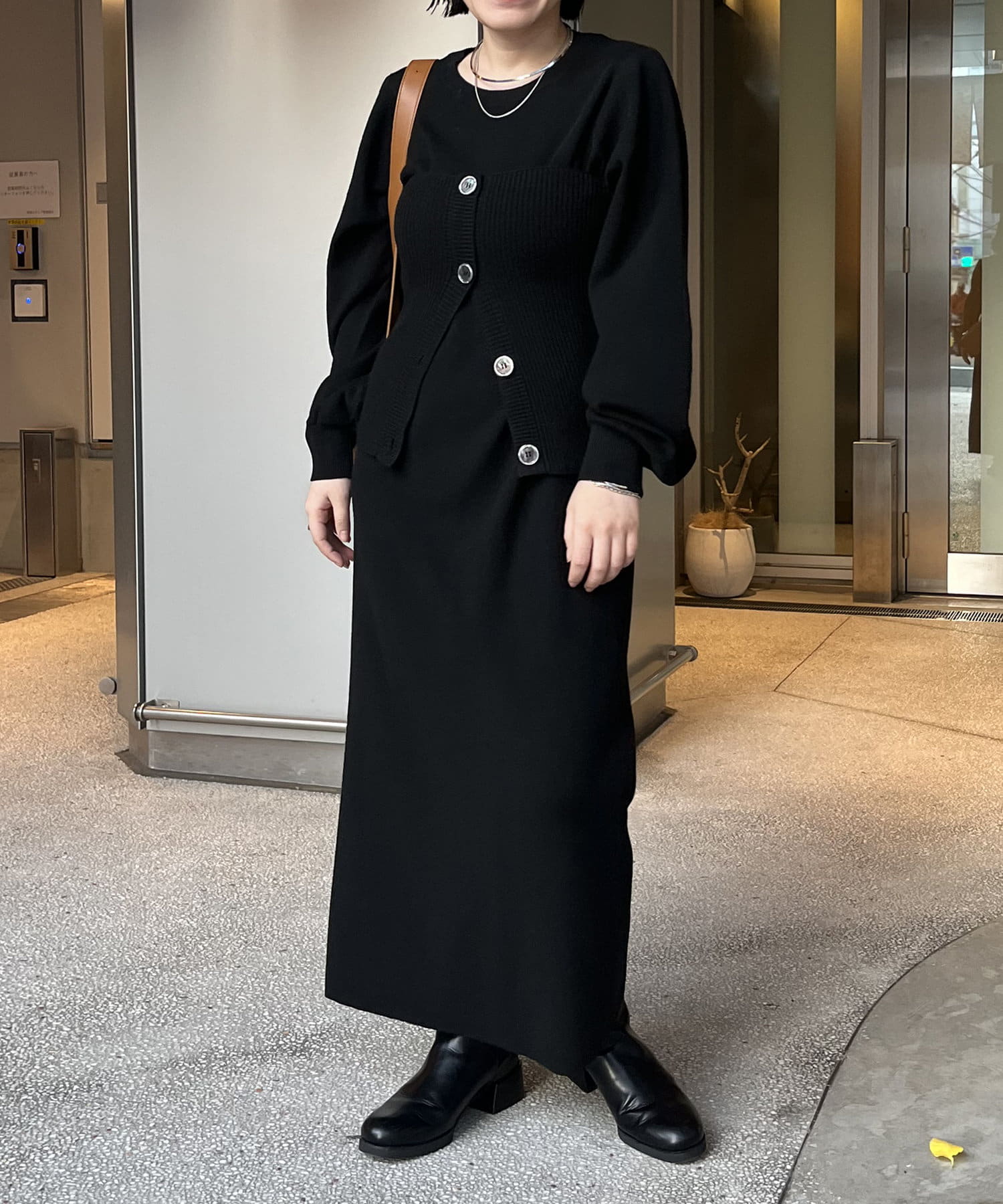 ・パフスリーブのニットワンピースにべアビスチェがセットになったワンピース