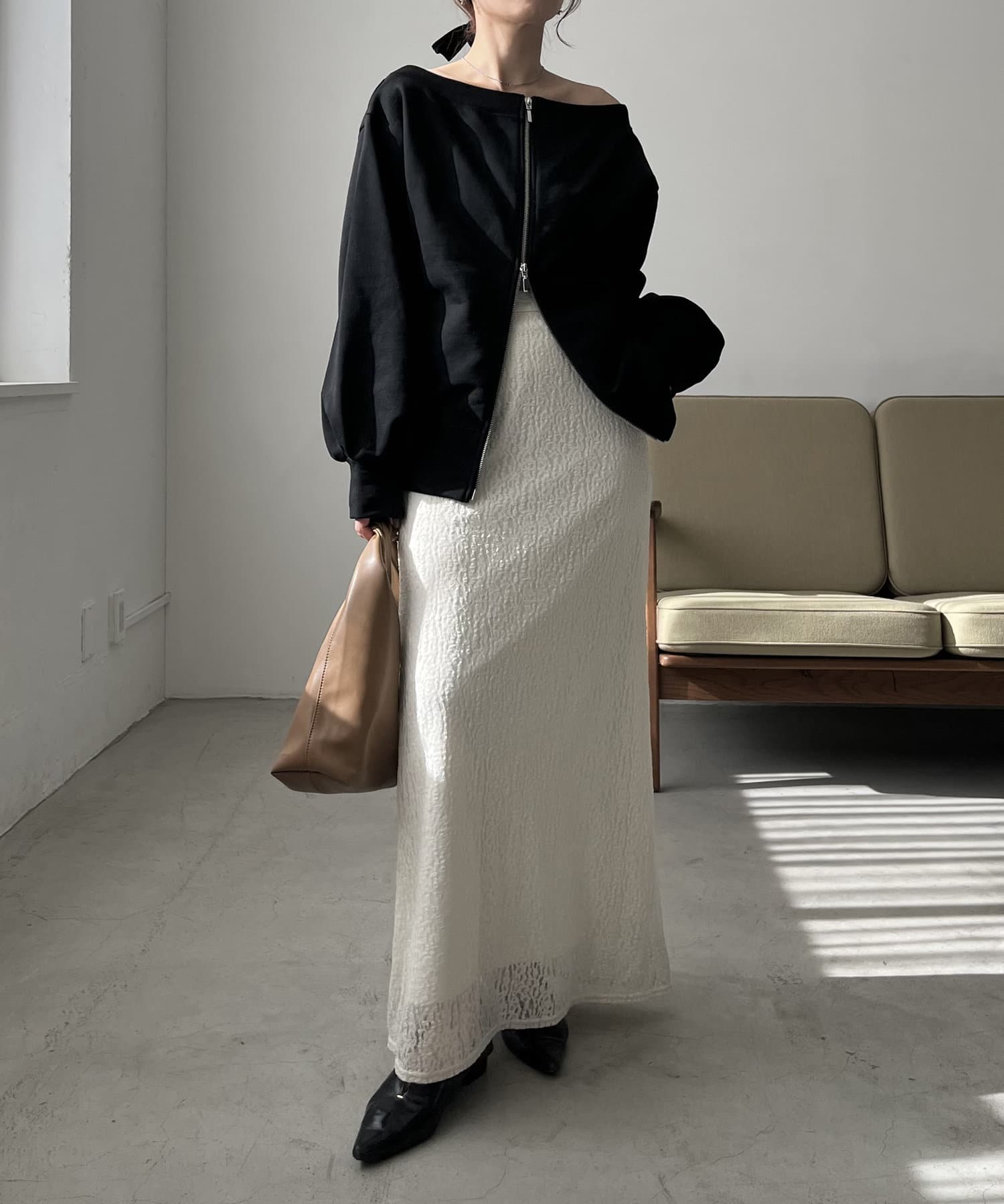 ・広がりのないすっきりとしたラインのマキシスカート