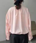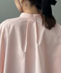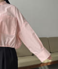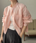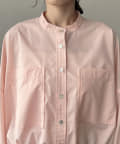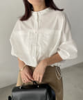 大きなポケットがポイントのノーカラーブラウス