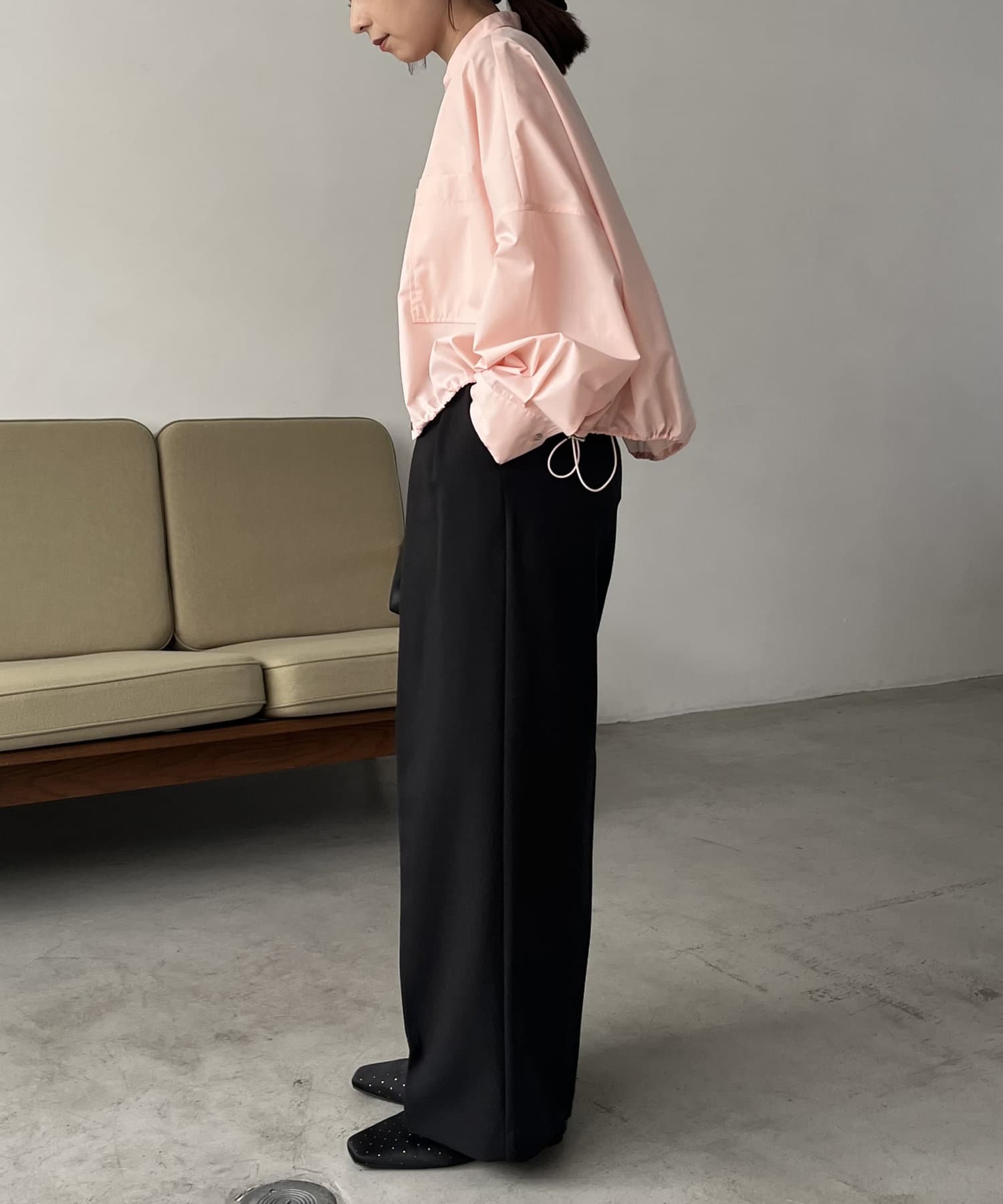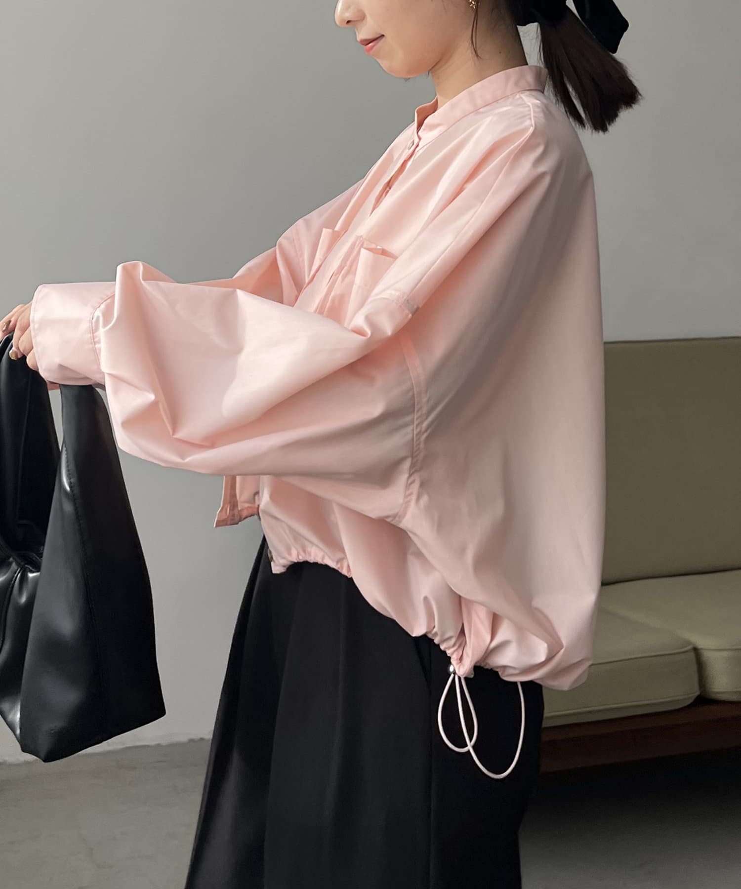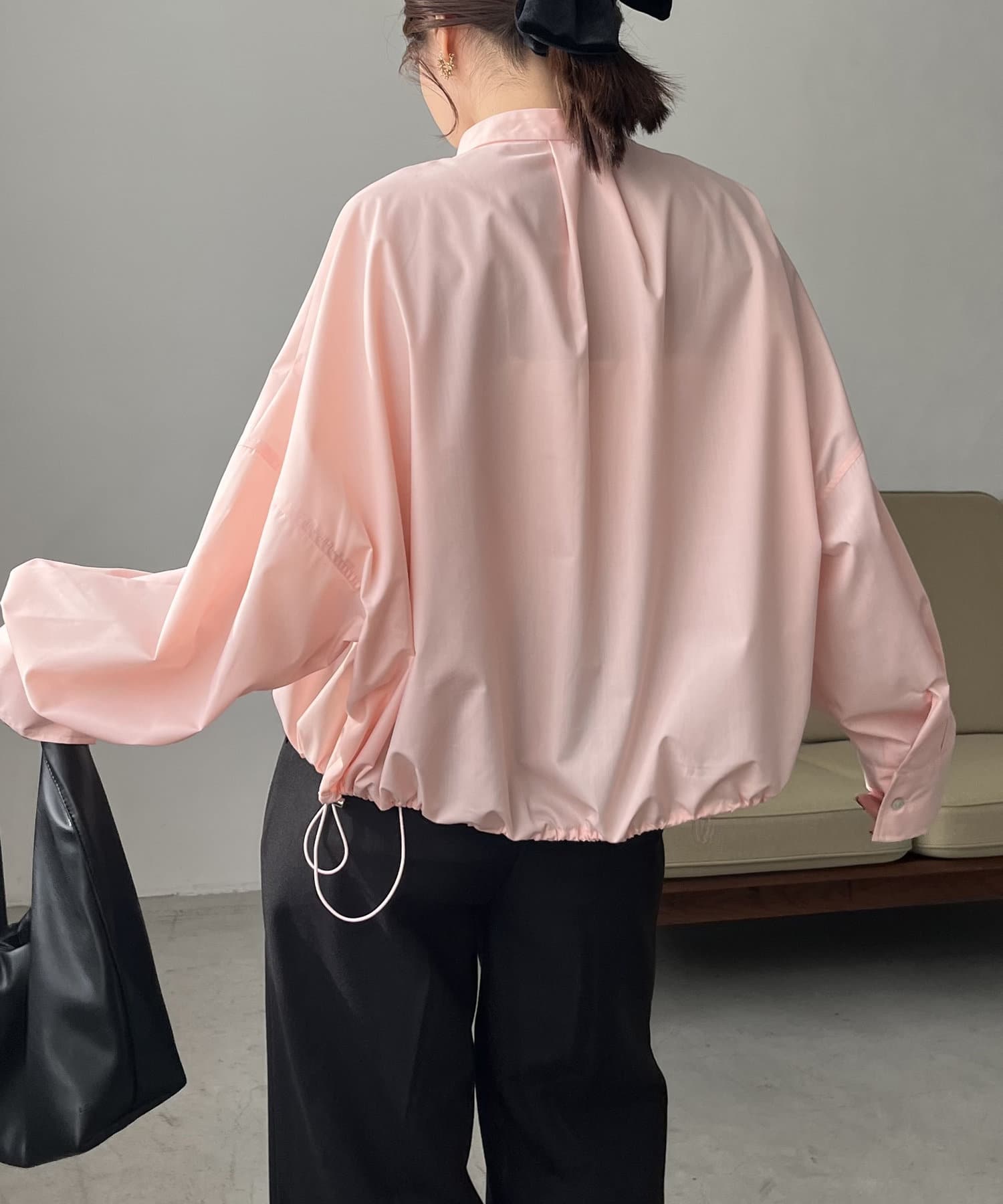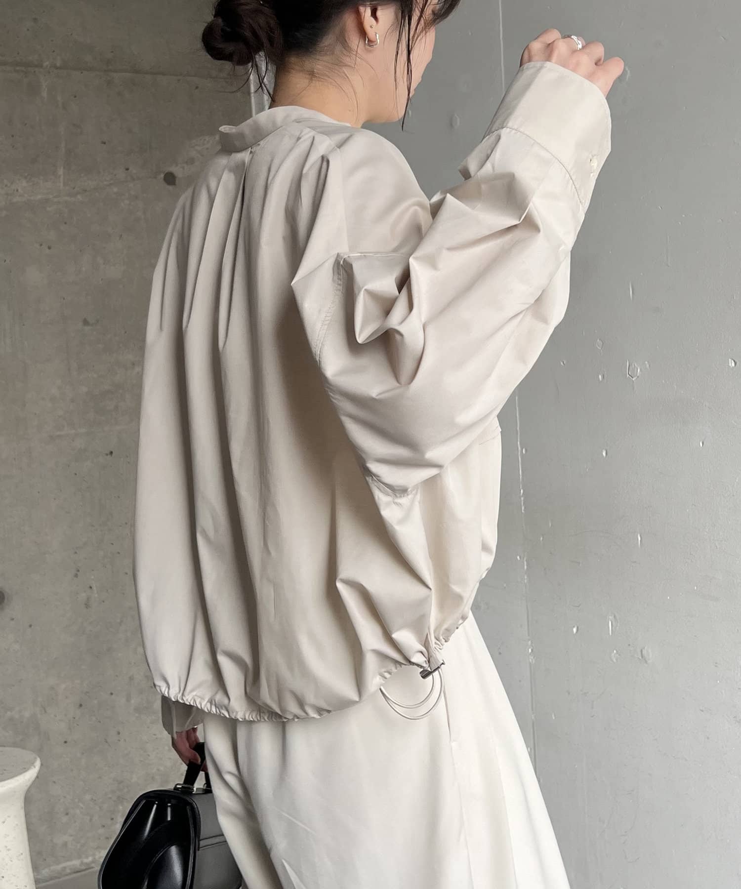 ・裾ドロストを絞って、丸みのあるシルエットに調整可能