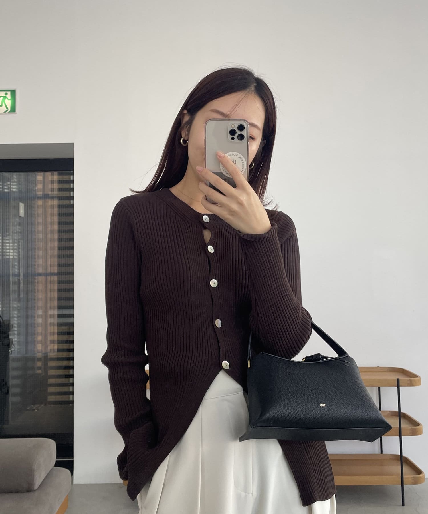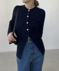 ・狭い間隔で配置した大きめのシェルボタンが上品なつや感を演出