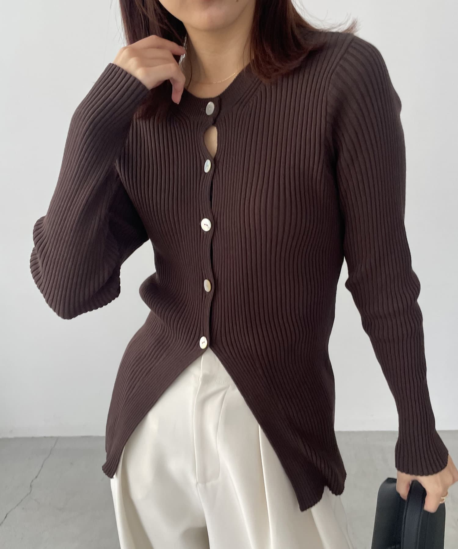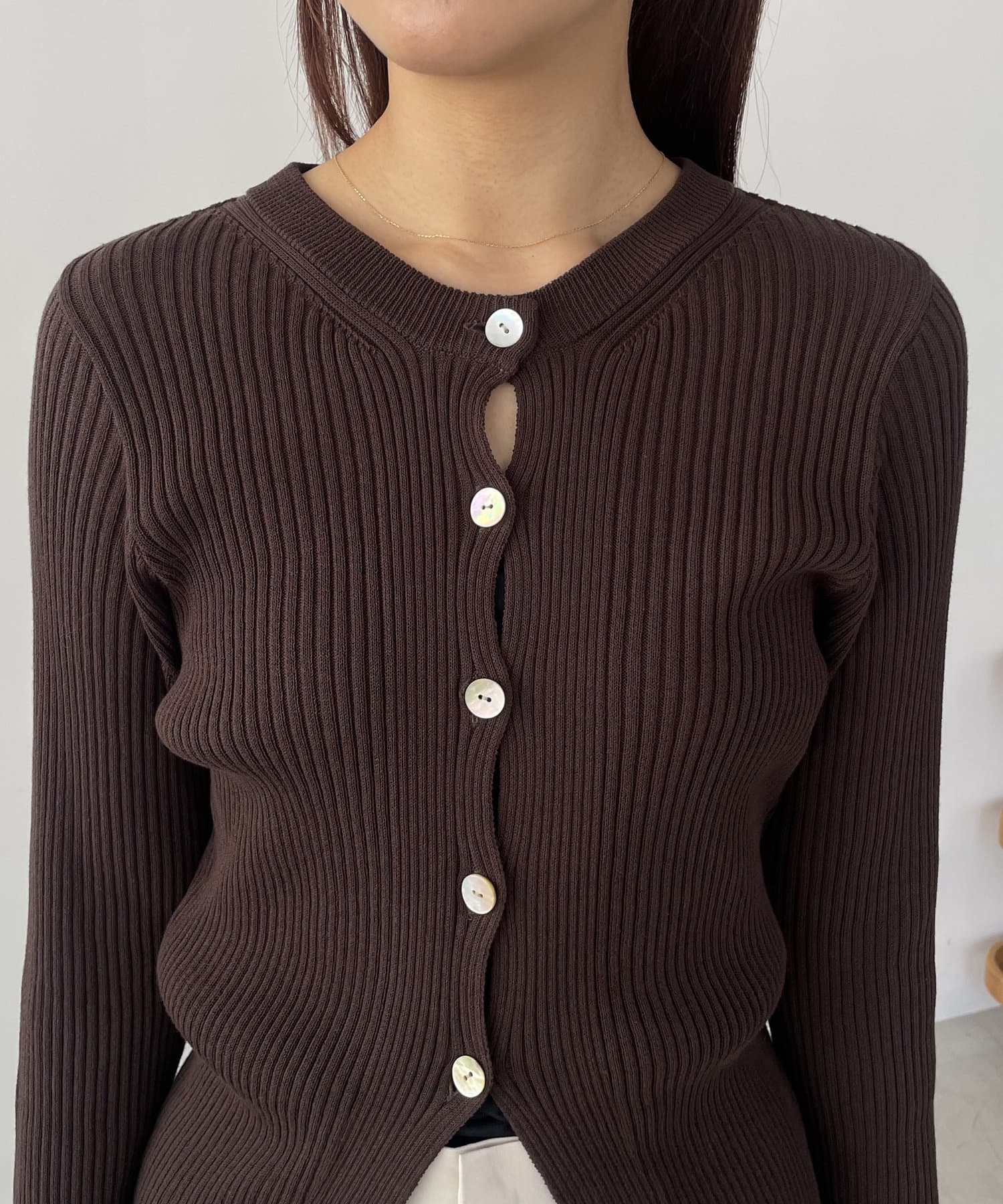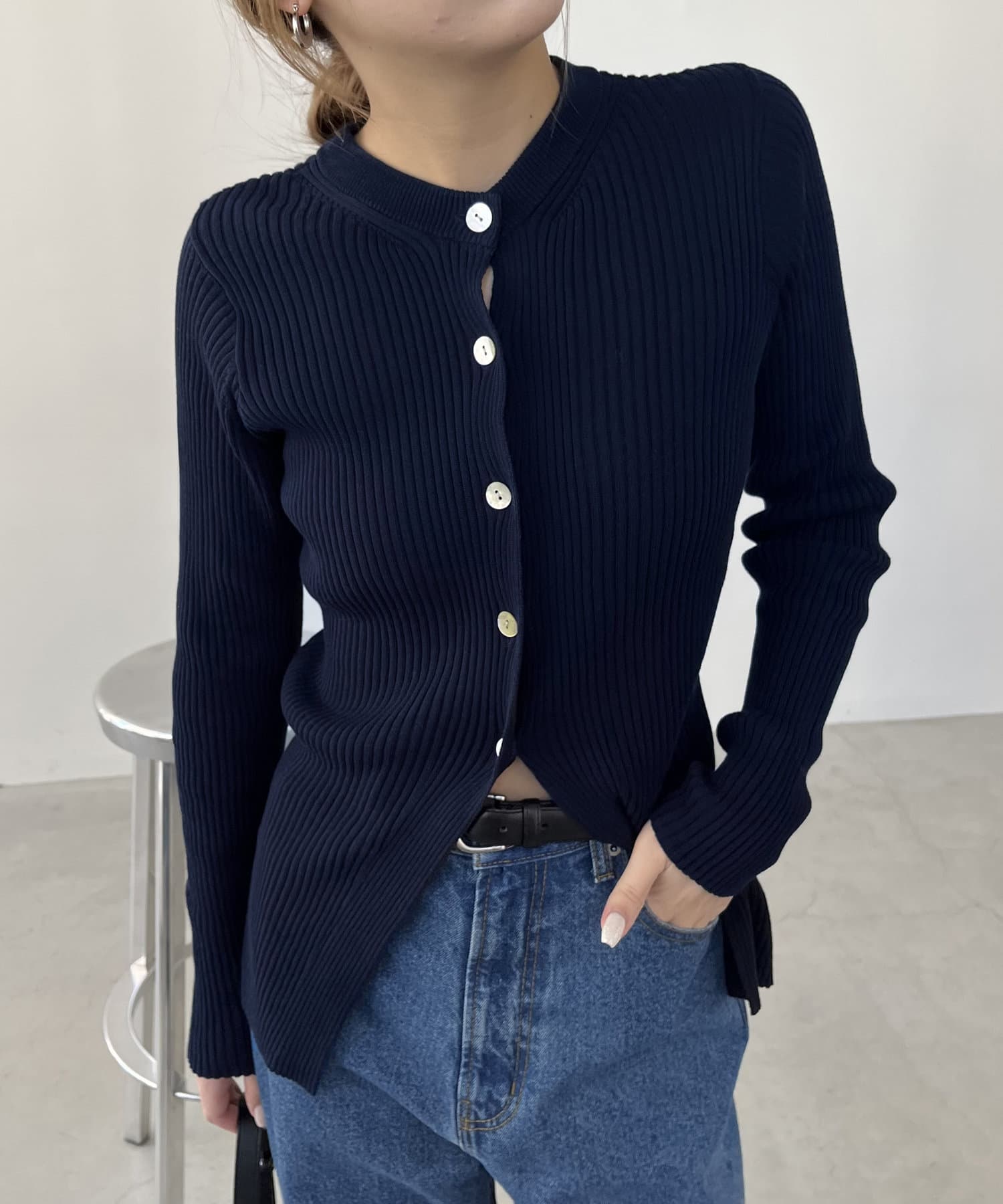 ・シャリ感が特徴の強撚綿糸を使用したリブ編みカーディガン