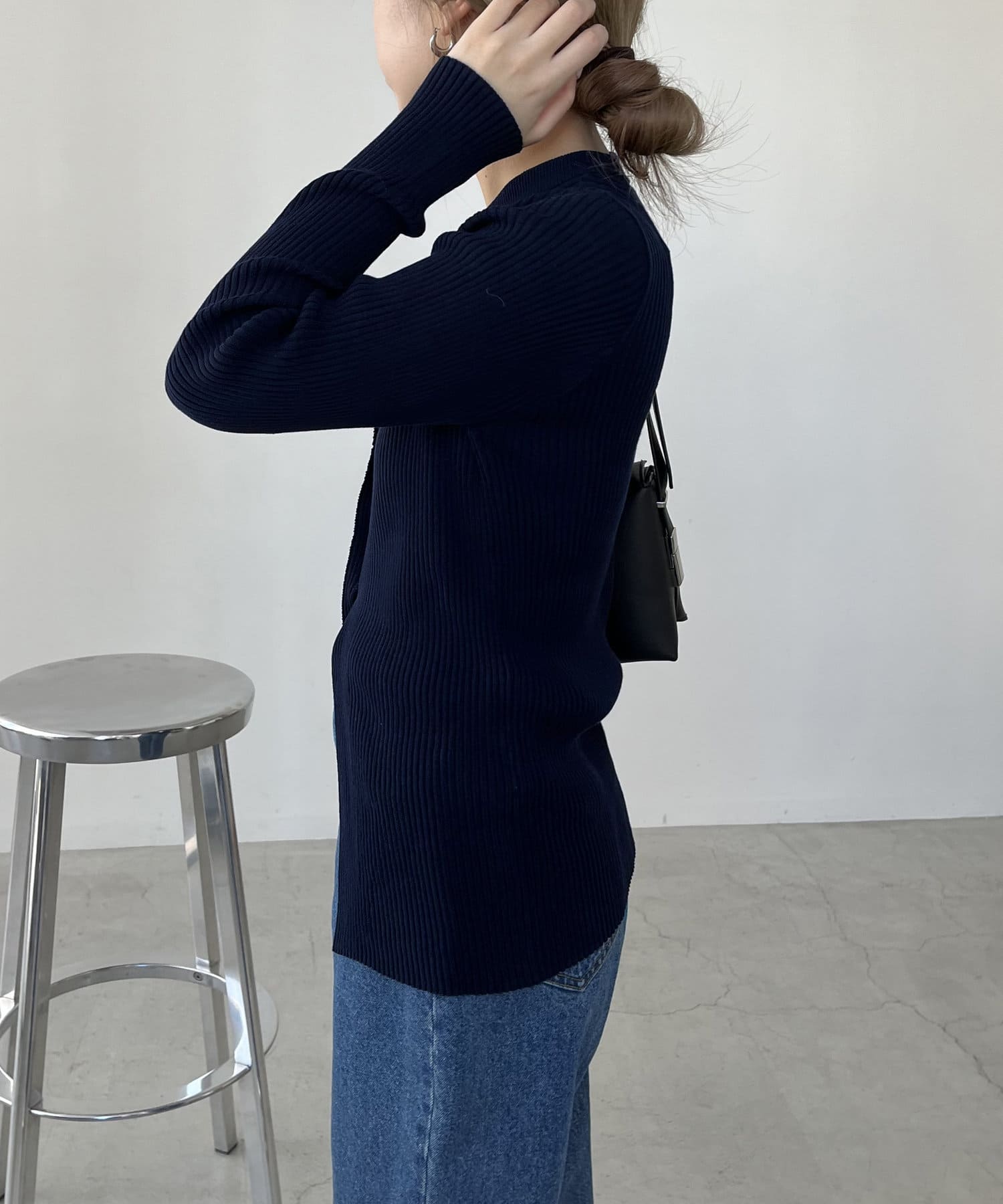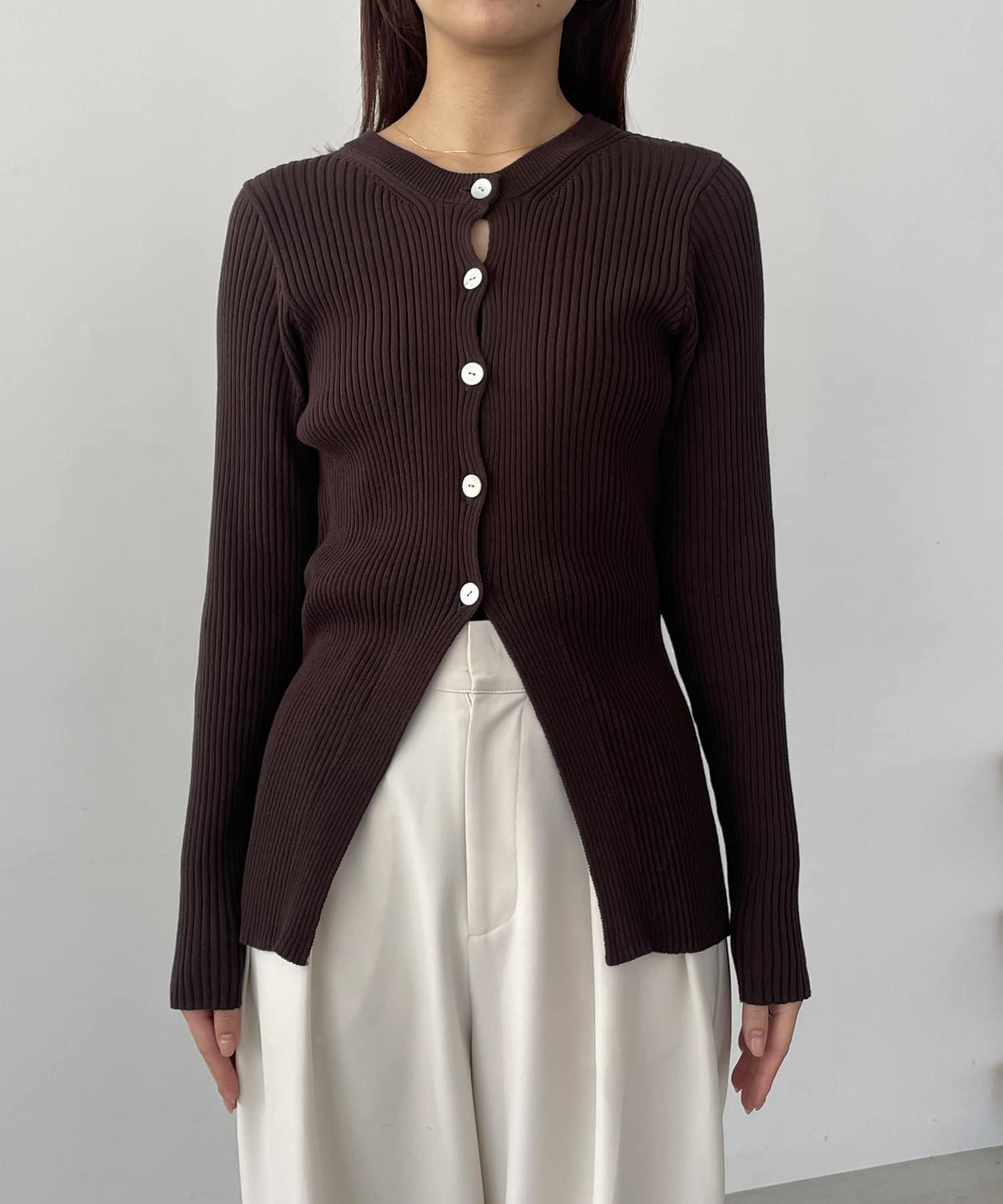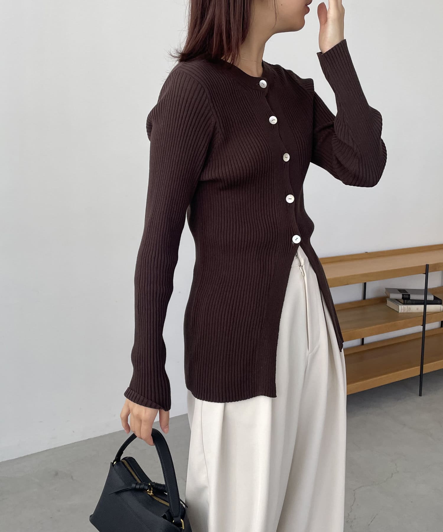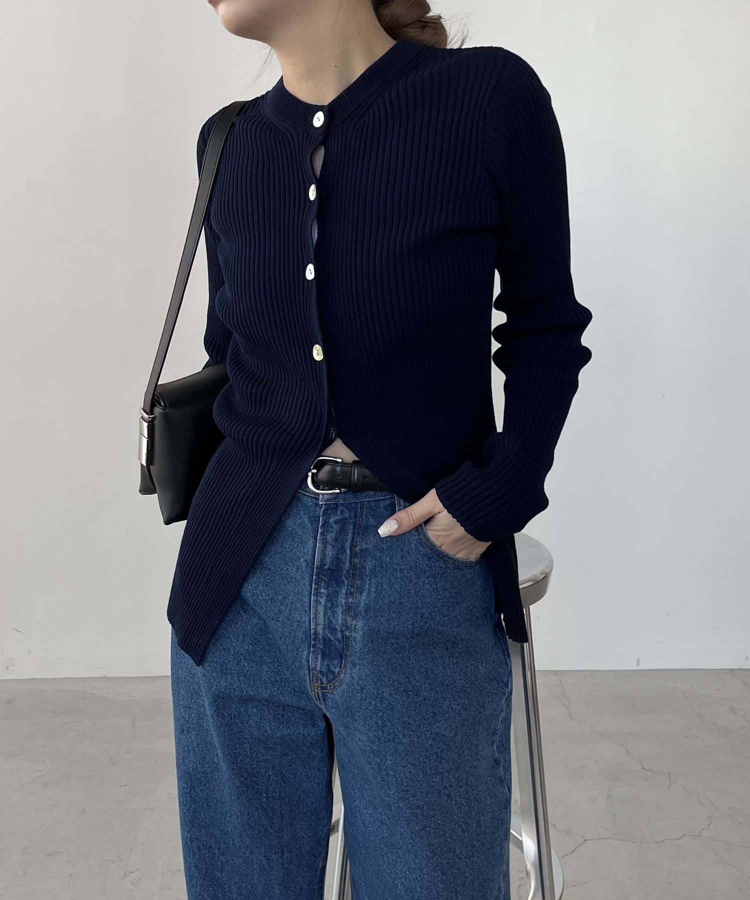 ・シャリ感が特徴の強撚綿糸を使用したリブ編みカーディガン