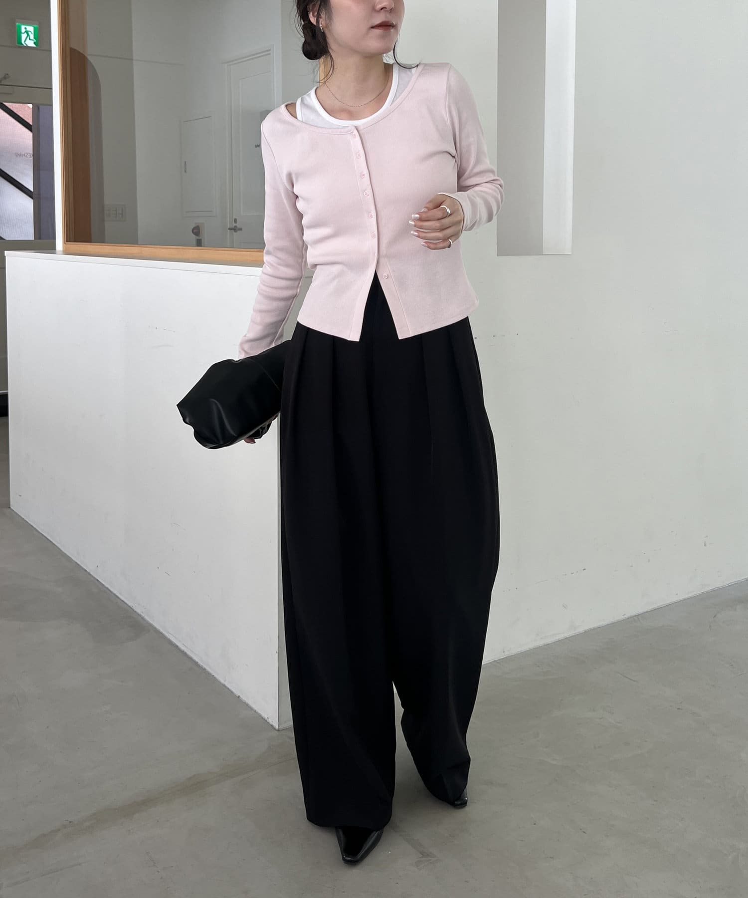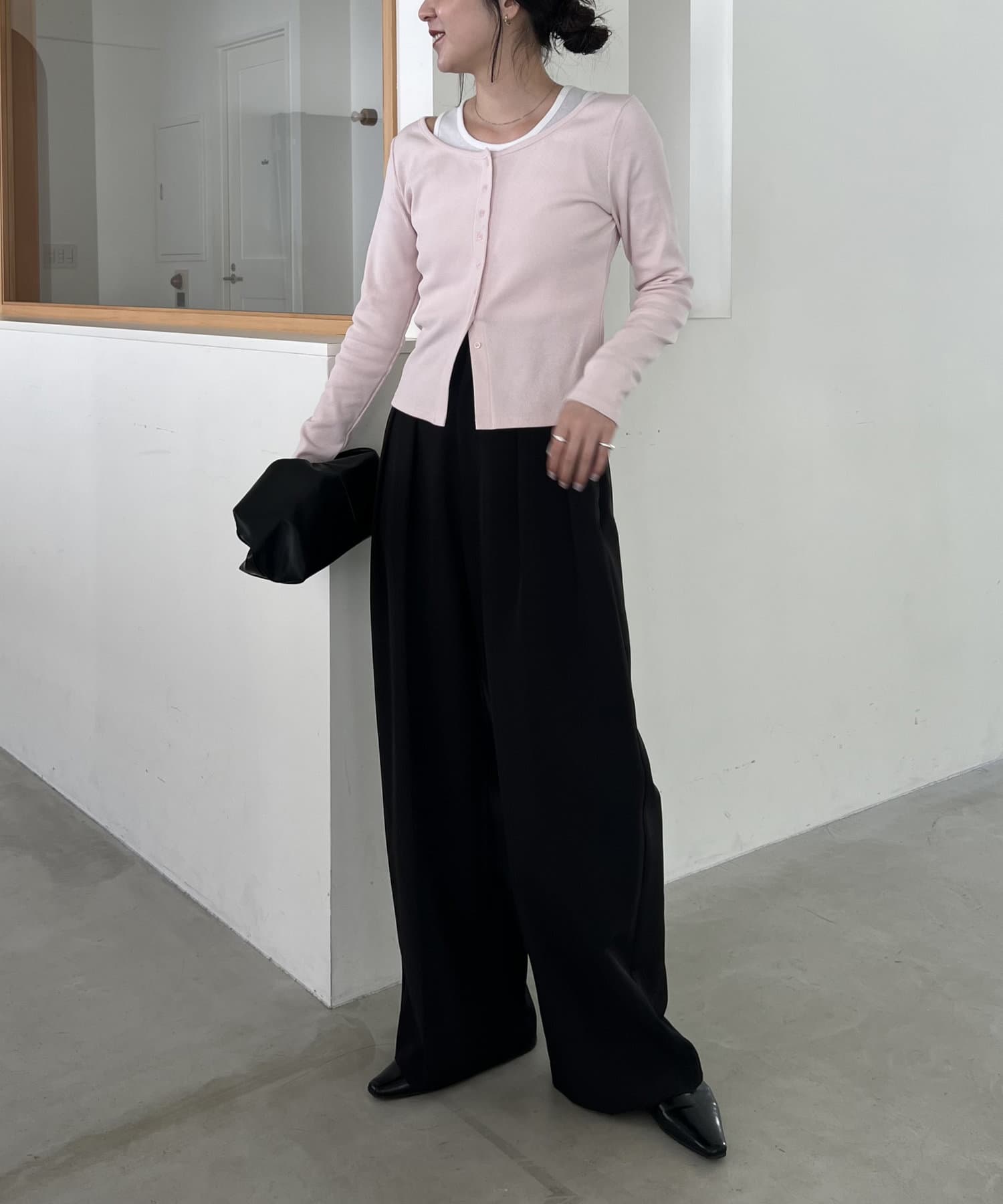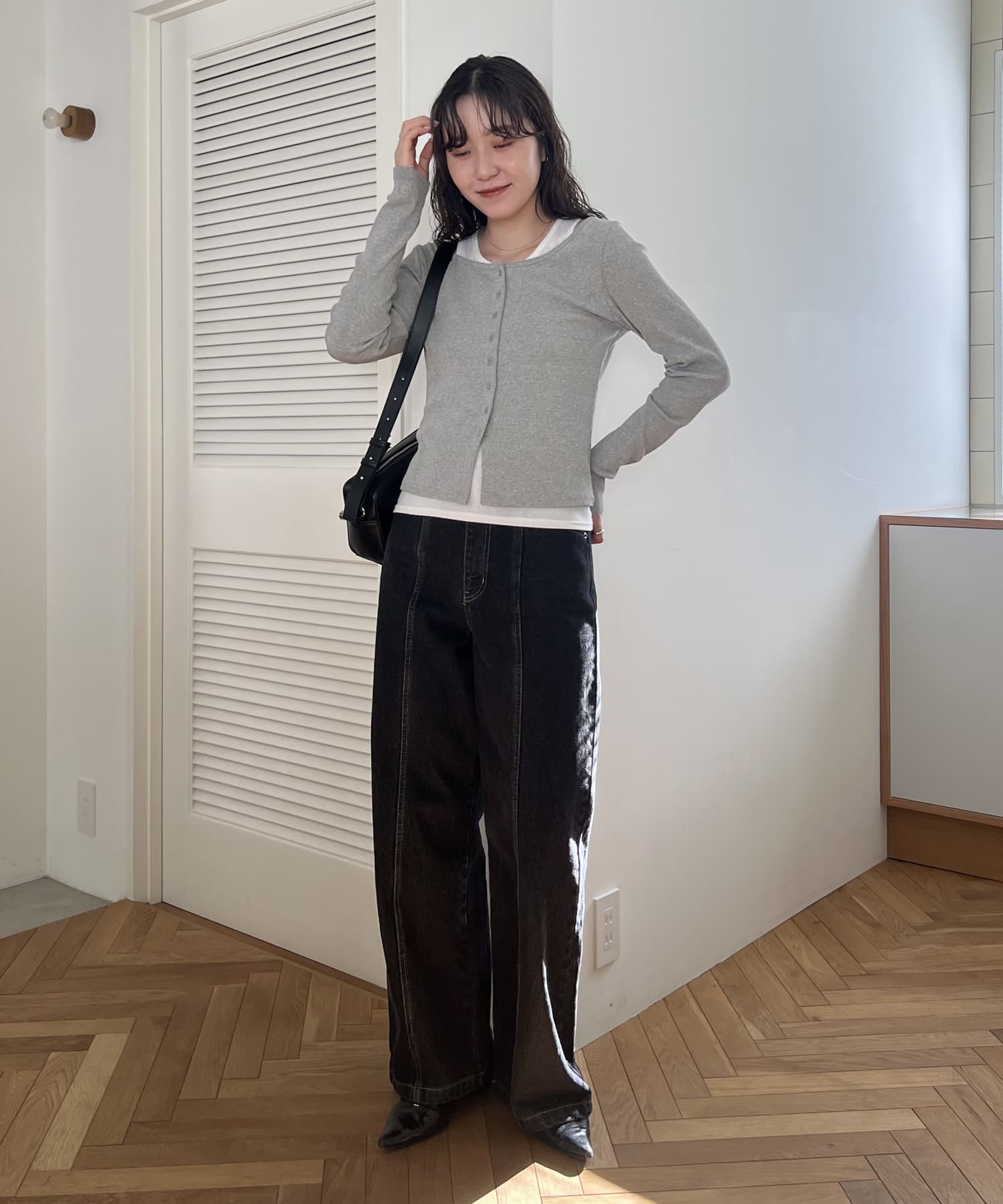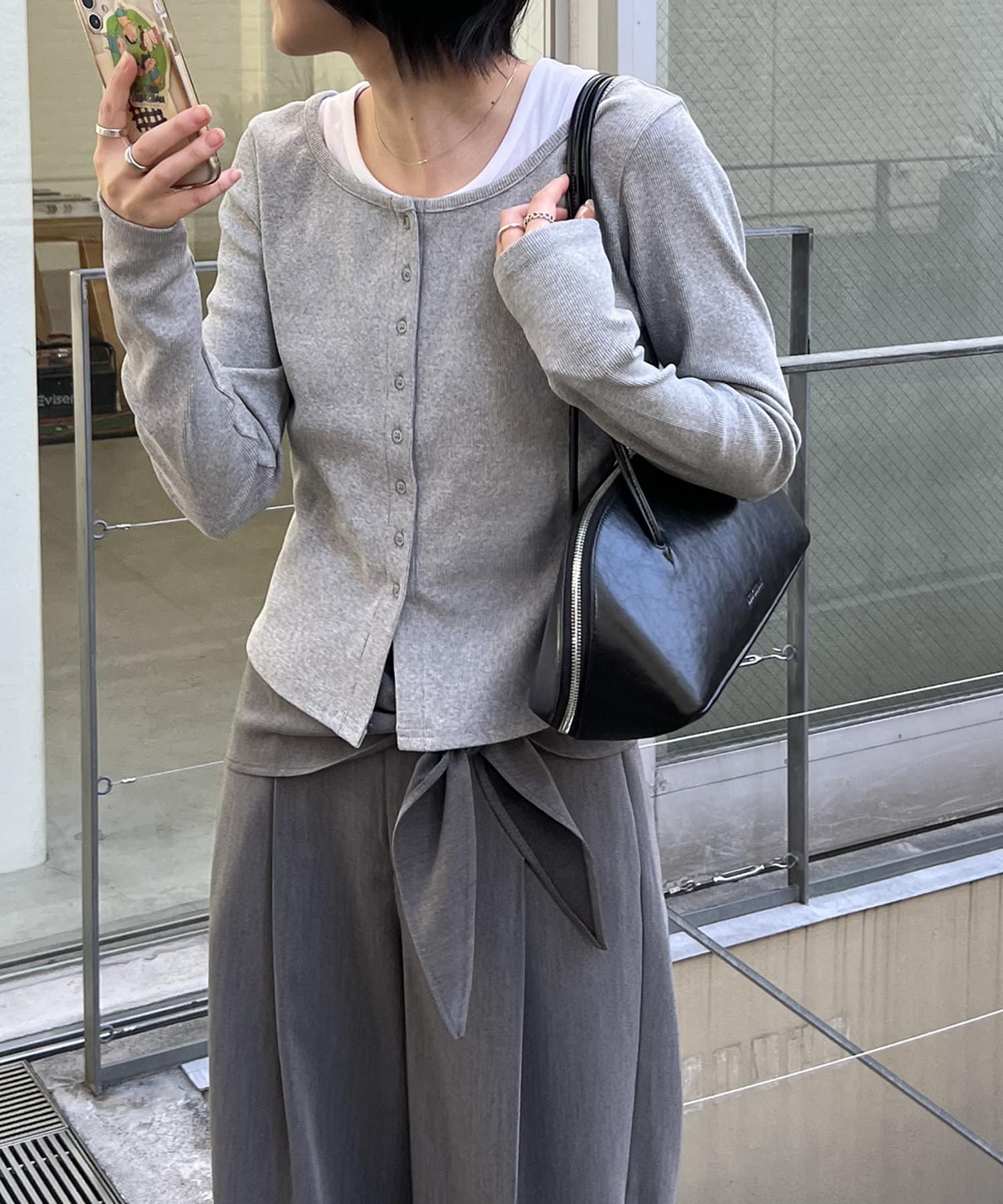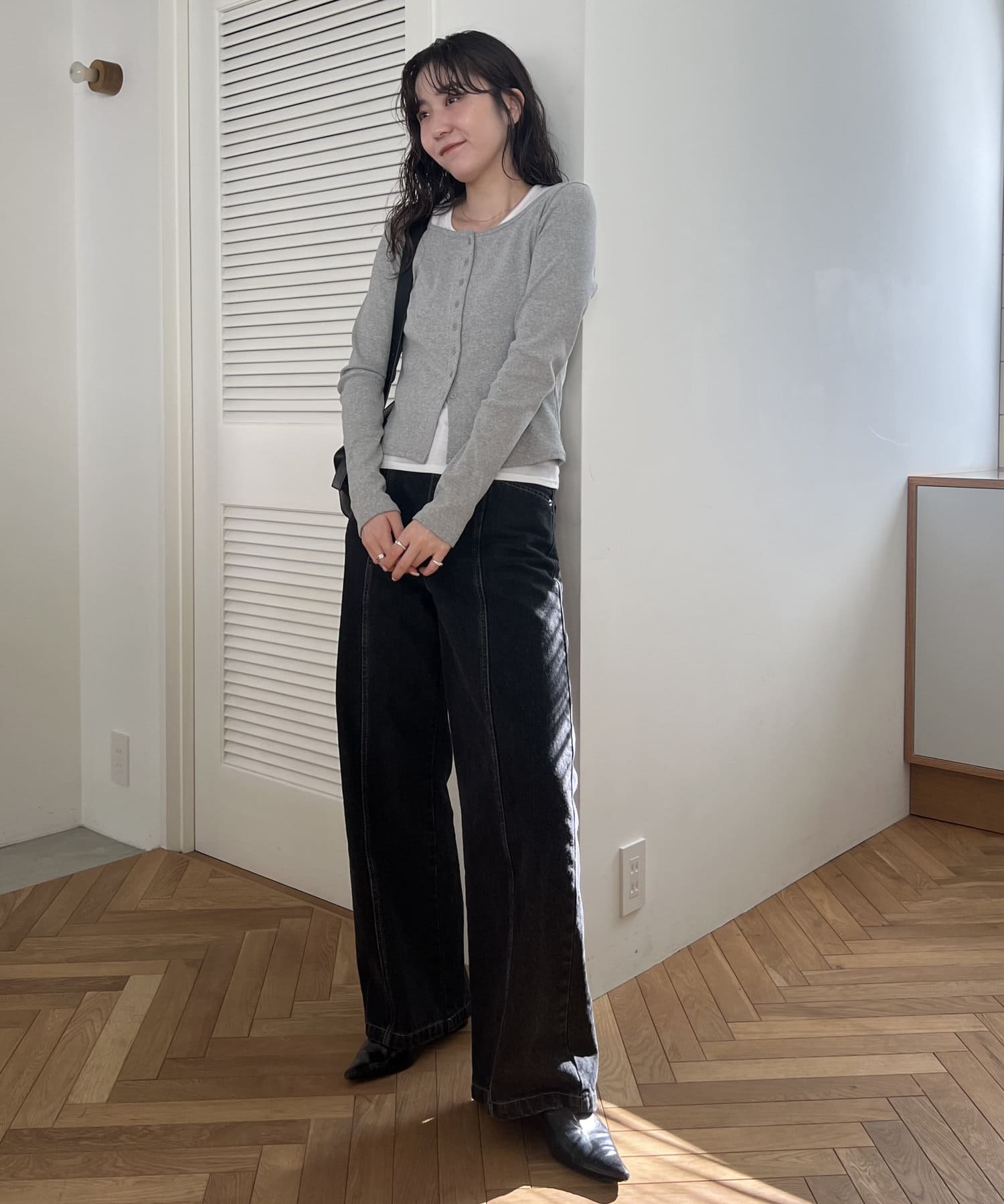 ・カーディガンの裾はあえて1番下までボタンを付けないことで、裾の見え方にこだわりも◎