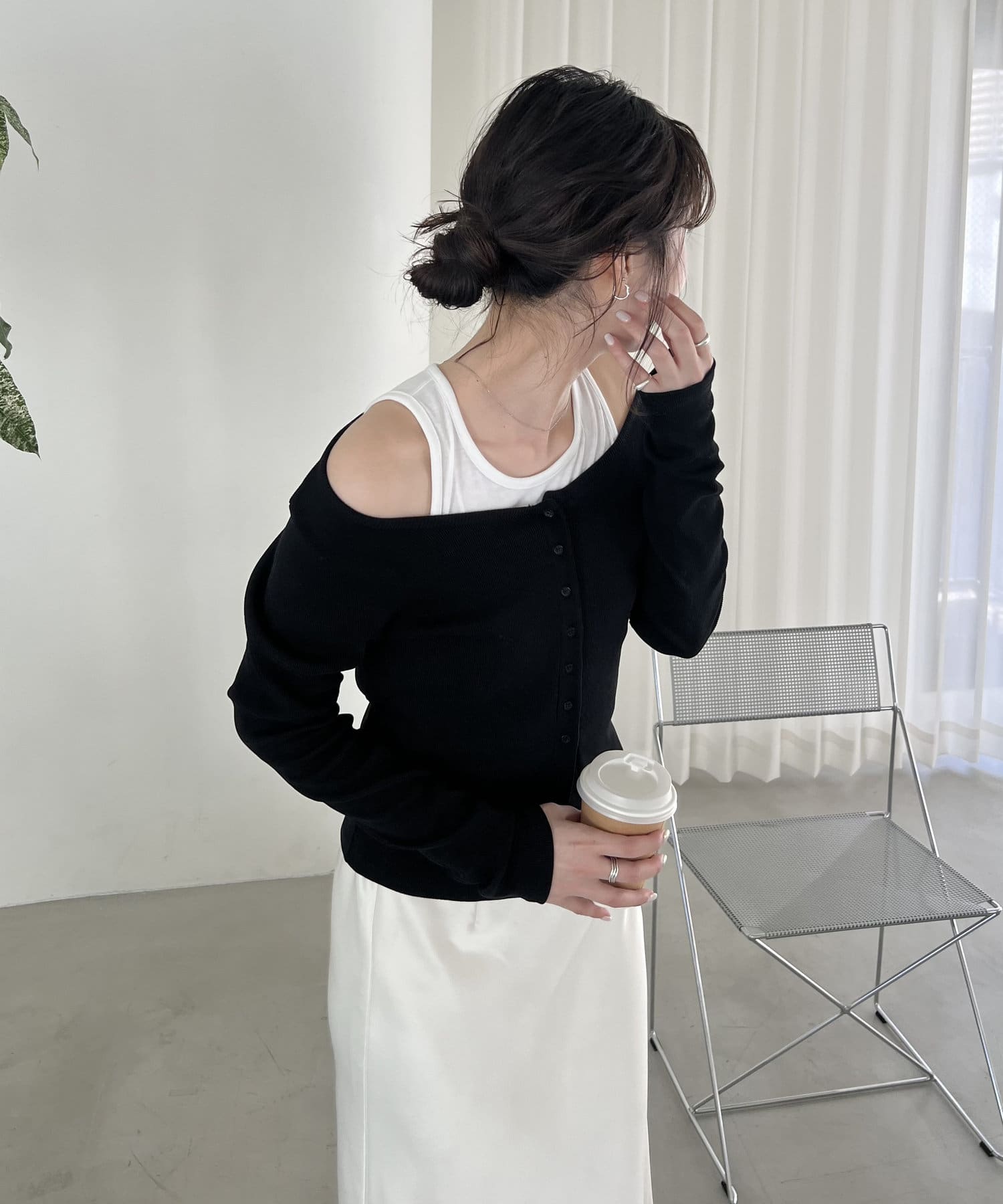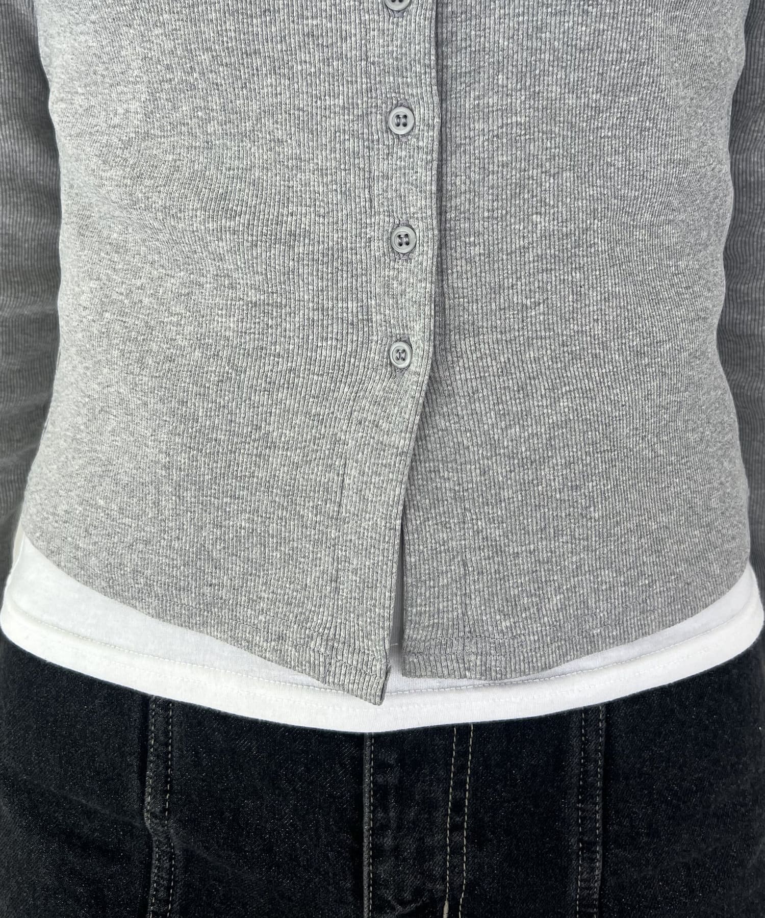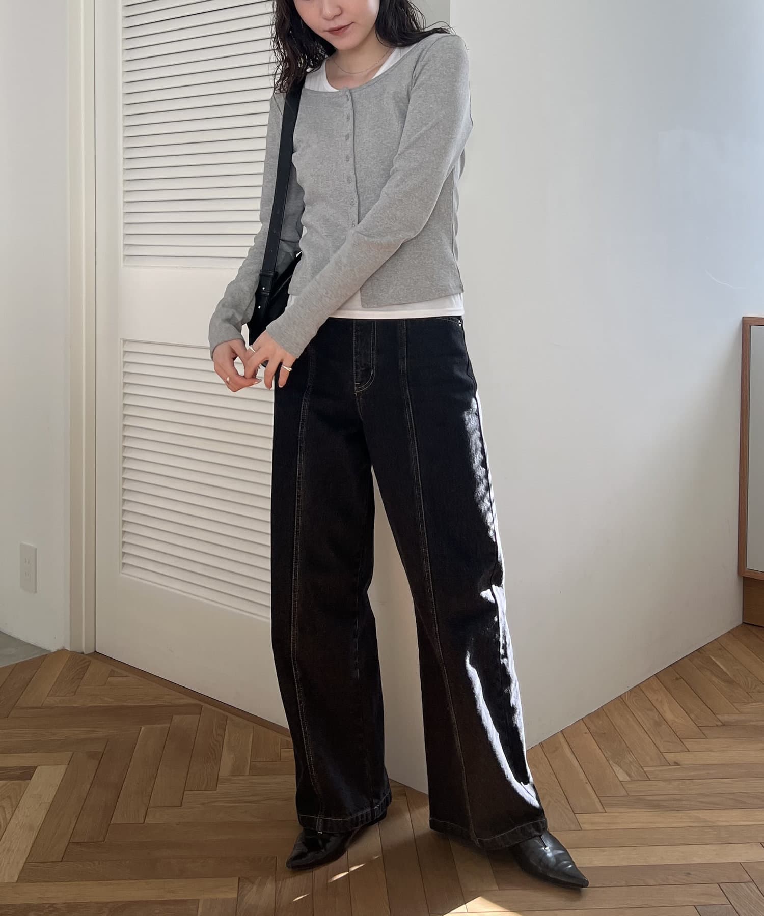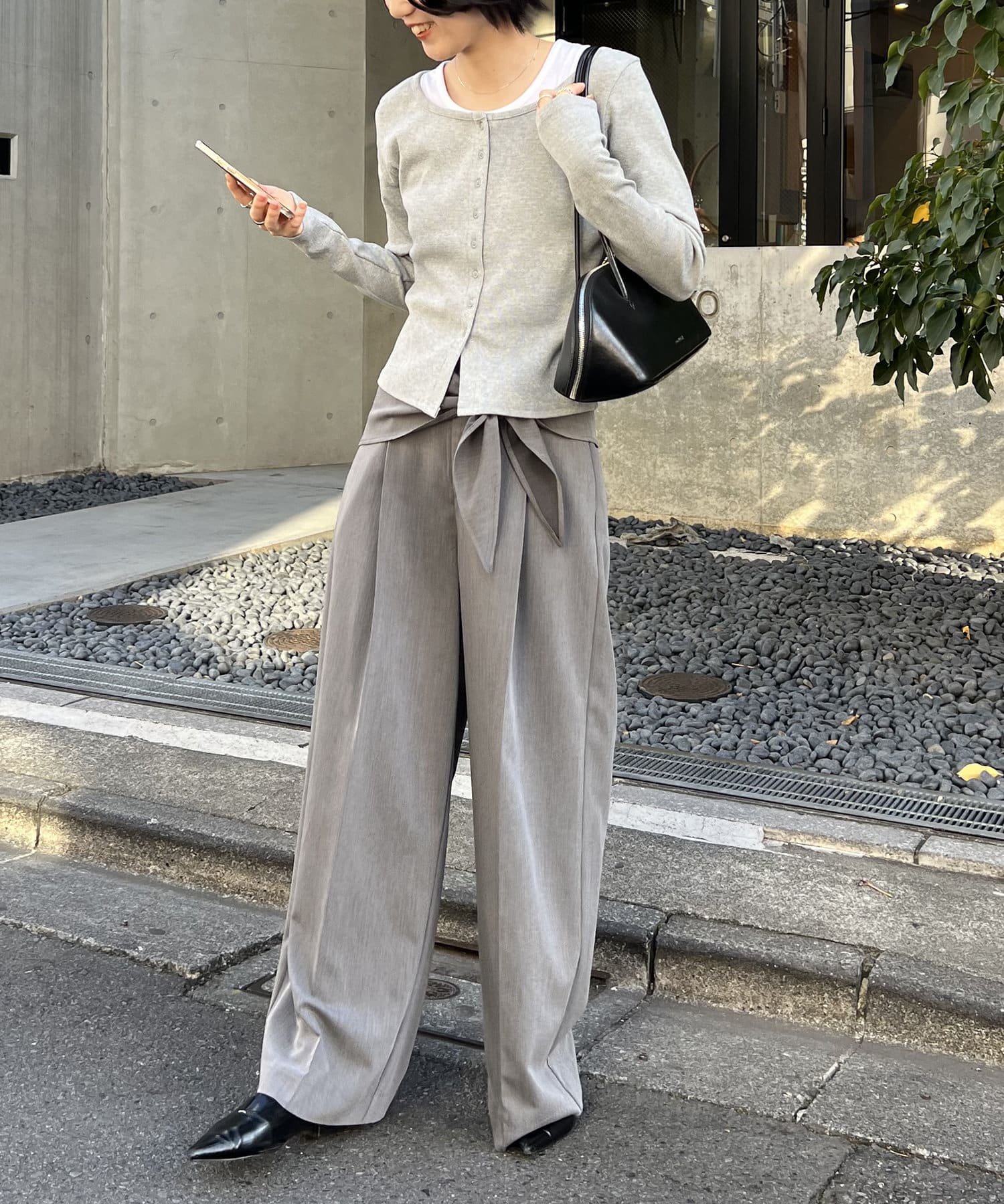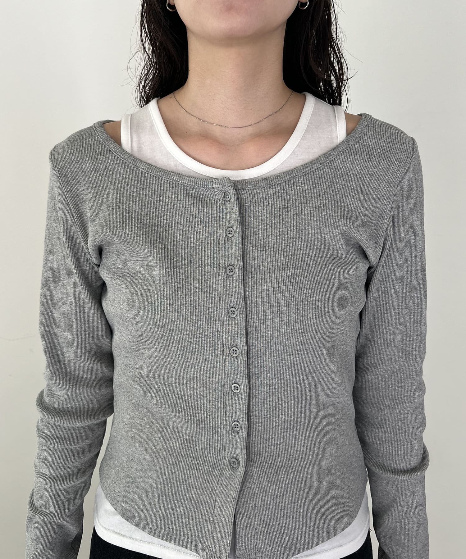 ・カーディガンの裾はあえて1番下までボタンを付けないことで、裾の見え方にこだわりも◎