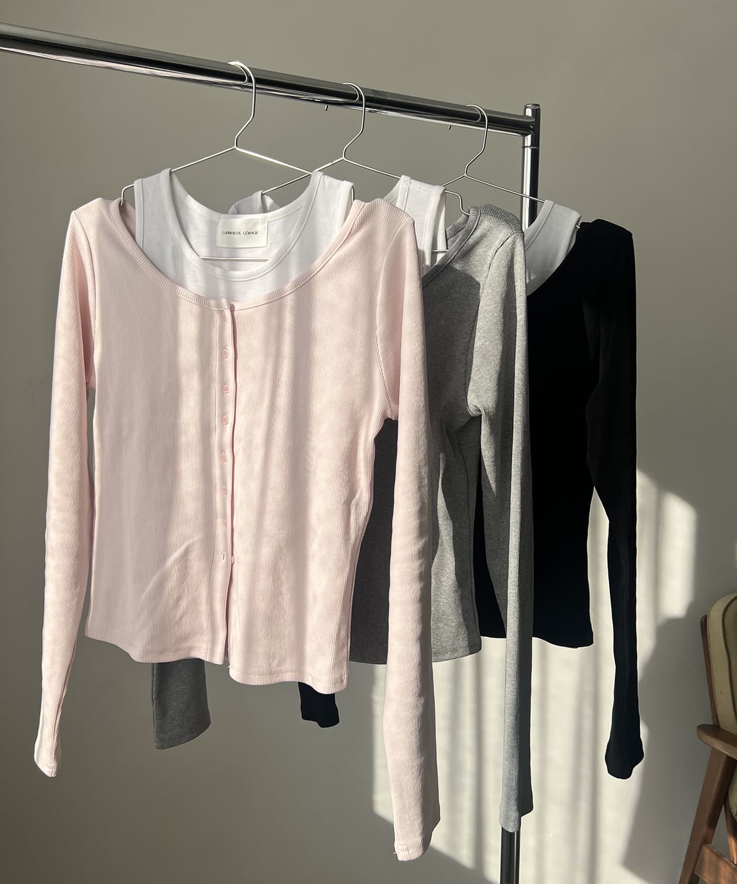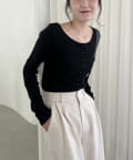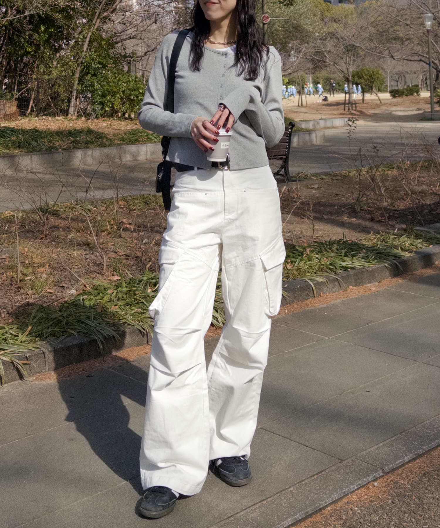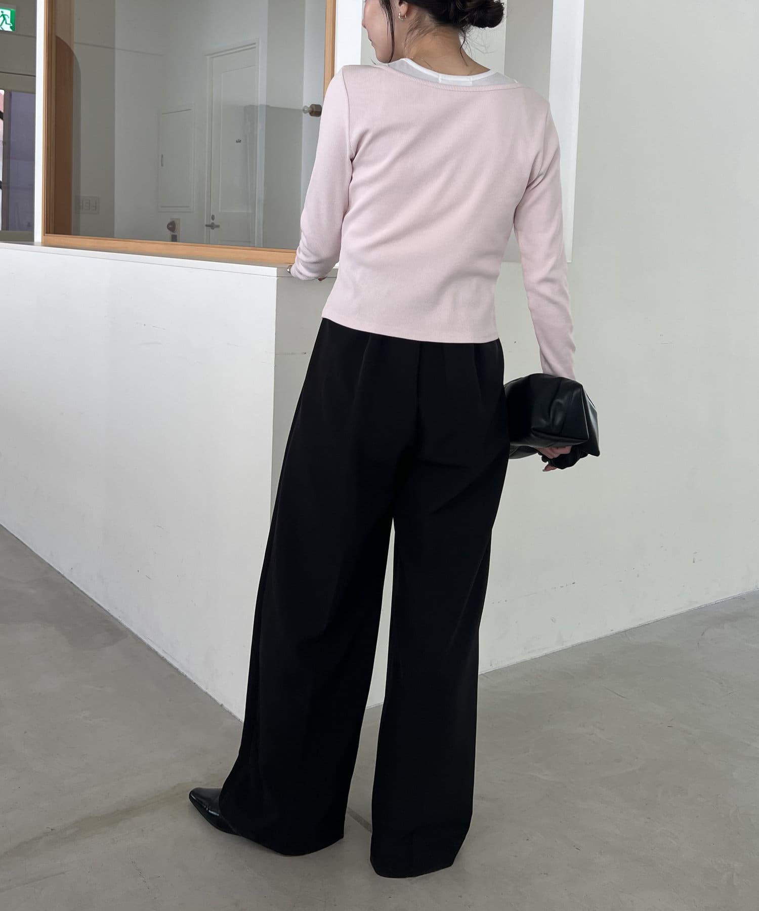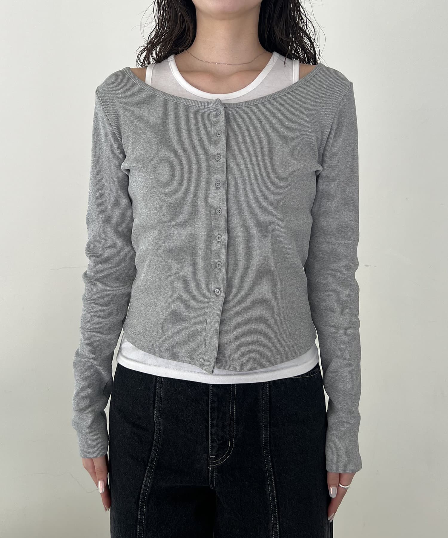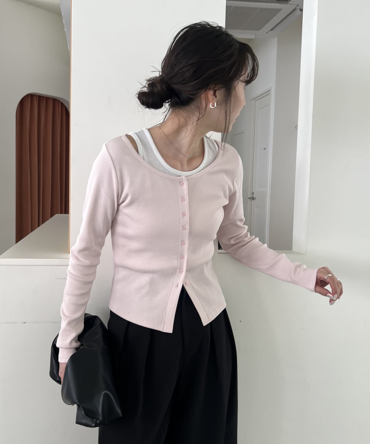 ・カーディガンの裾はあえて1番下までボタンを付けないことで、裾の見え方にこだわりも◎