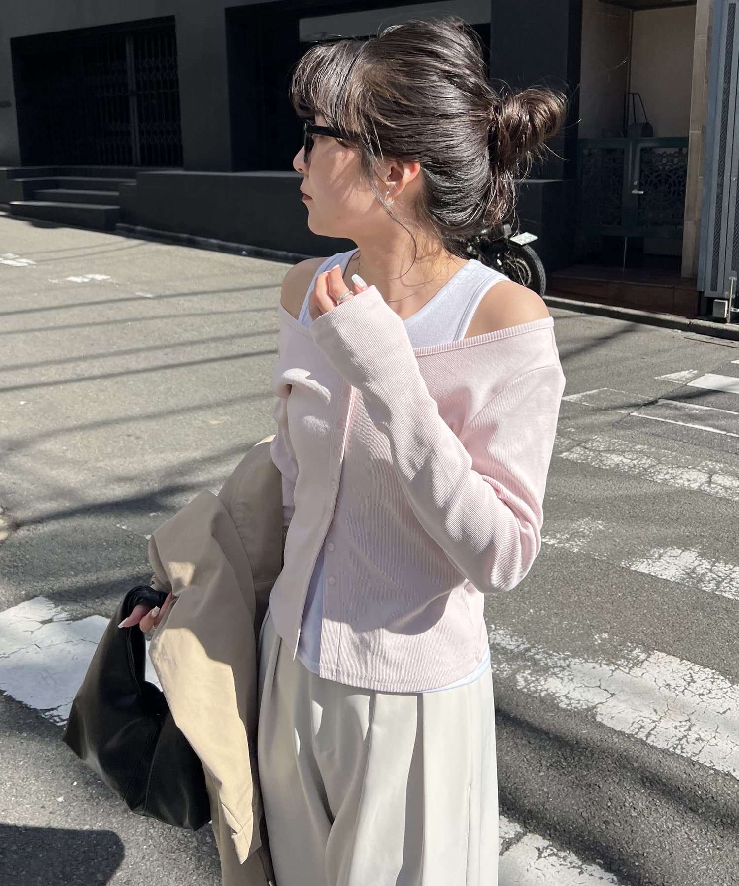 ・さらっと着られるタンクと、伸縮性の良いリブカーディガンのセットアイテム