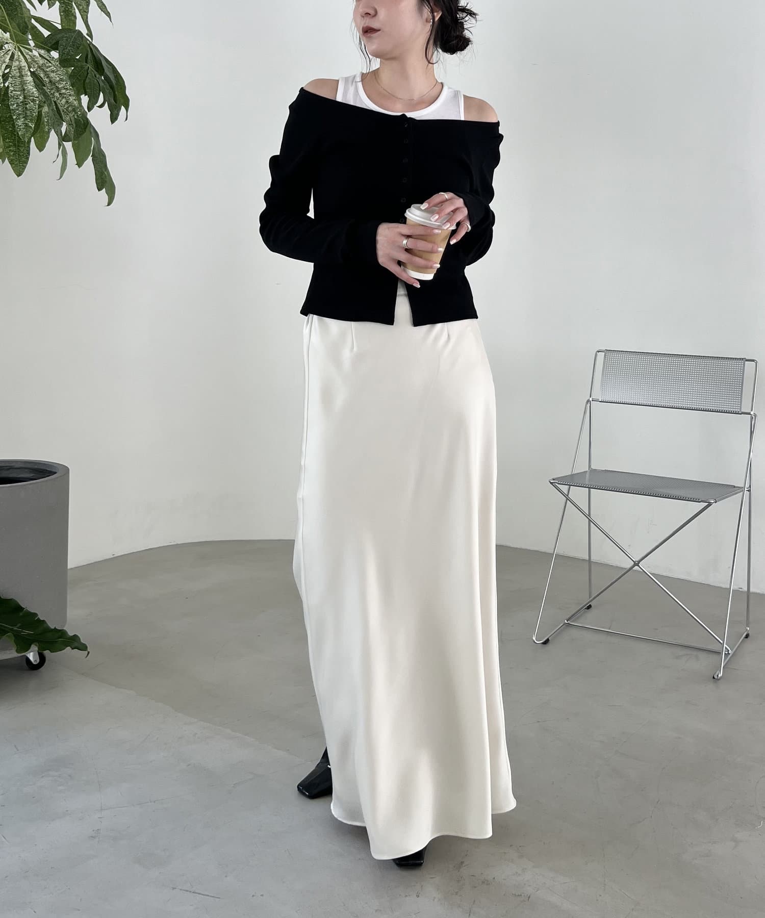 ・女性らしくマキシ丈スカートと合わせたスタイリングも◎