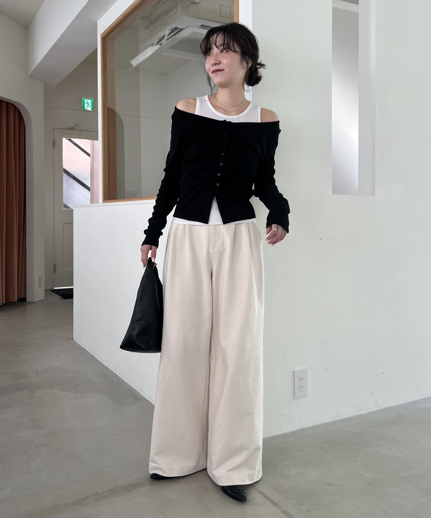 ・オフショルでも着用でき、程よい肌見せが抜け感をプラスしてくれる