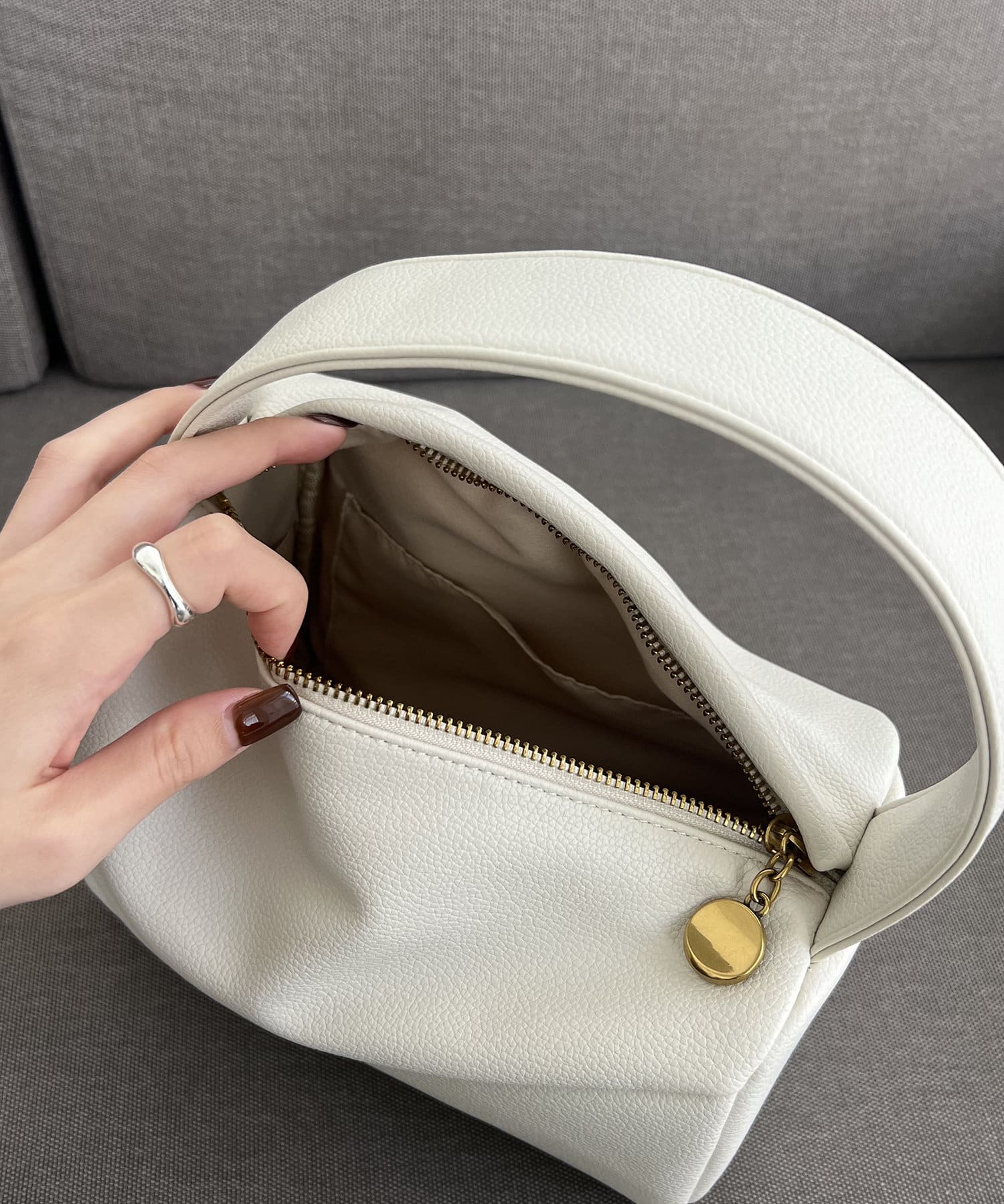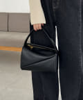 ・アシンメトリーなスクエアシルエットと斜めの切替がポイント