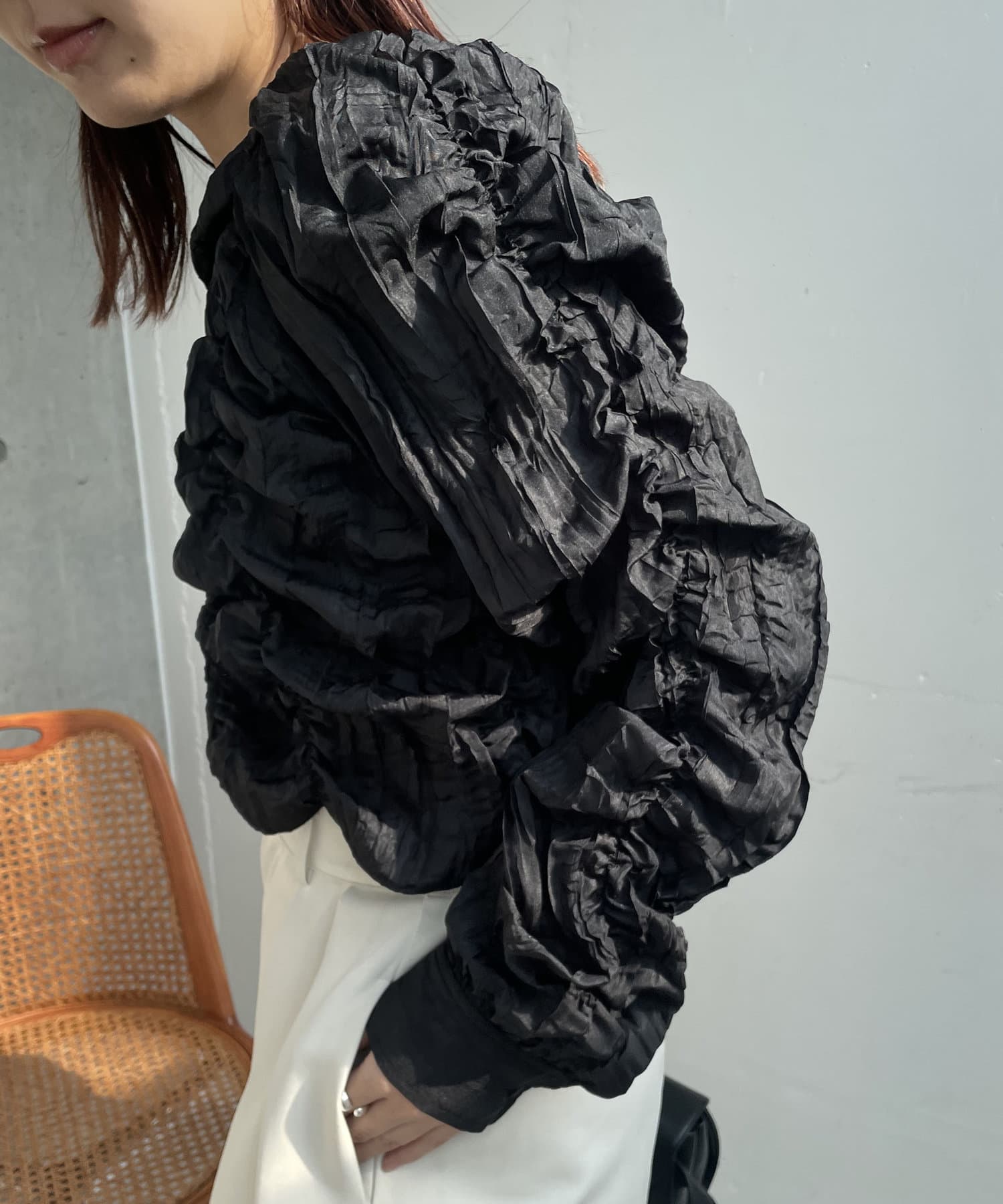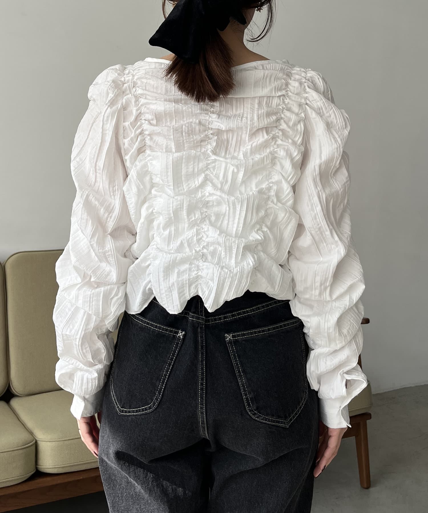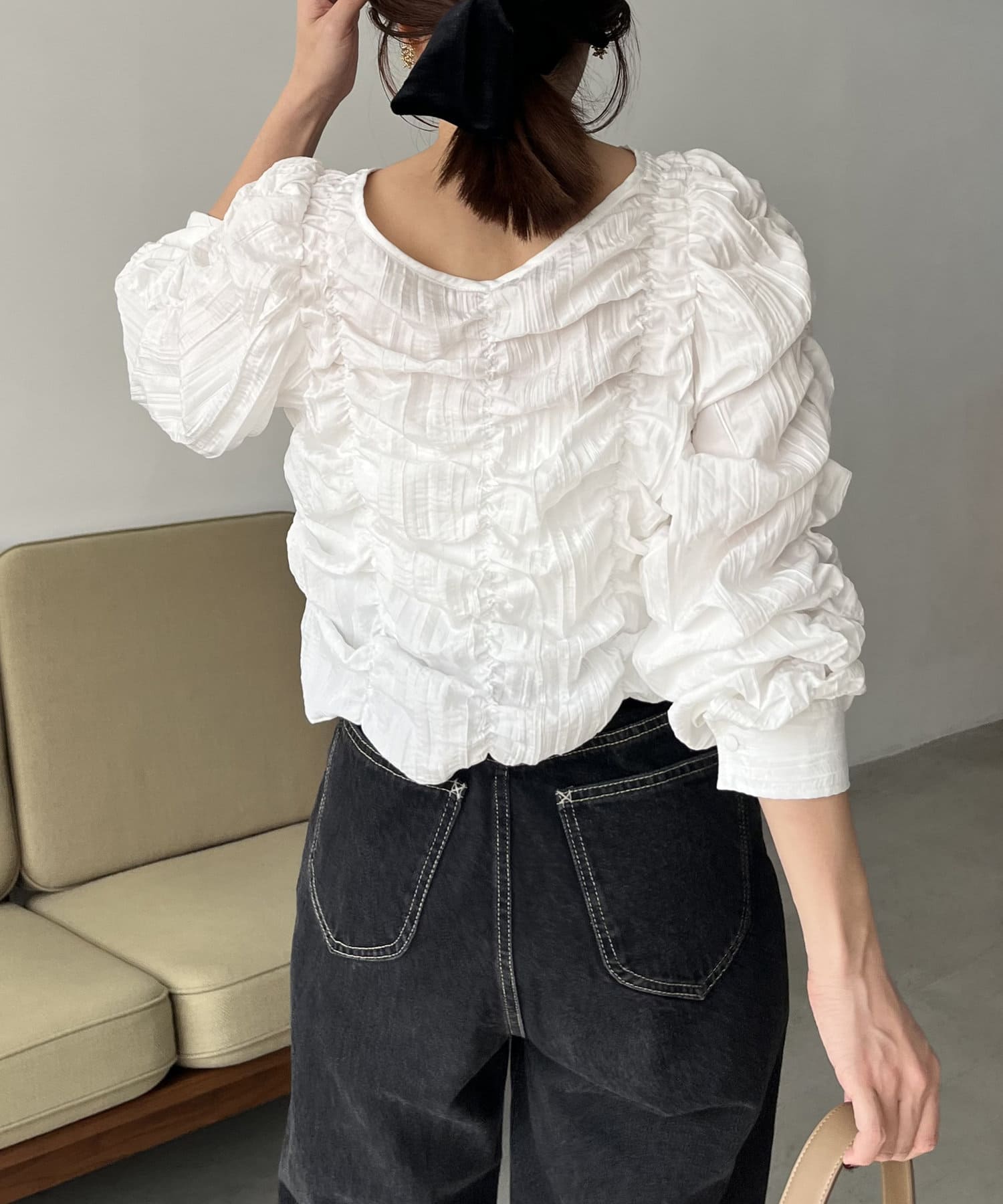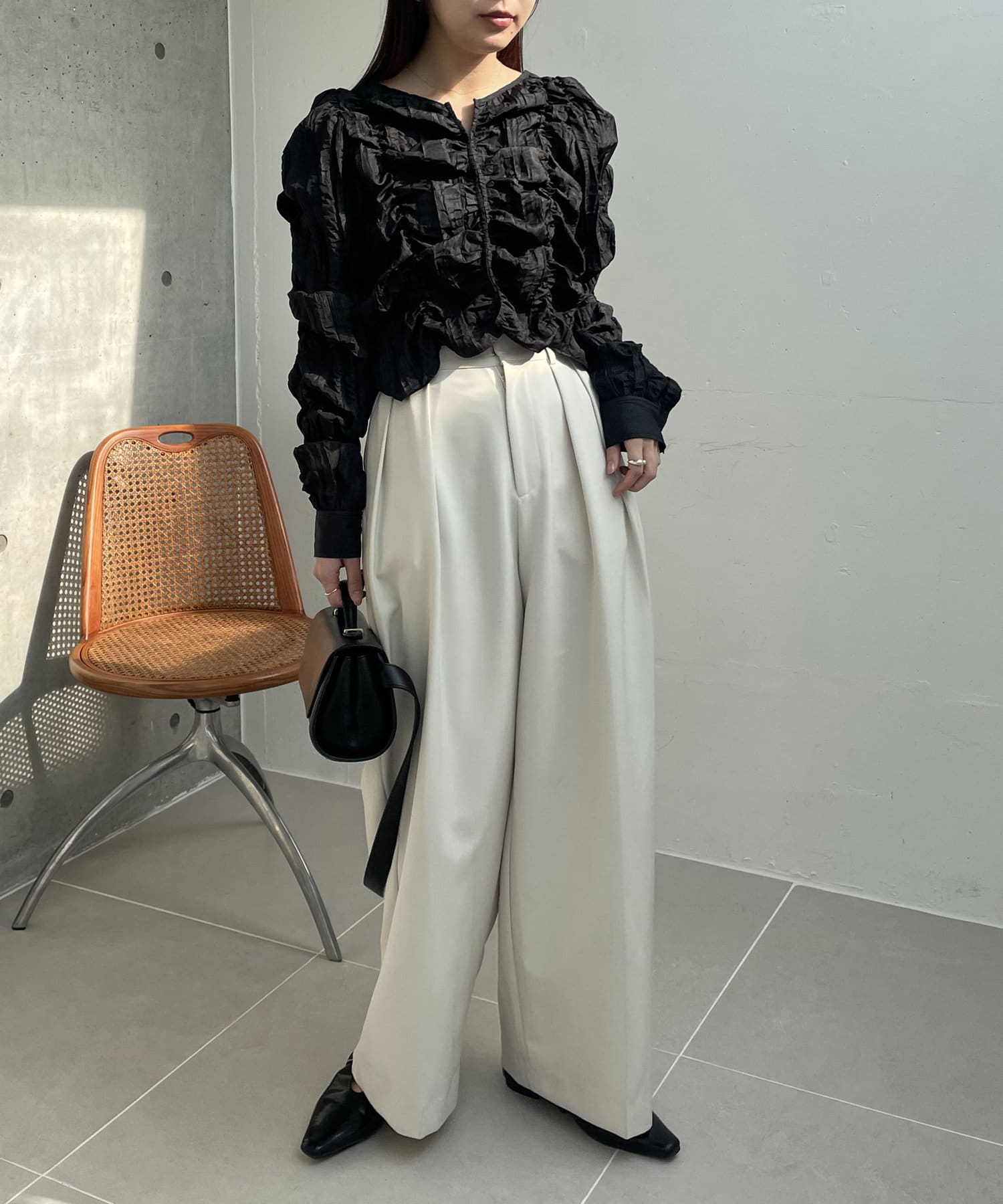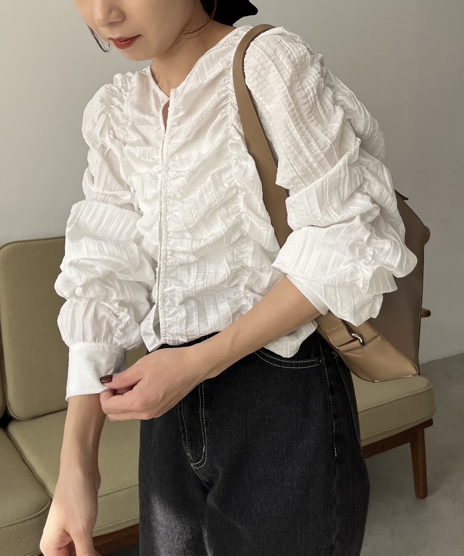 ・身頃や袖全体にシャーリングを入れた主役トップス