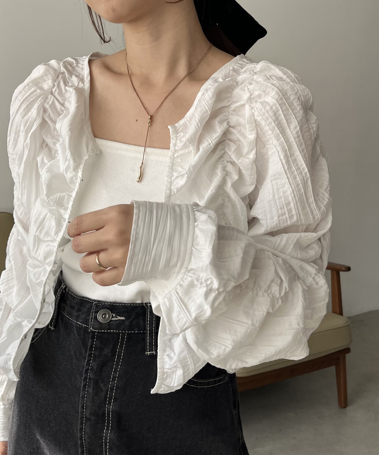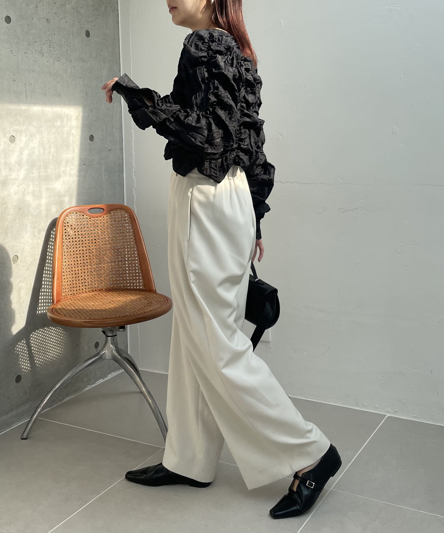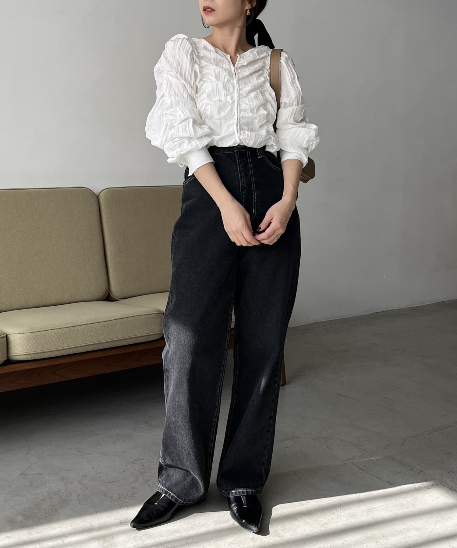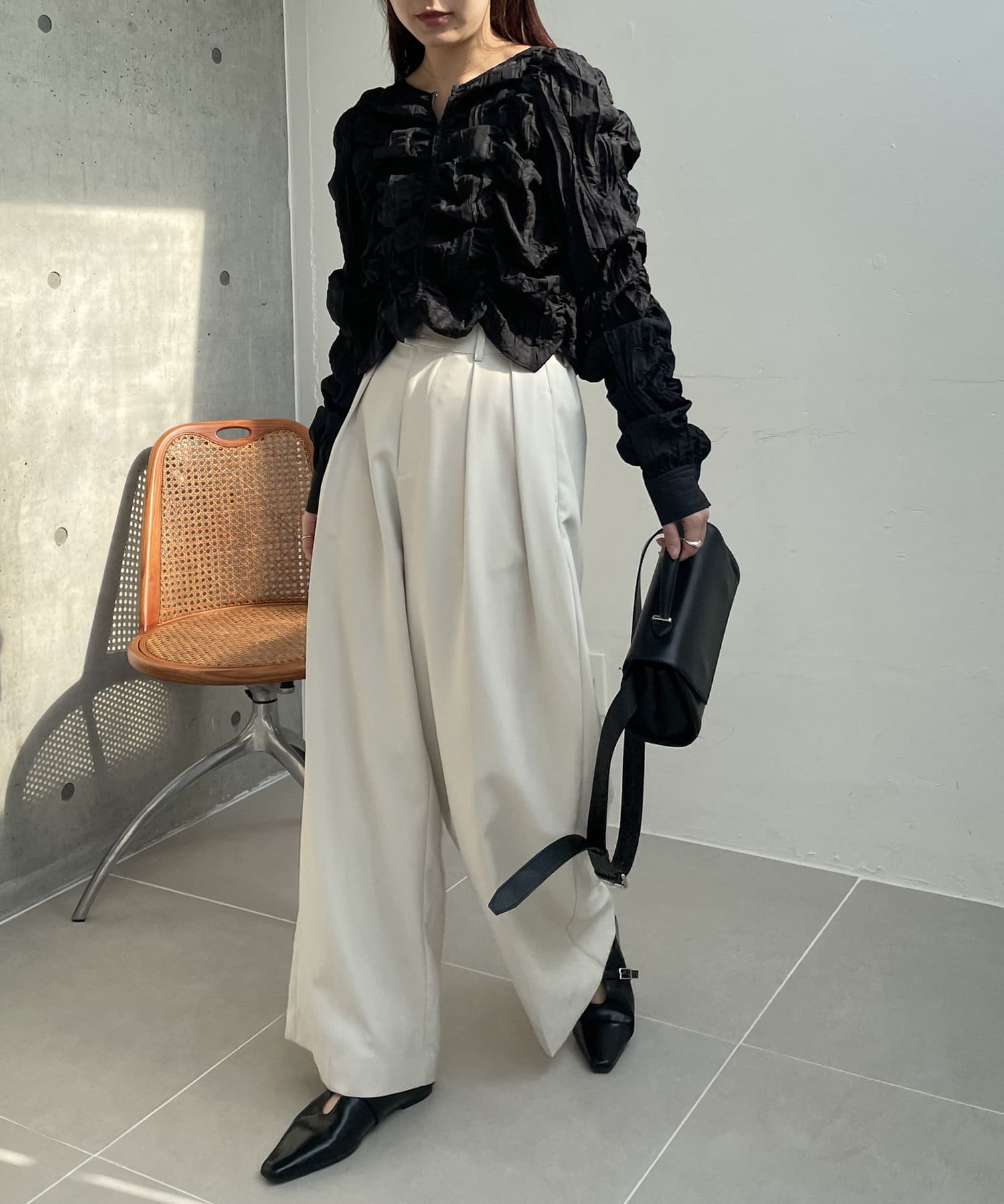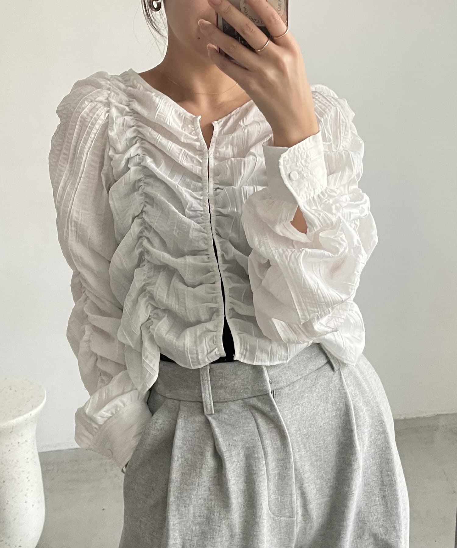 ・身頃や袖全体にシャーリングを入れた主役トップス