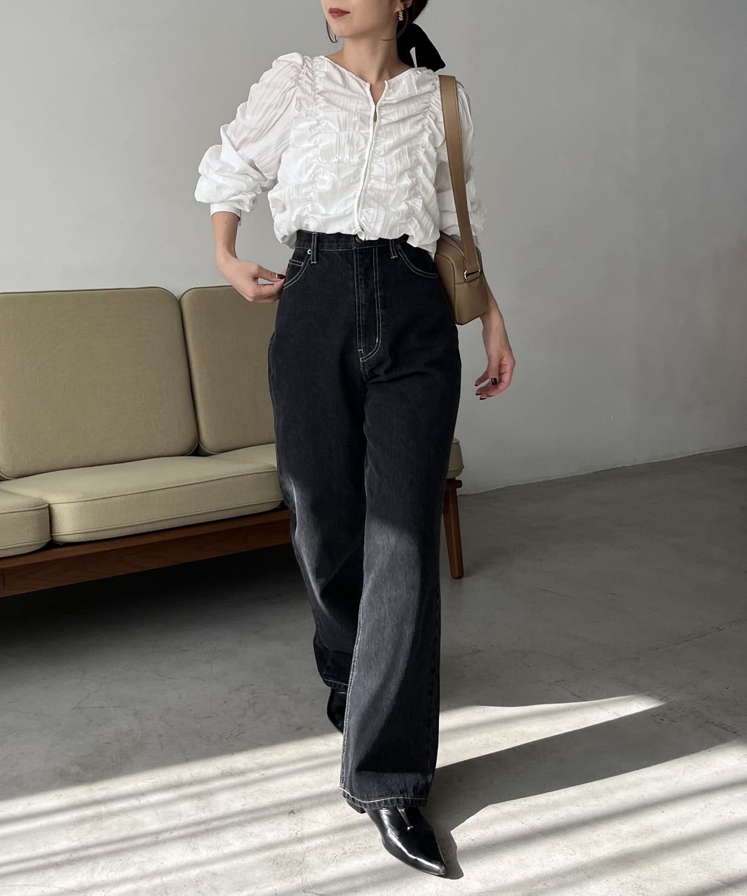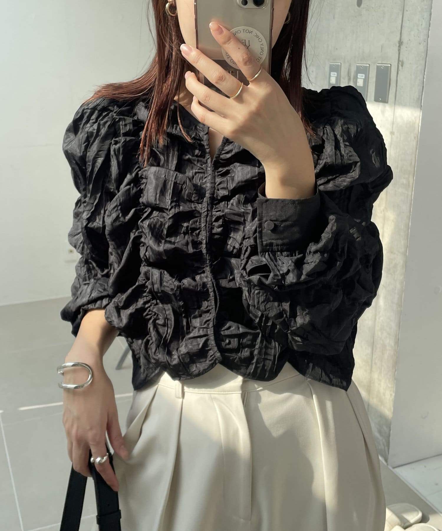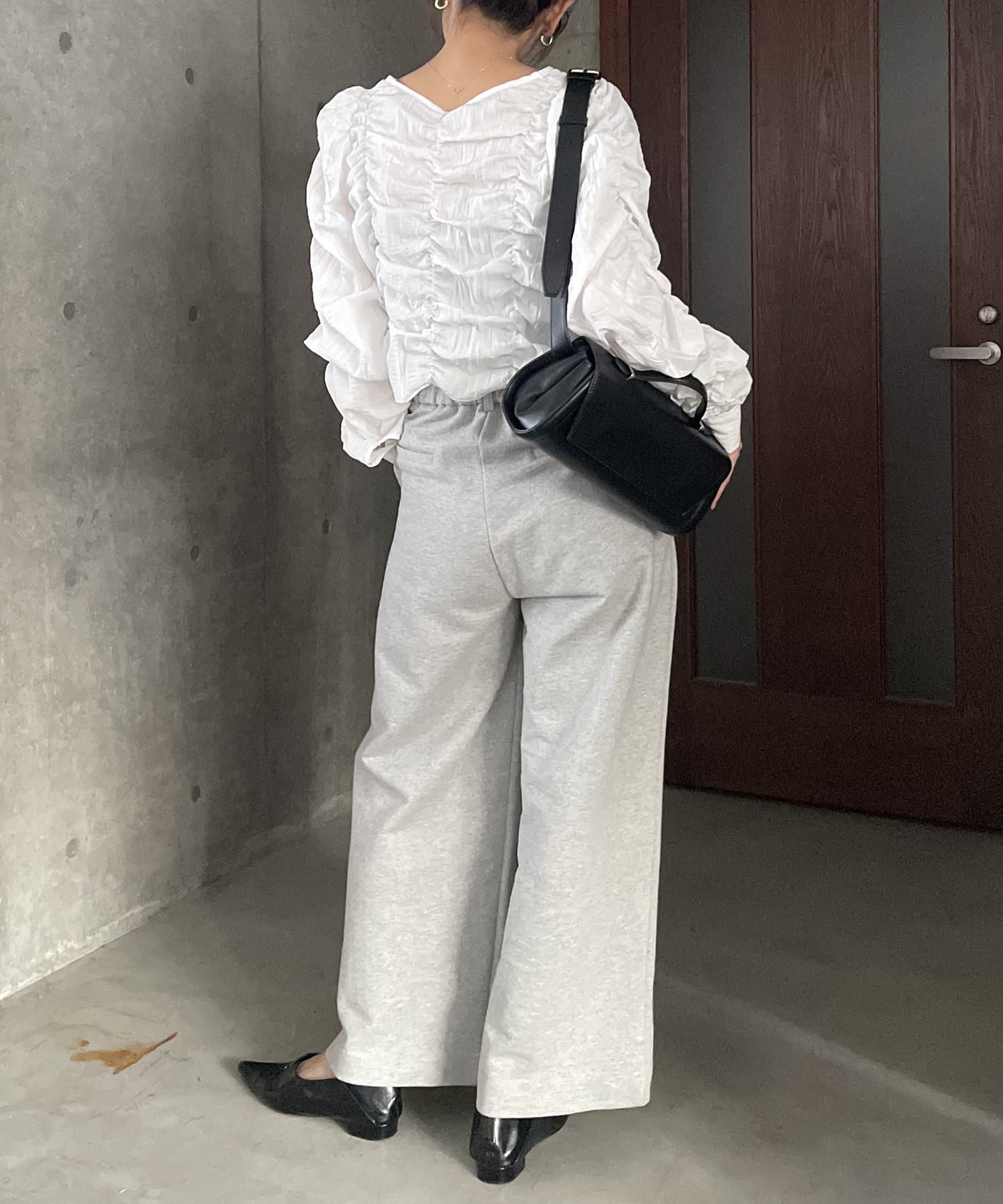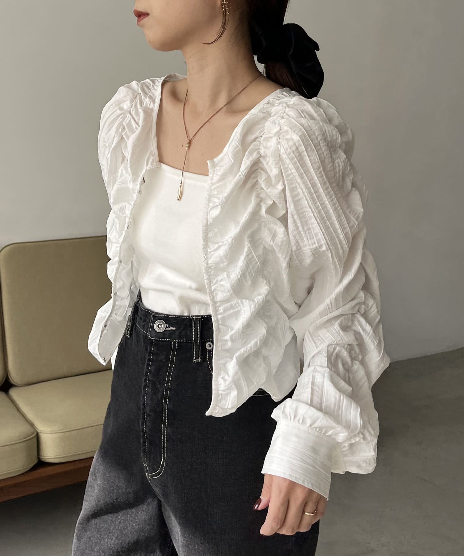 ・身頃や袖全体にシャーリングを入れた主役トップス