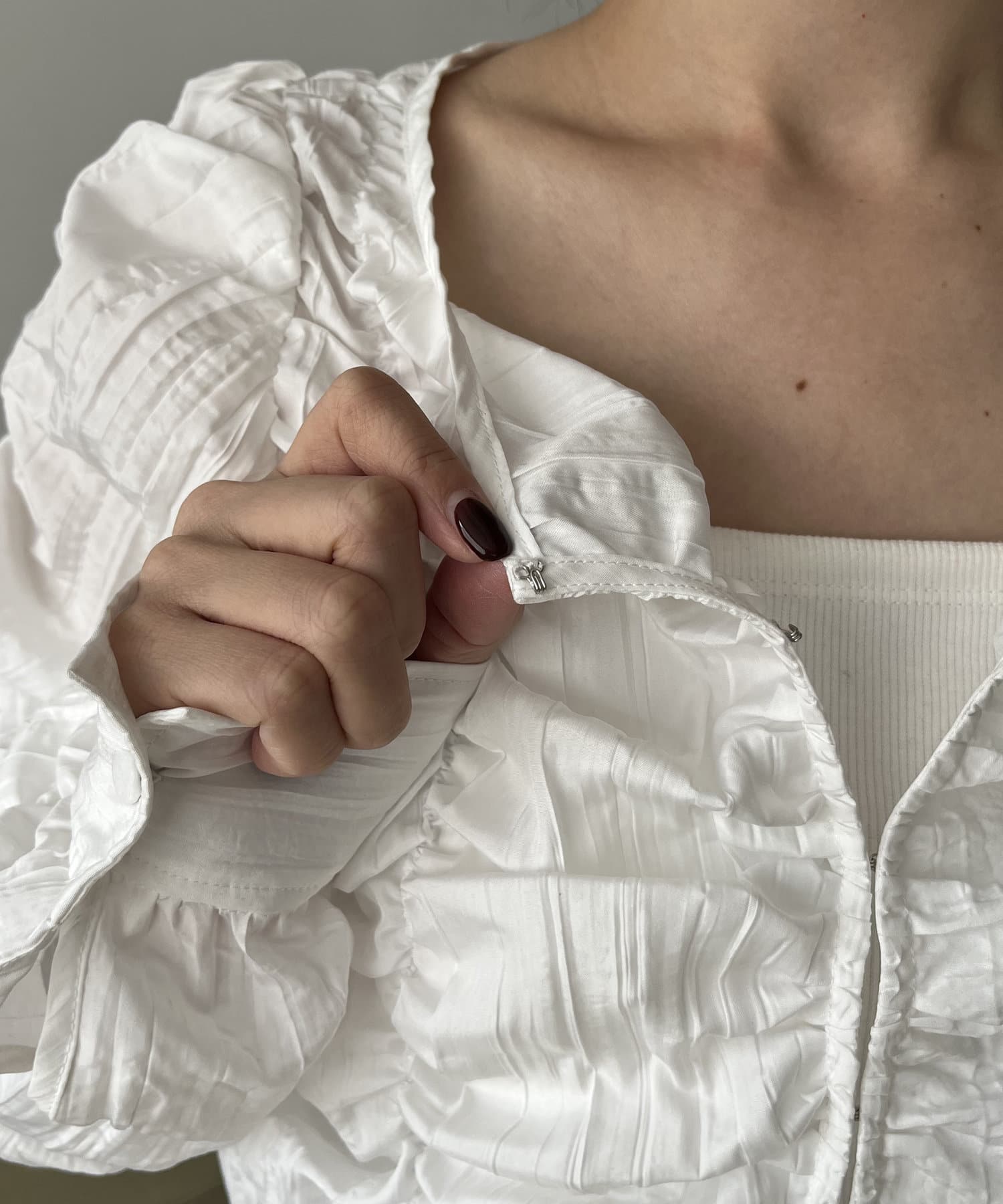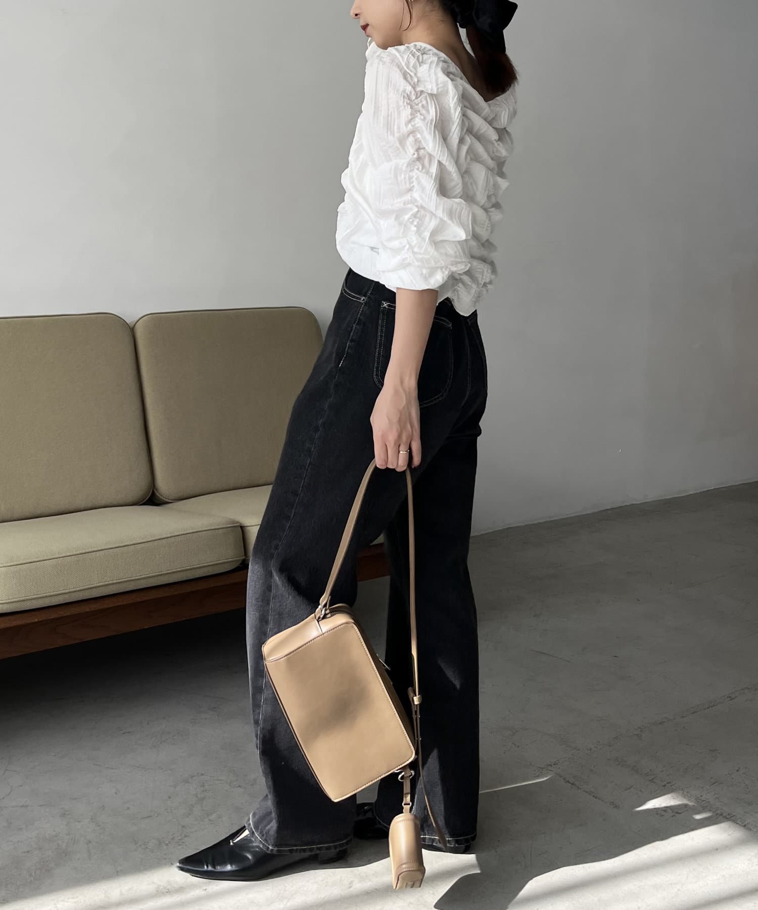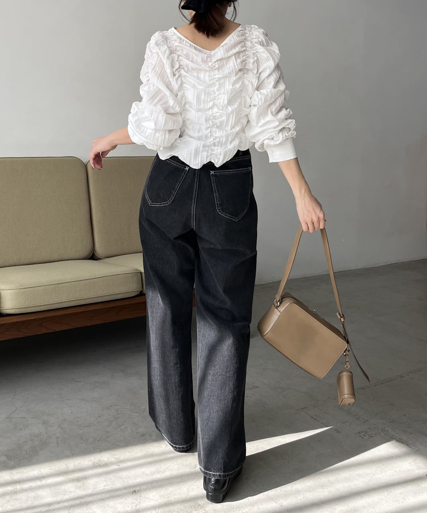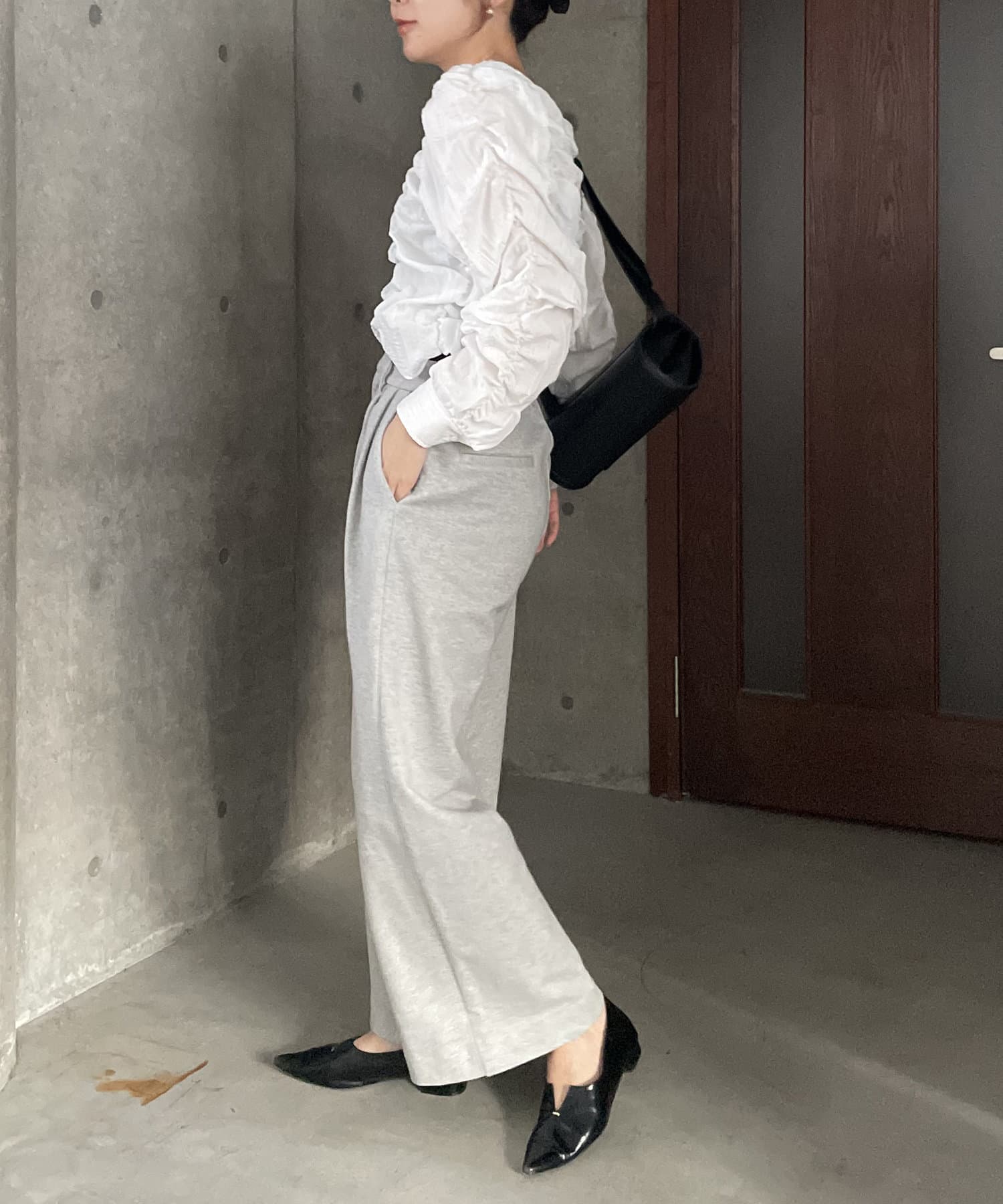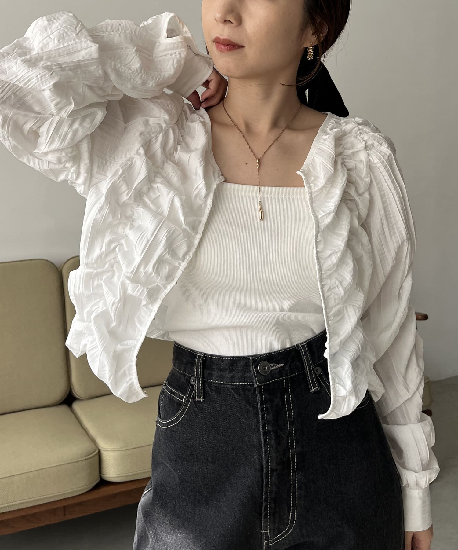・身頃や袖全体にシャーリングを入れた主役トップス