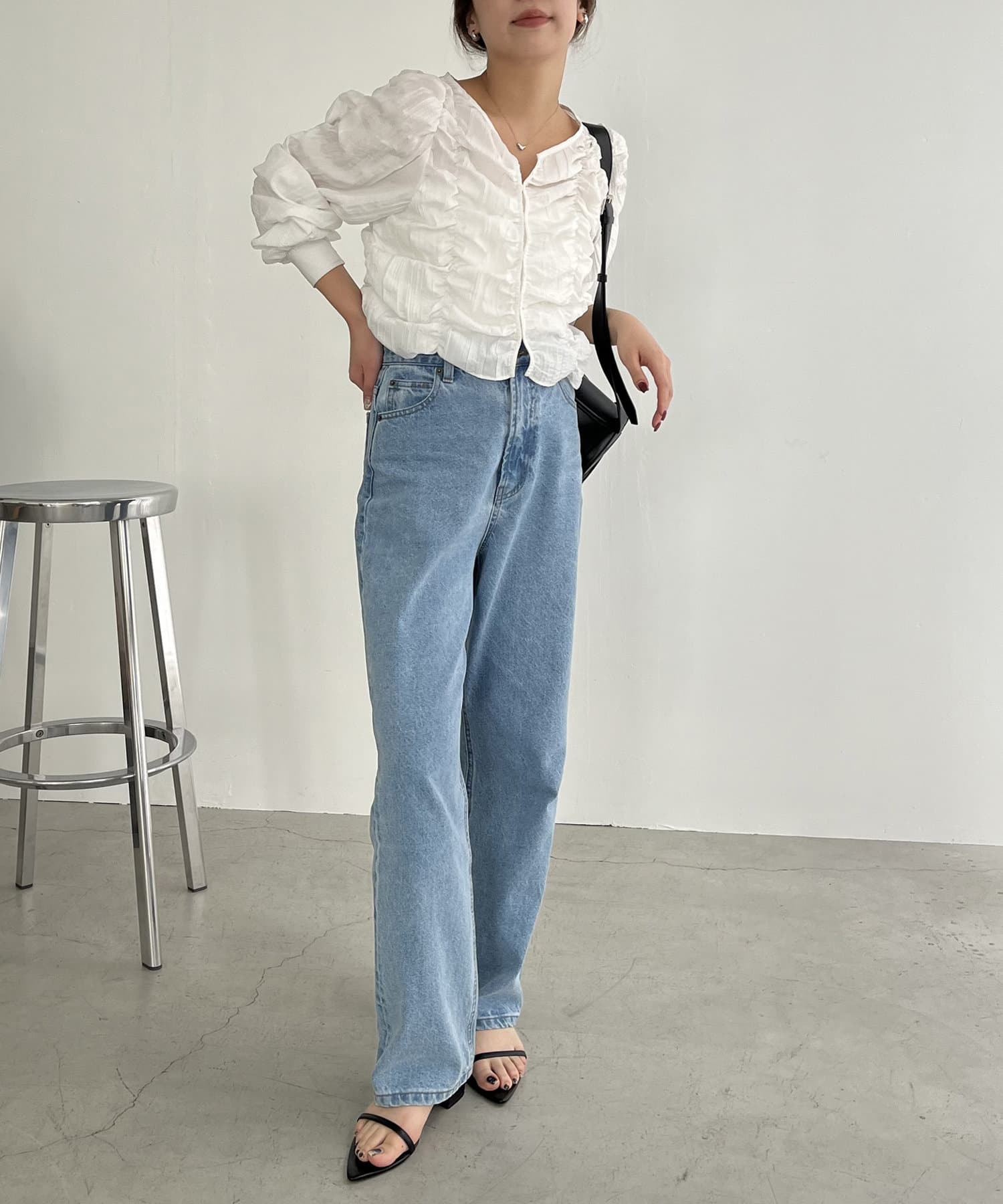 【ホワイト着用アイテム③】13ozハイウエストストレートデニム
