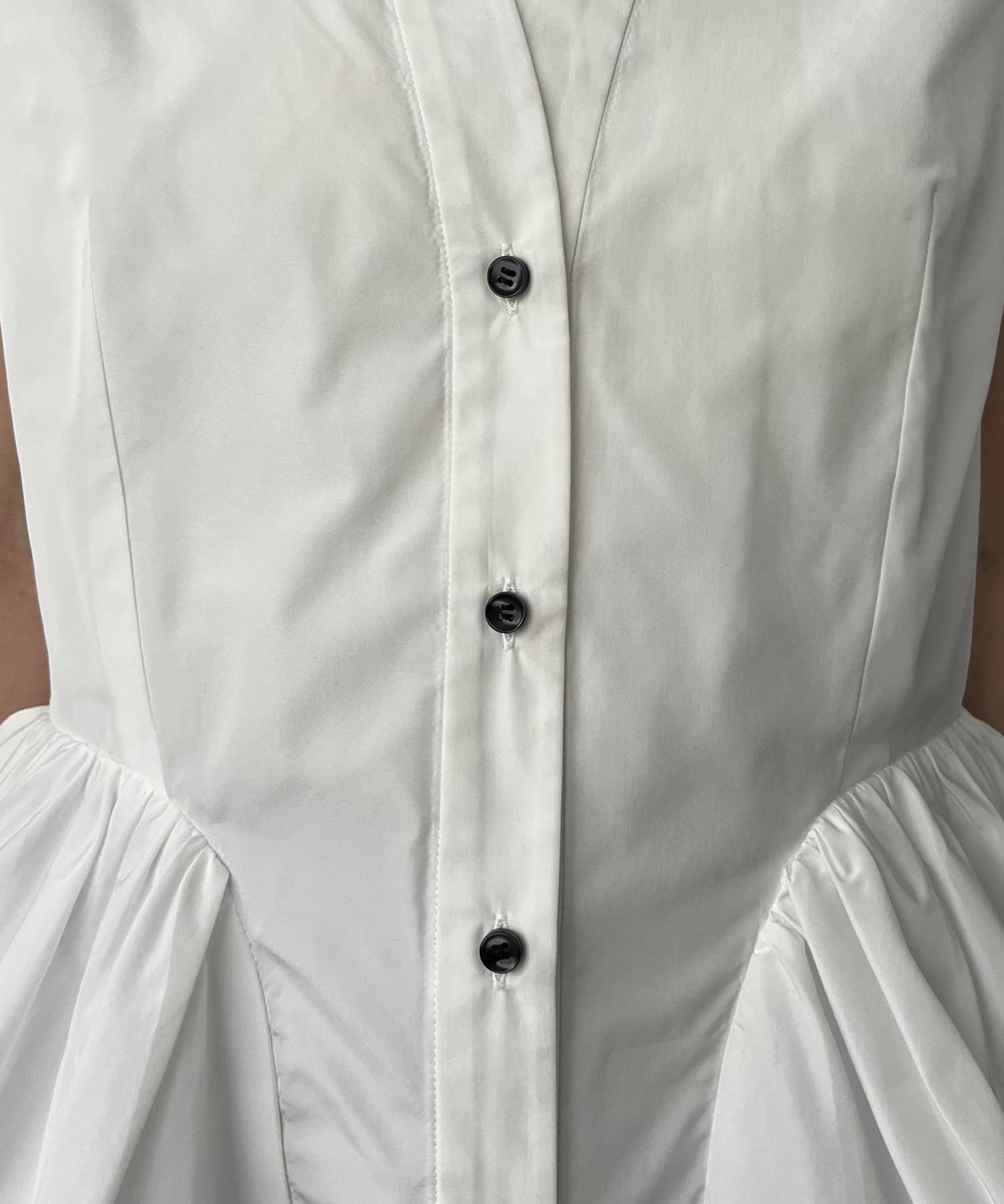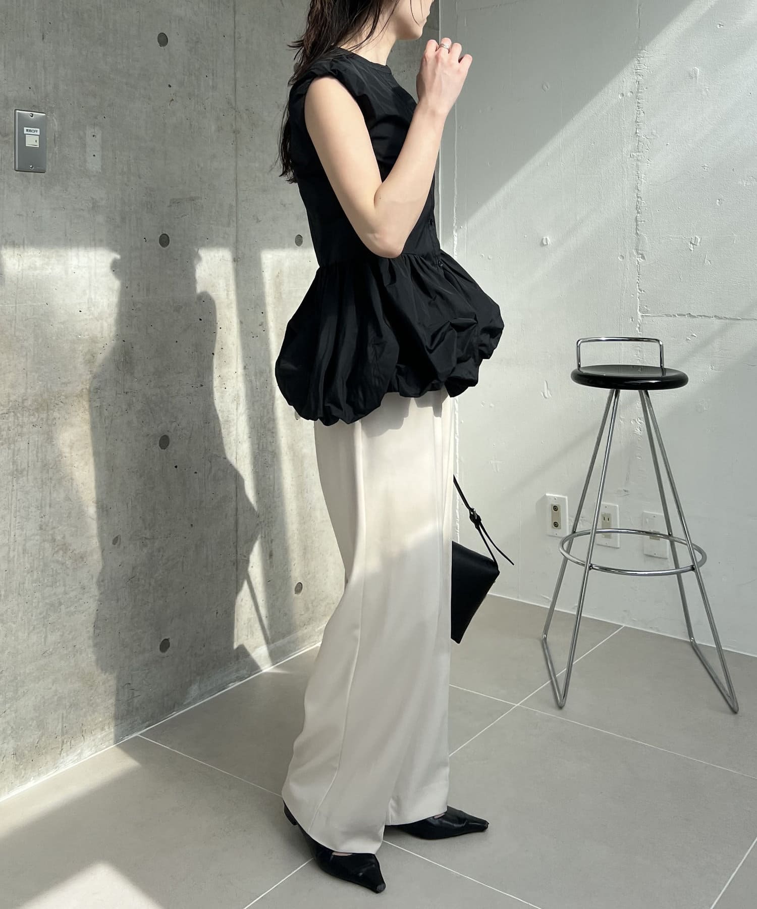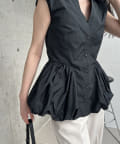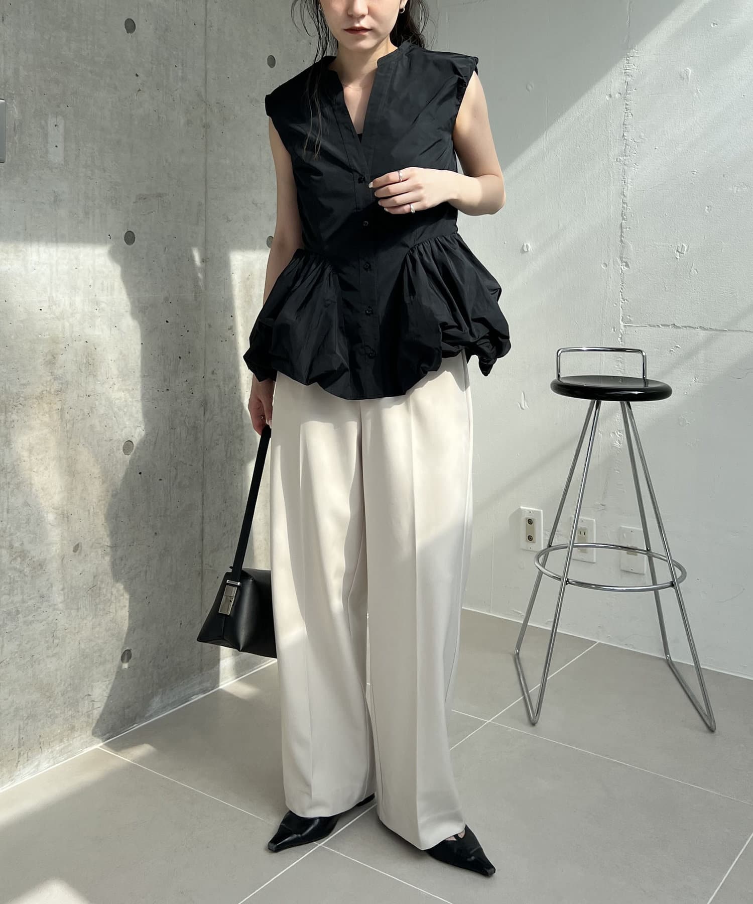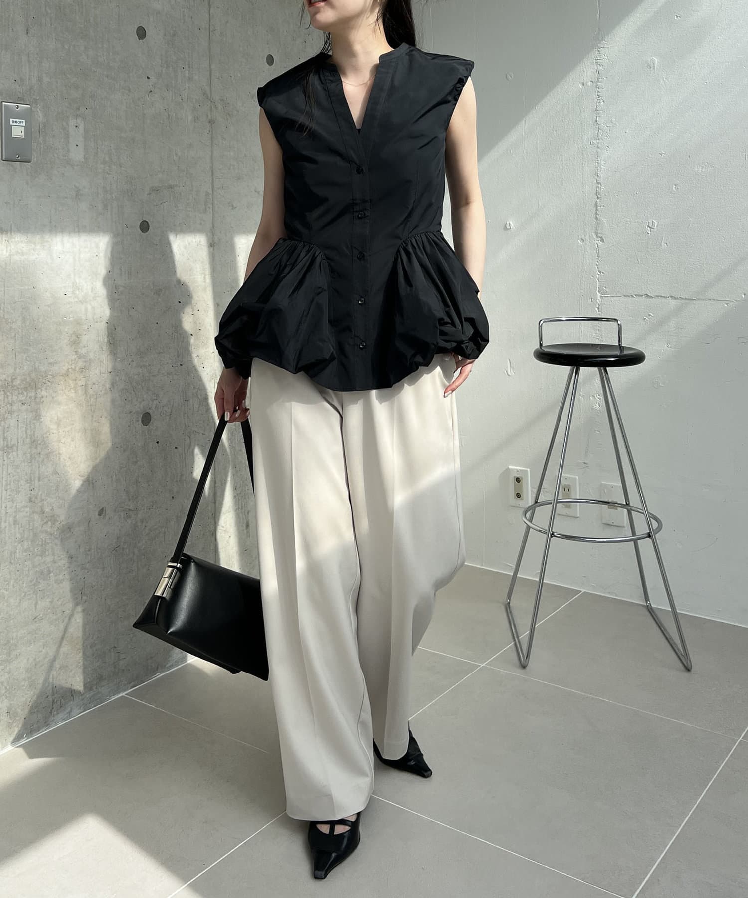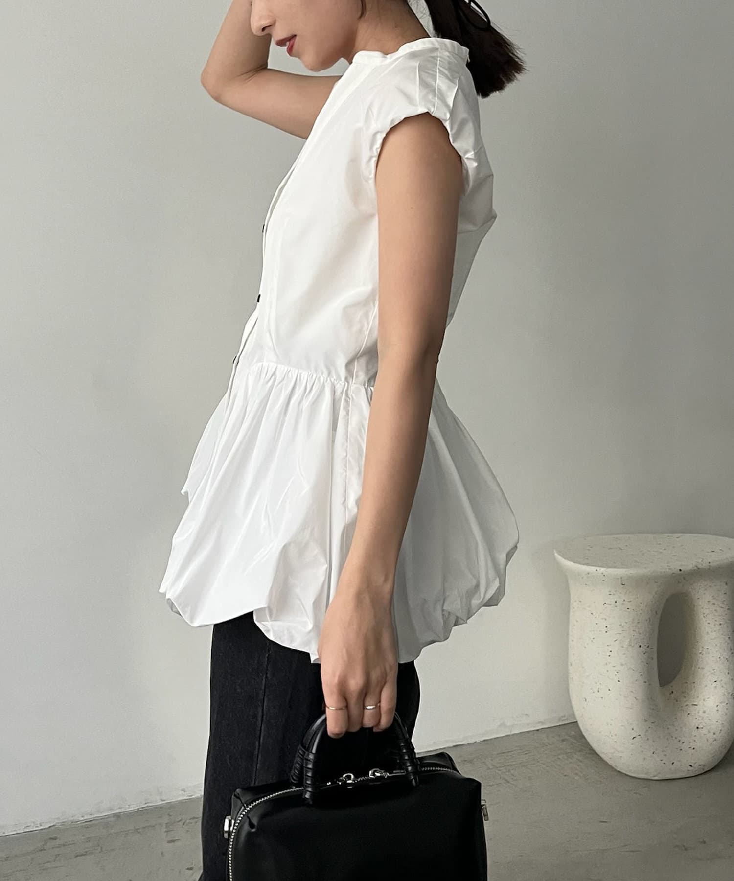 ・形状記憶の軽いタフタ素材を使用したペプラムバルーンシャツ