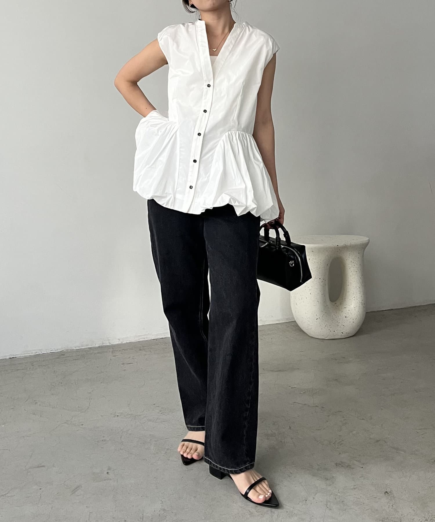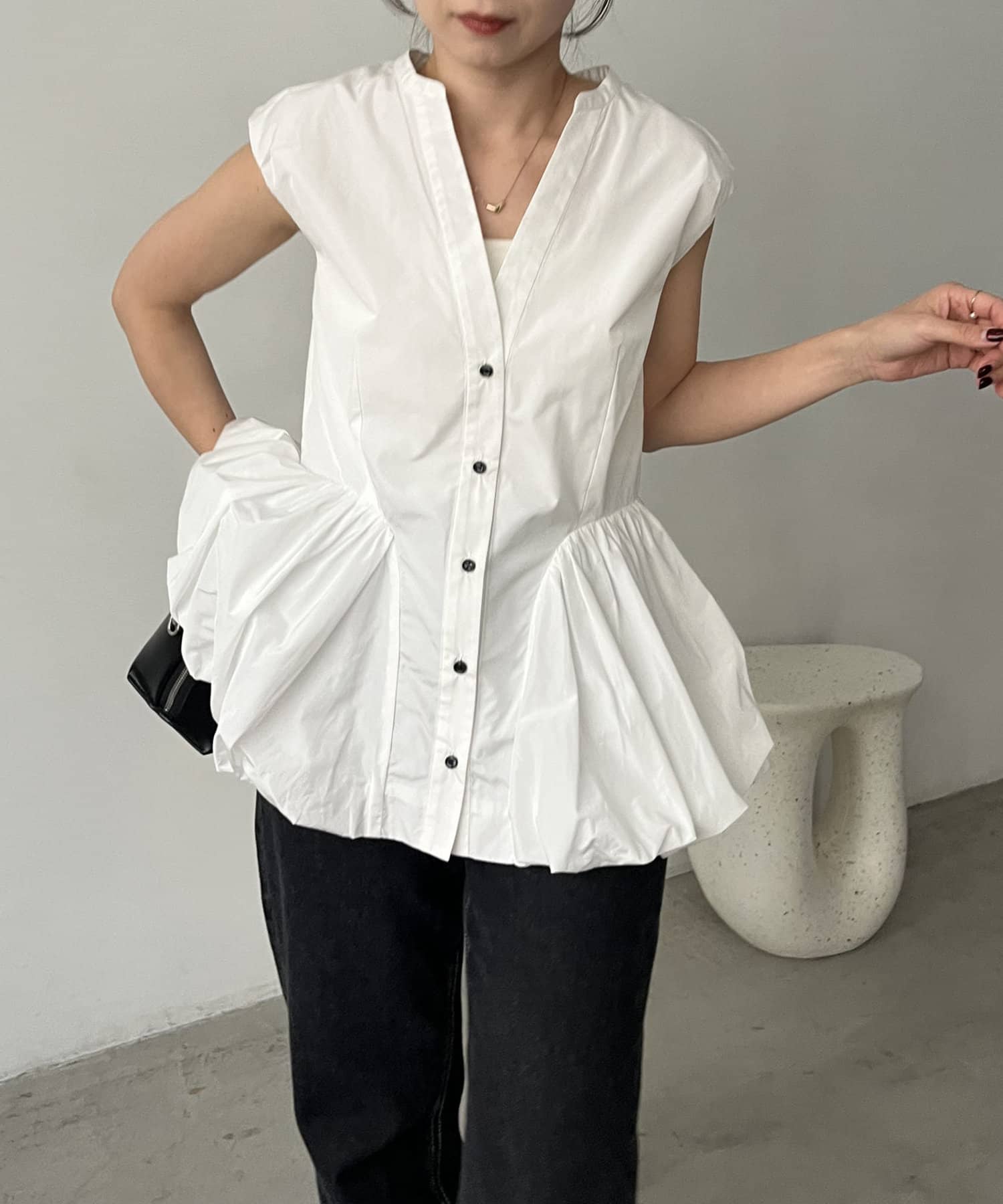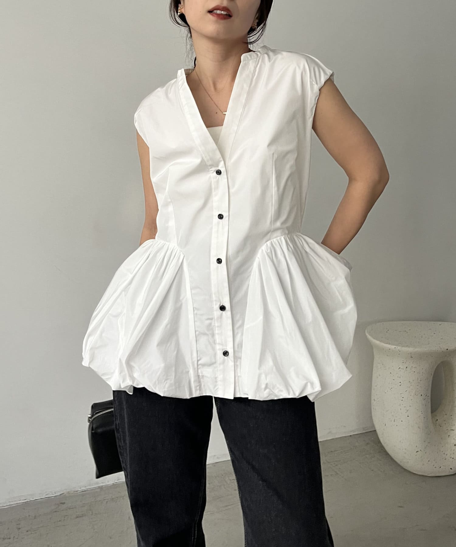 〈VERSEAU/ヴェルソー〉バルーンペプラムシャツ