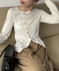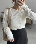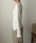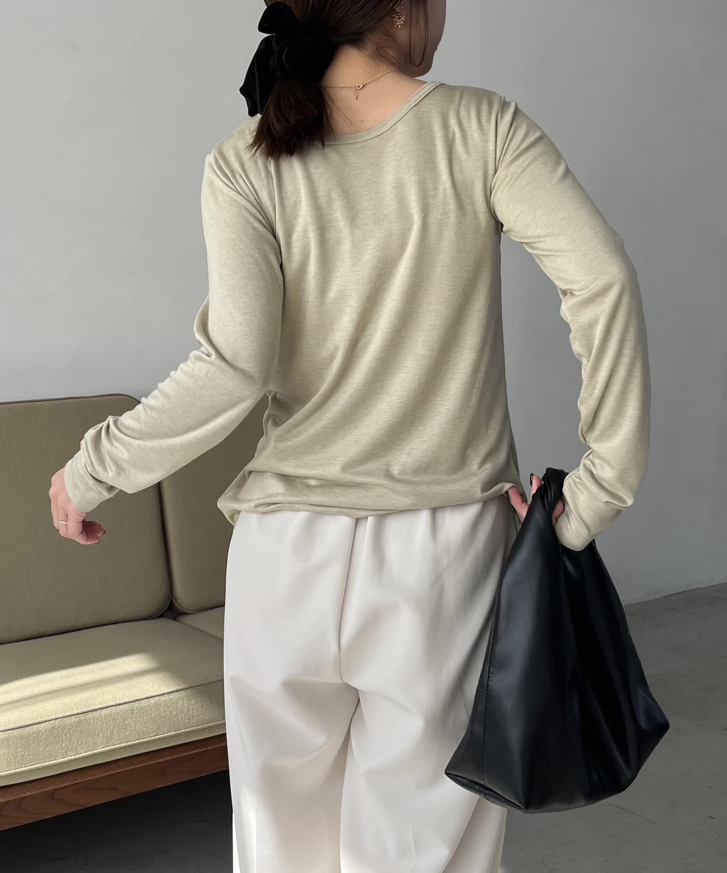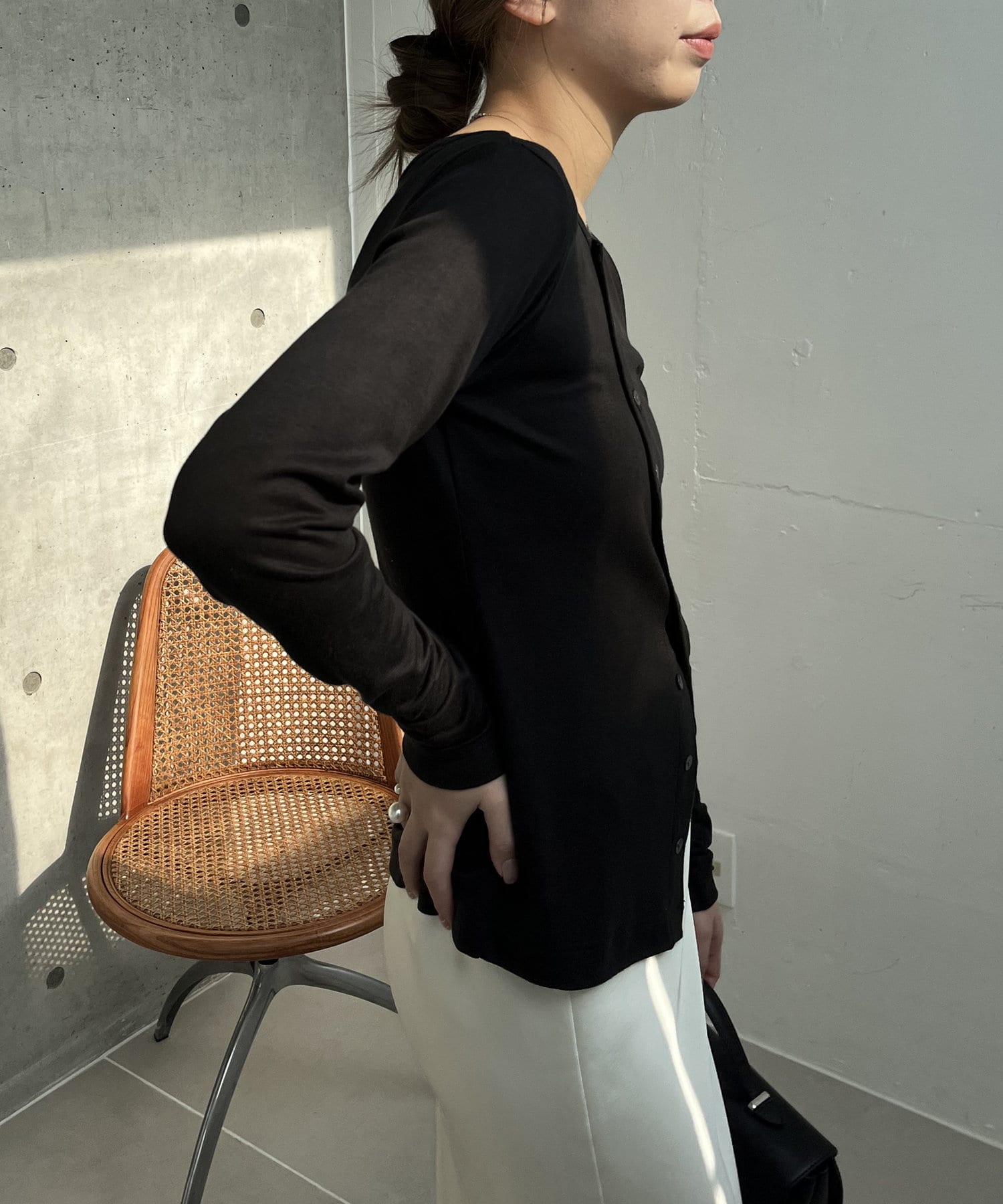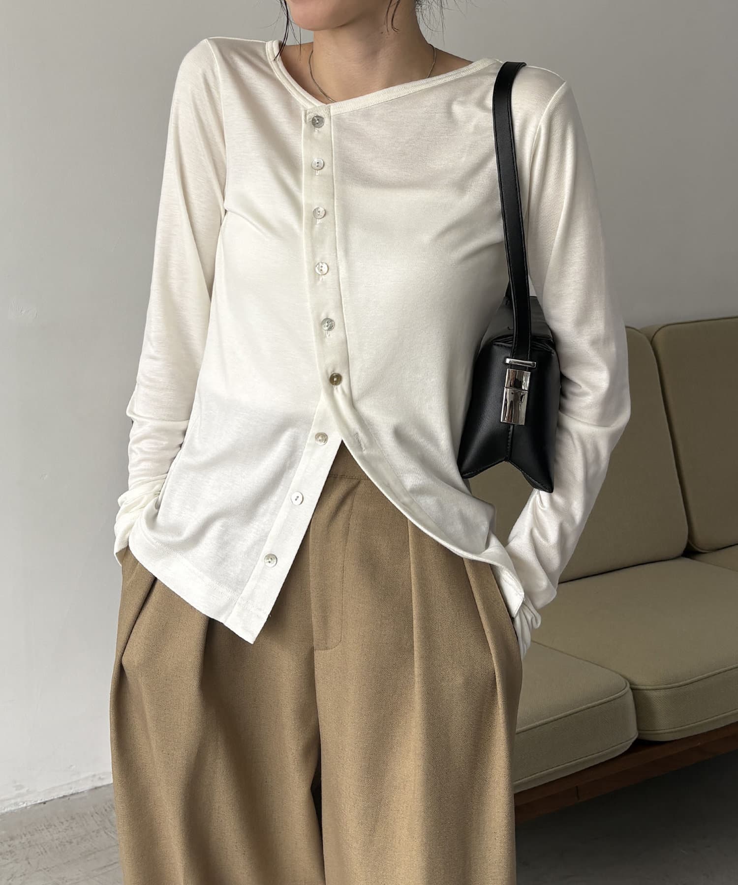 ・裾がVに開くのでインしなくてもサマになるスタイリングに